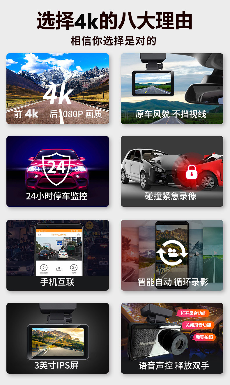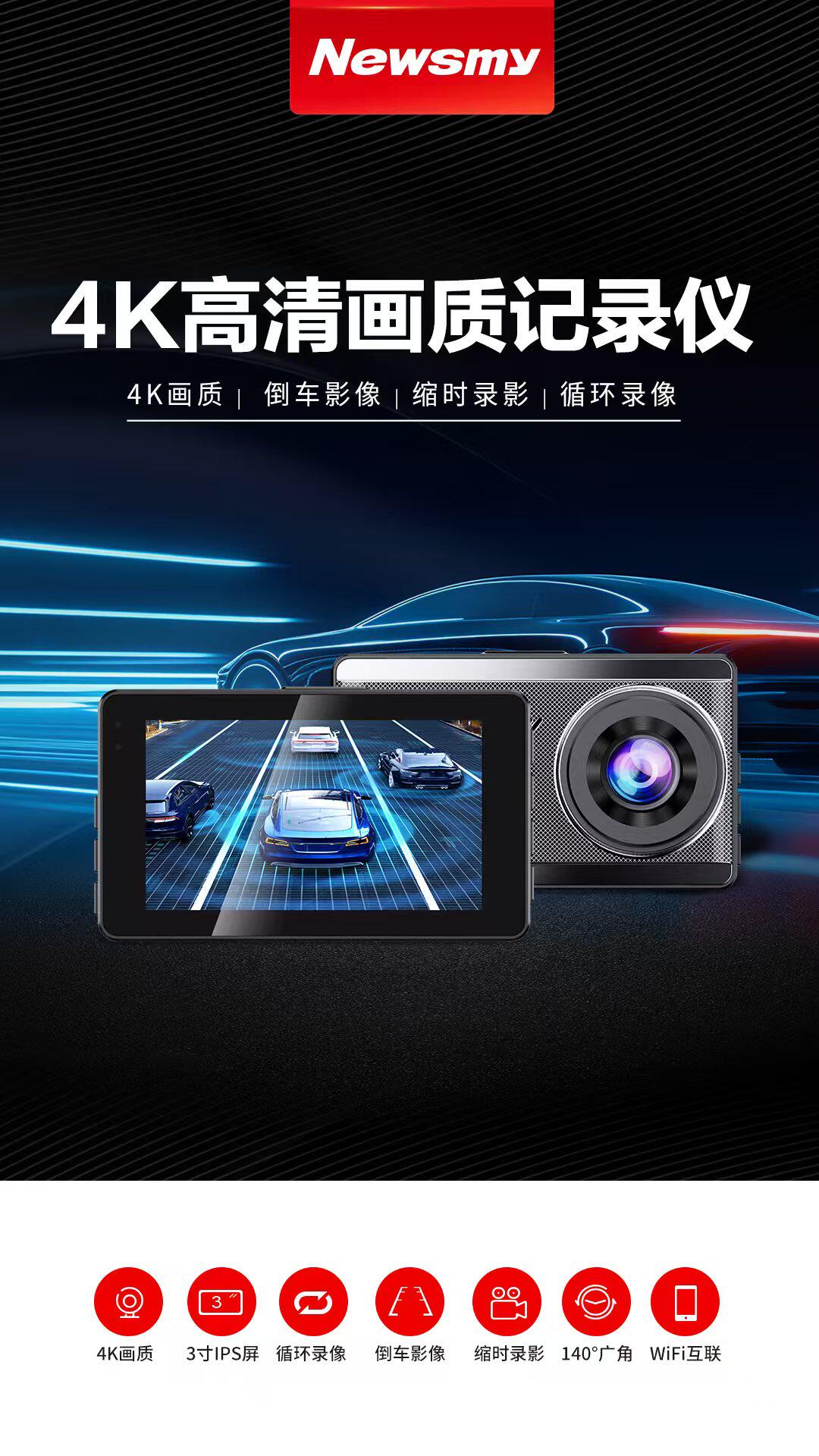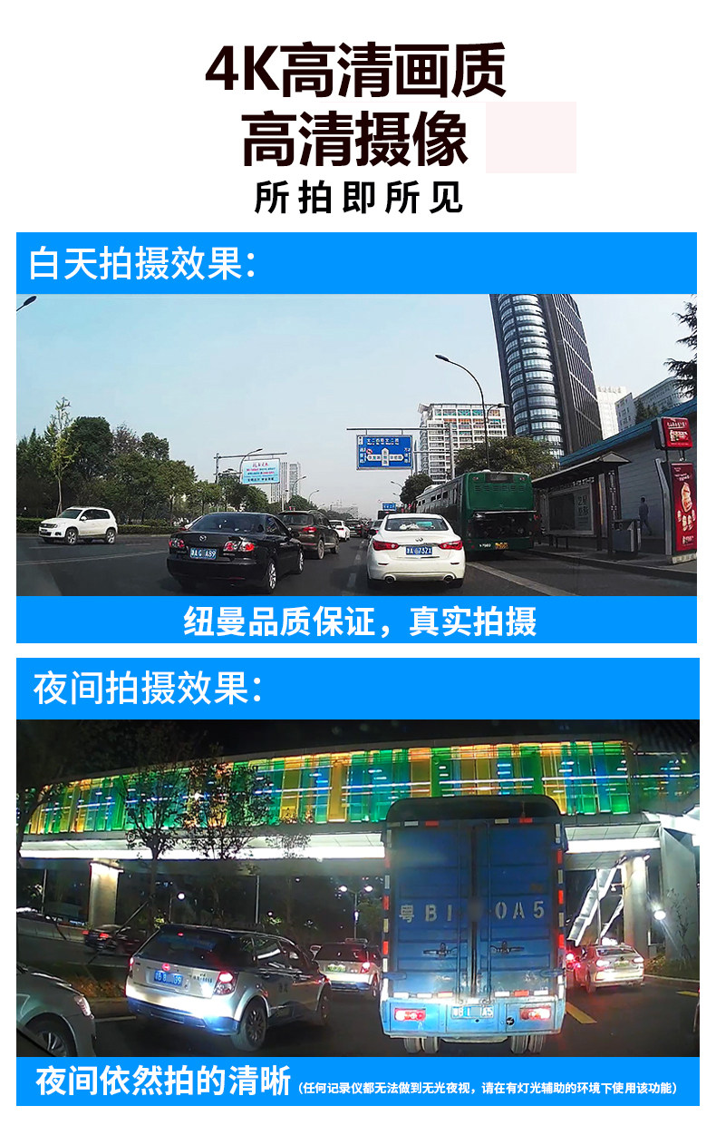 Newman 4K Ultra HD DVR with front and rear dual recording, mobile phone playback, parking monitoring, 2025 new model, rear camera