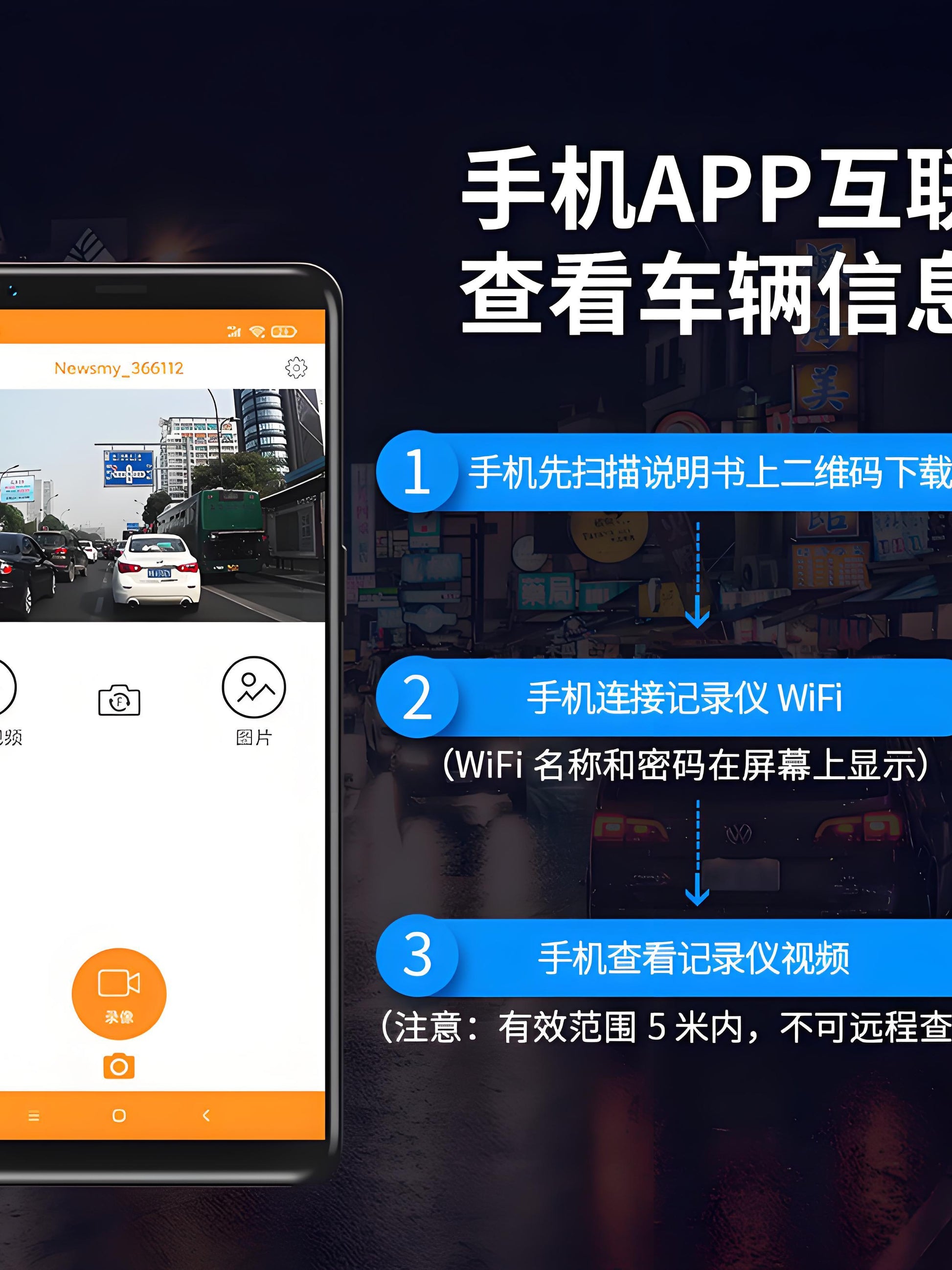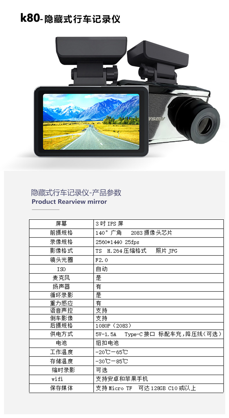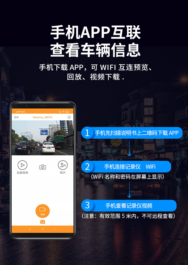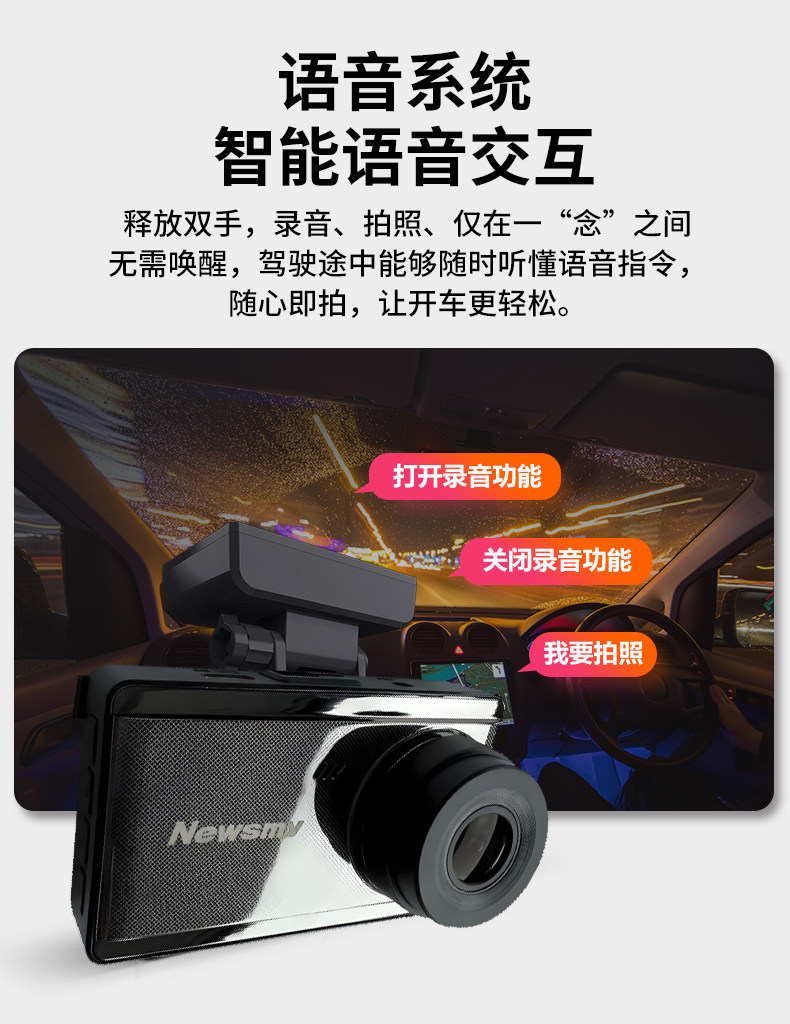 Newman 4K Ultra HD DVR with front and rear dual recording, mobile phone playback, parking monitoring, 2025 new model, rear camera