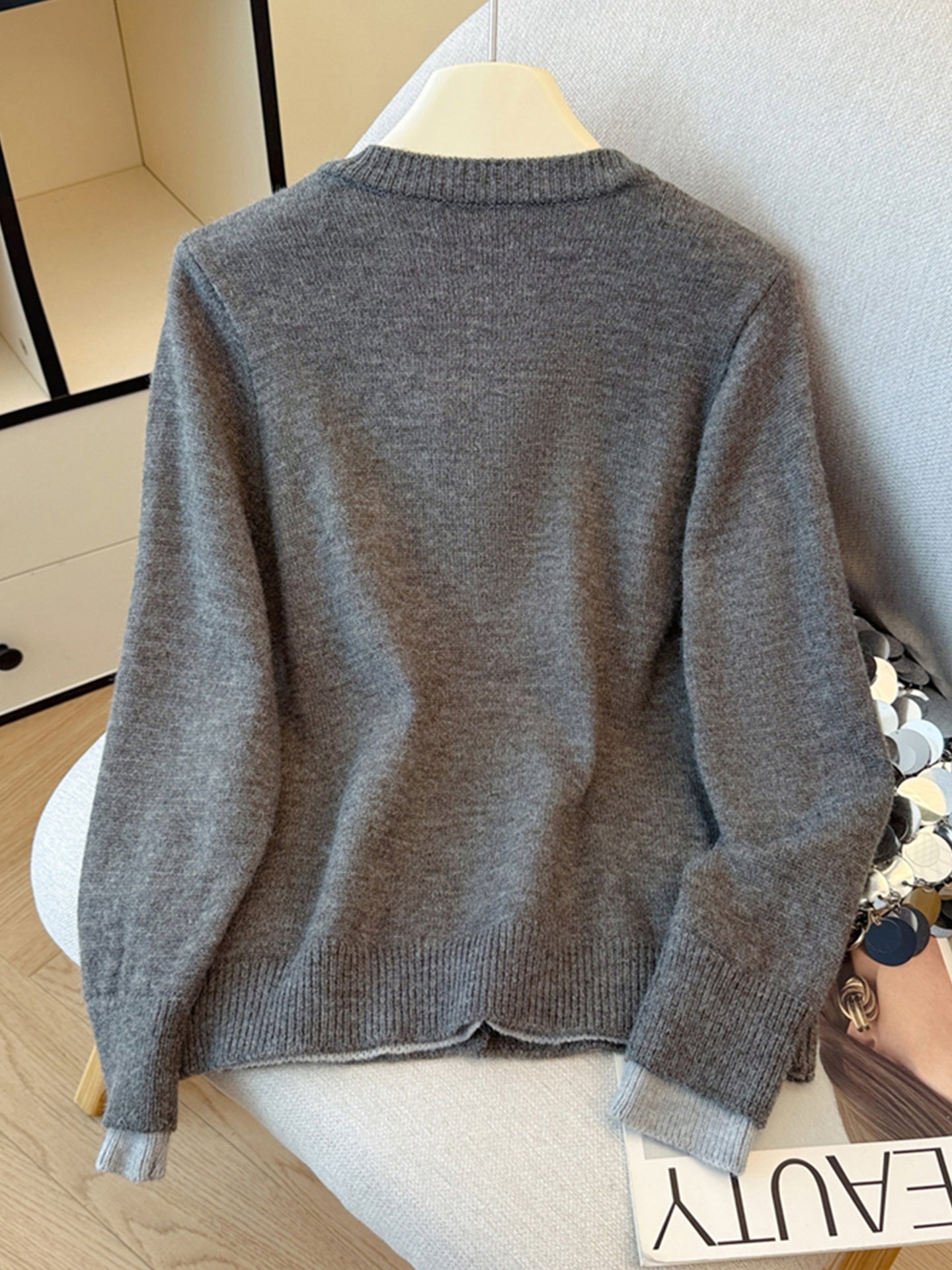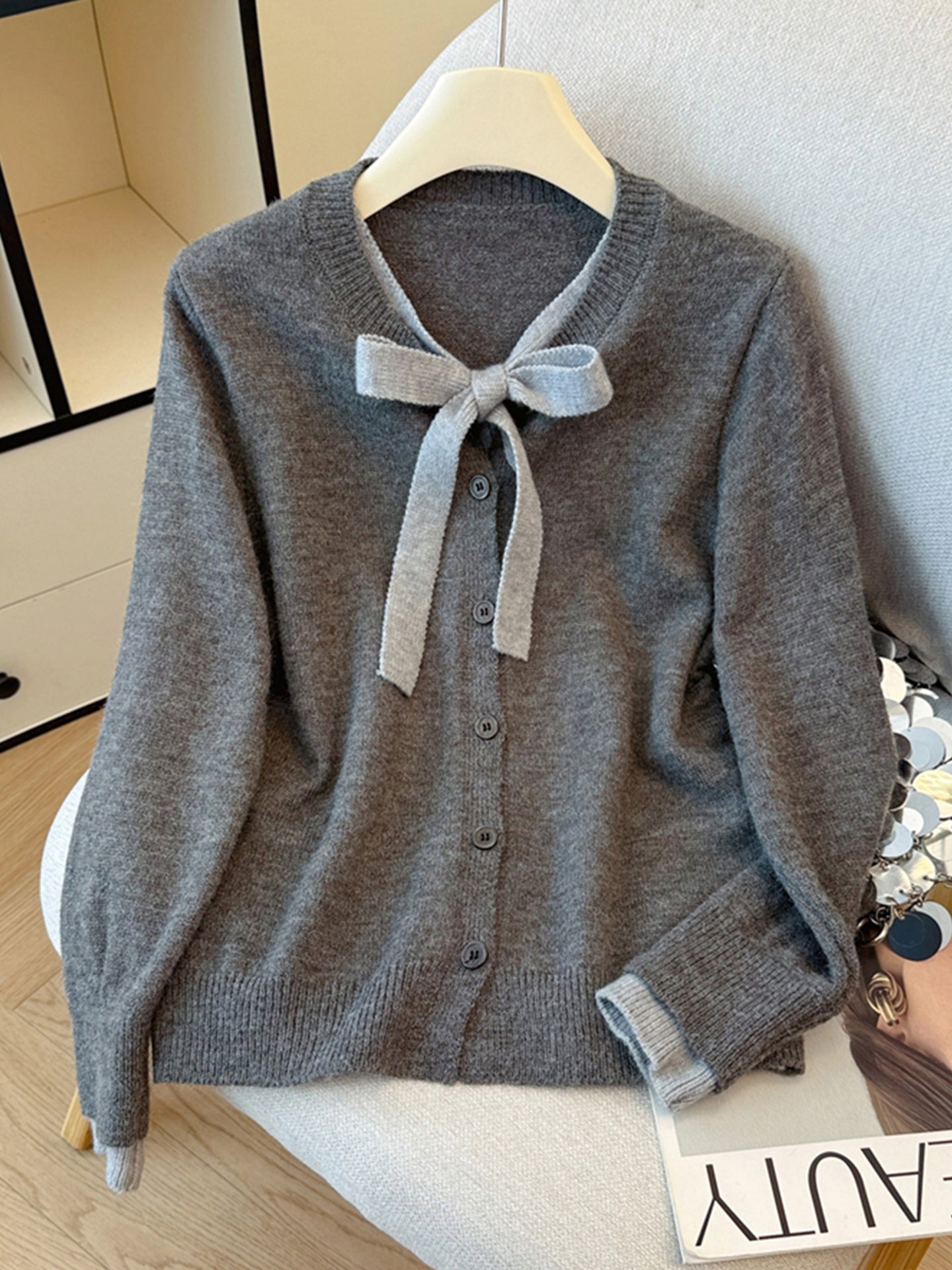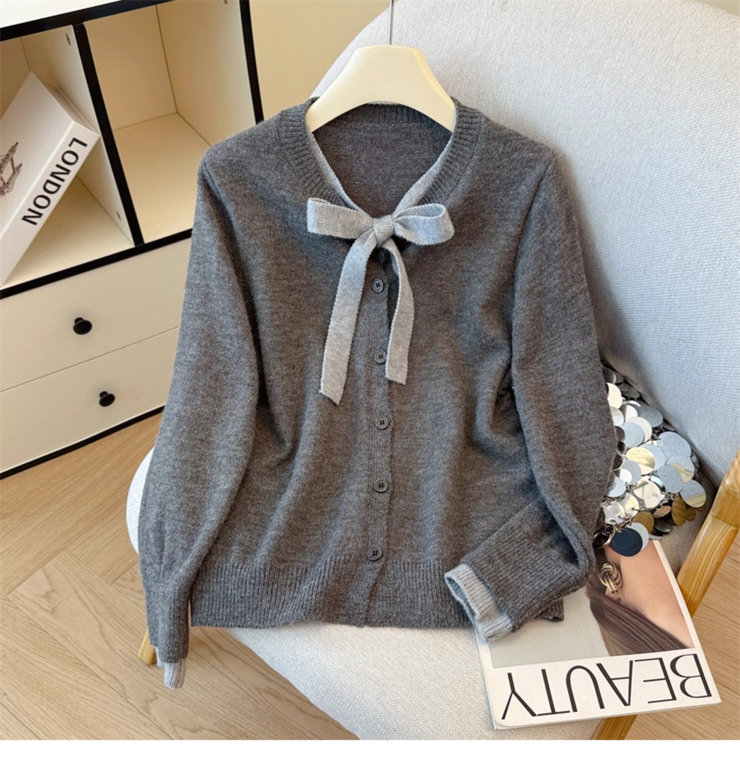 Payız və qış üçün geniş və rahat toxunma üslubda, qalstuklu, Koreya üslubunda iki hissəli sviter kardiqan.