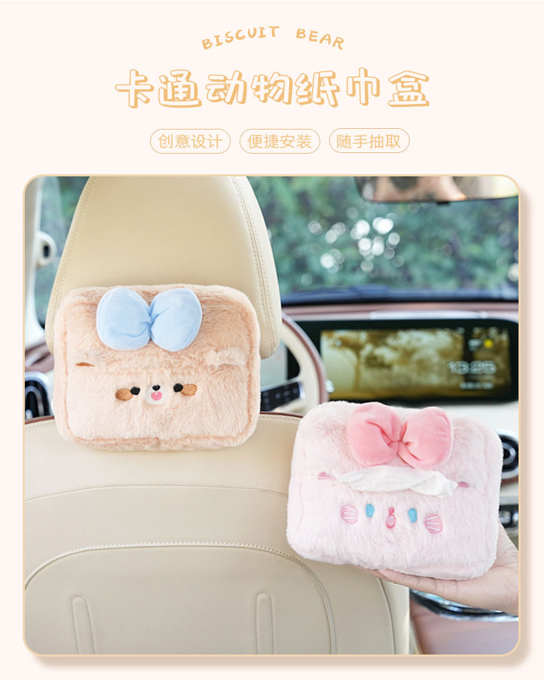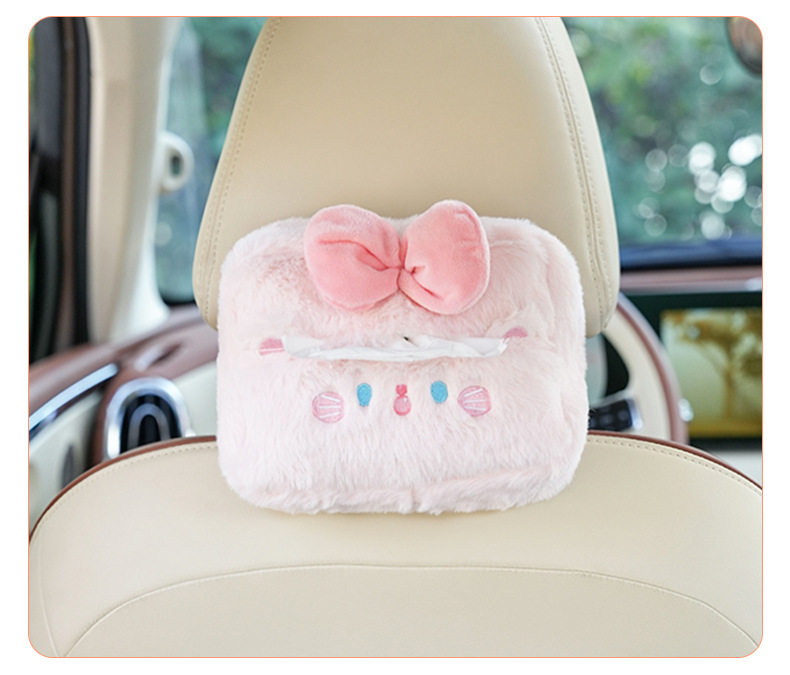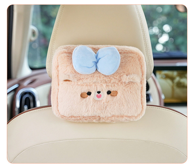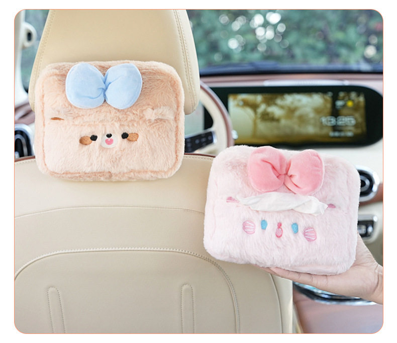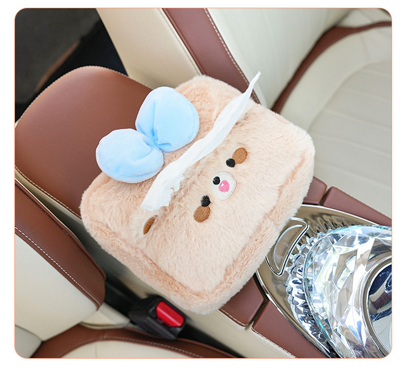 Plush cartoon car tissue box, multifunctional car armrest box tissue box, cute hanging tissue storage box