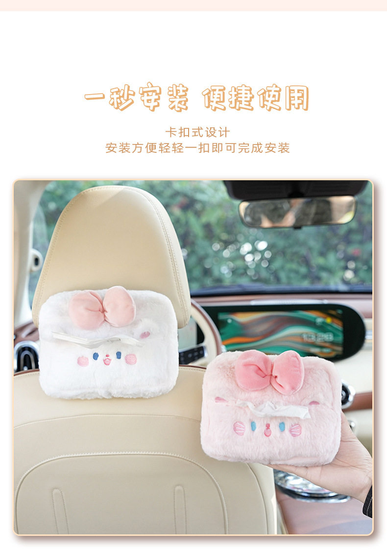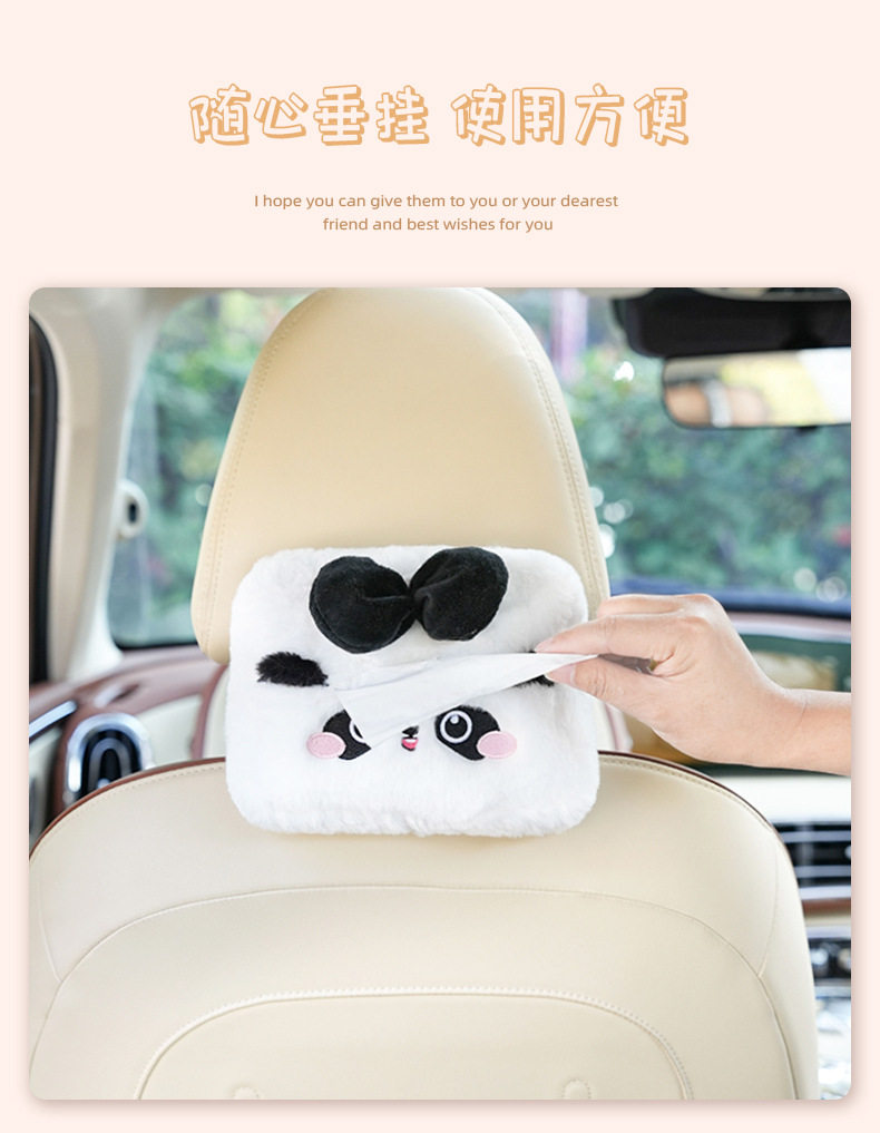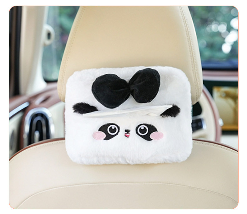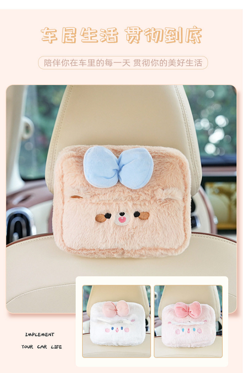 Plush cartoon car tissue box, multifunctional car armrest box tissue box, cute hanging tissue storage box