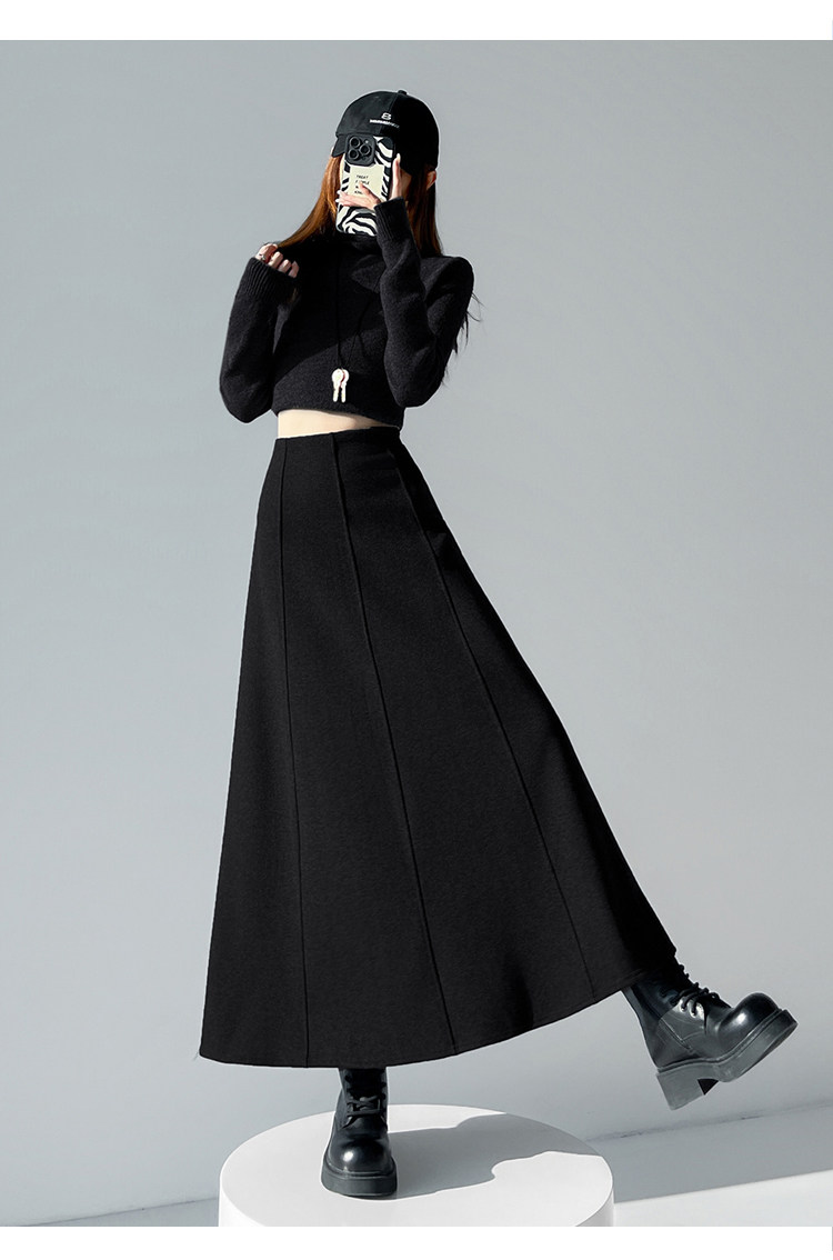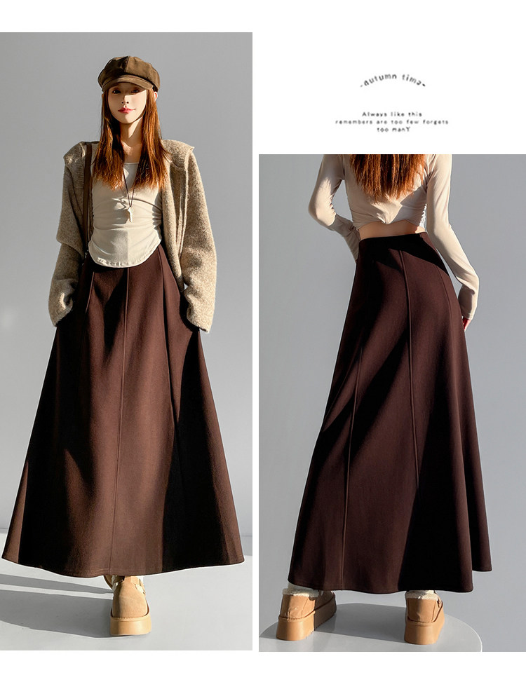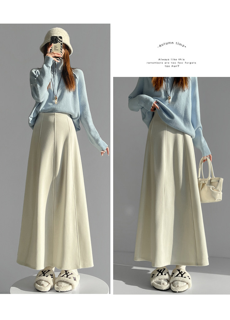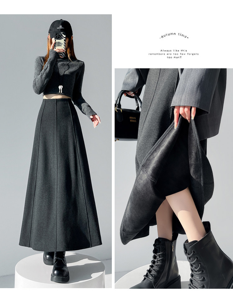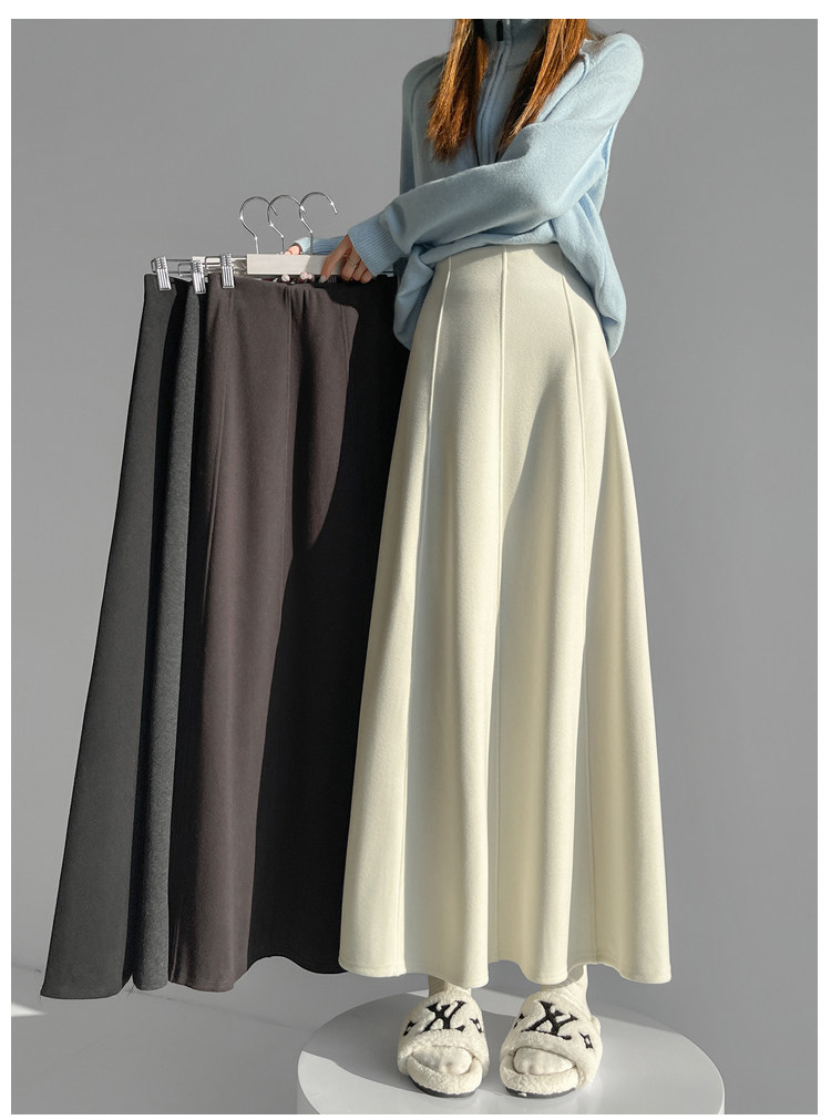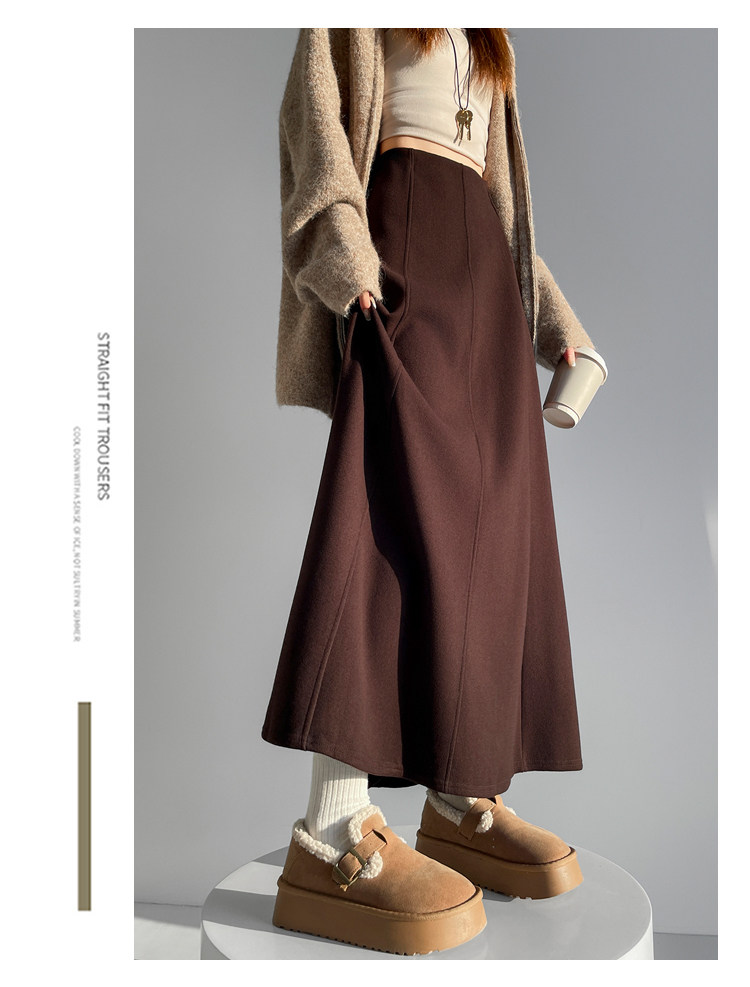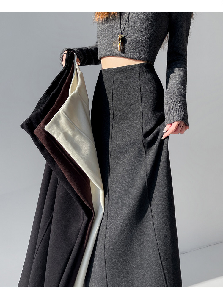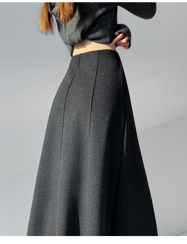 Qadın üçün kaşmir asetat yun midi ətək, yeni payız/qış üslubunda, yüksək belli, arıqladıcı A-xəttli maksi ətək, axıcı və çoxfunksiyalı.