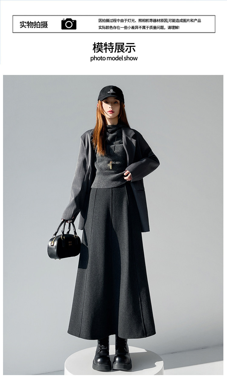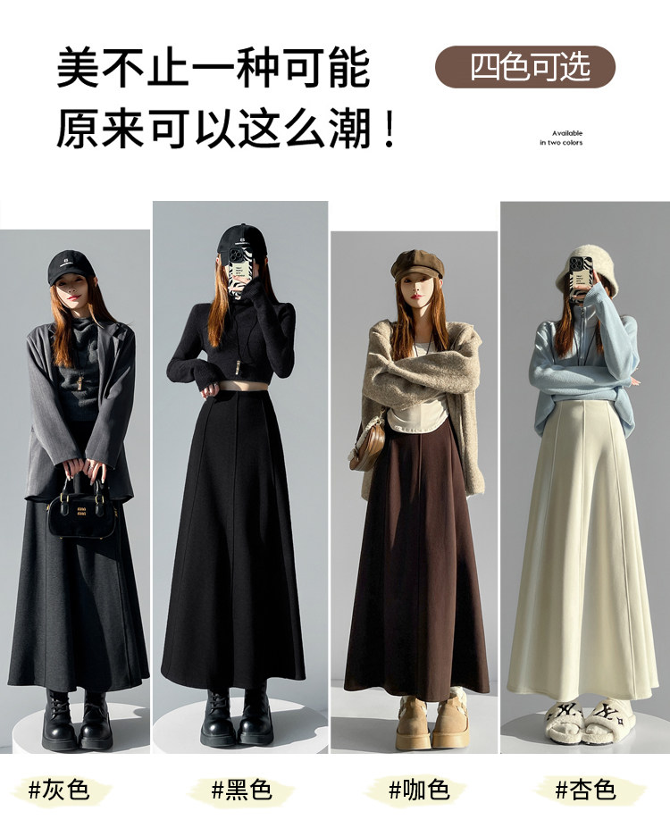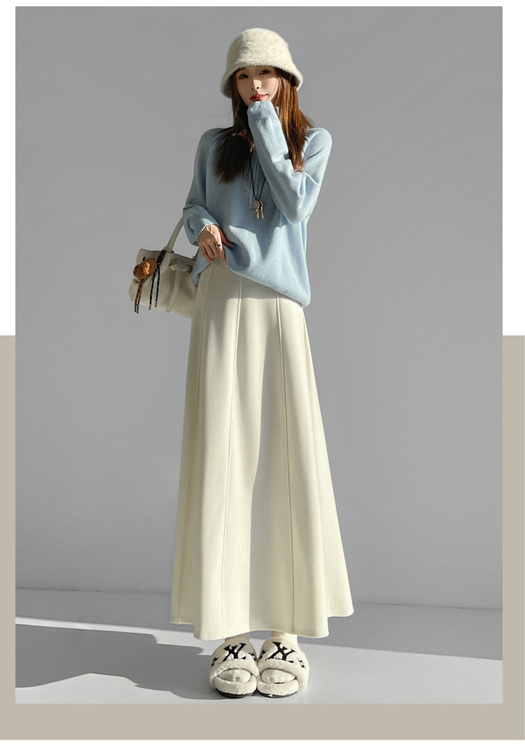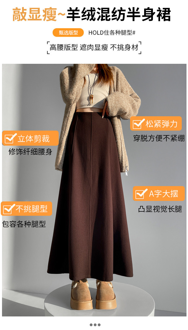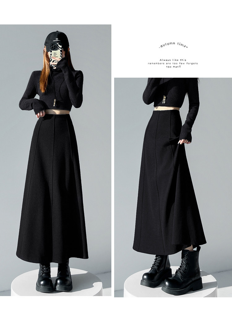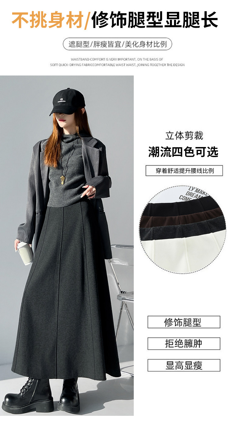 Qadın üçün kaşmir asetat yun midi ətək, yeni payız/qış üslubunda, yüksək belli, arıqladıcı A-xəttli maksi ətək, axıcı və çoxfunksiyalı.