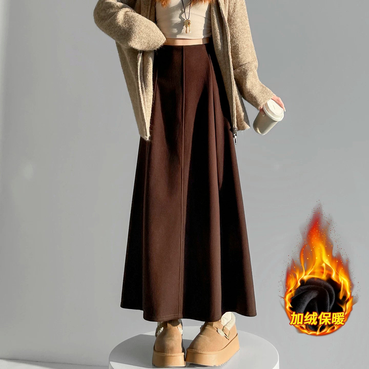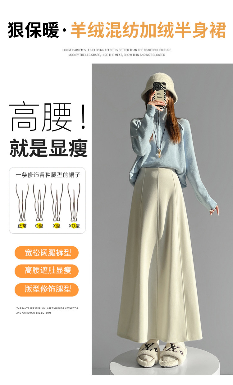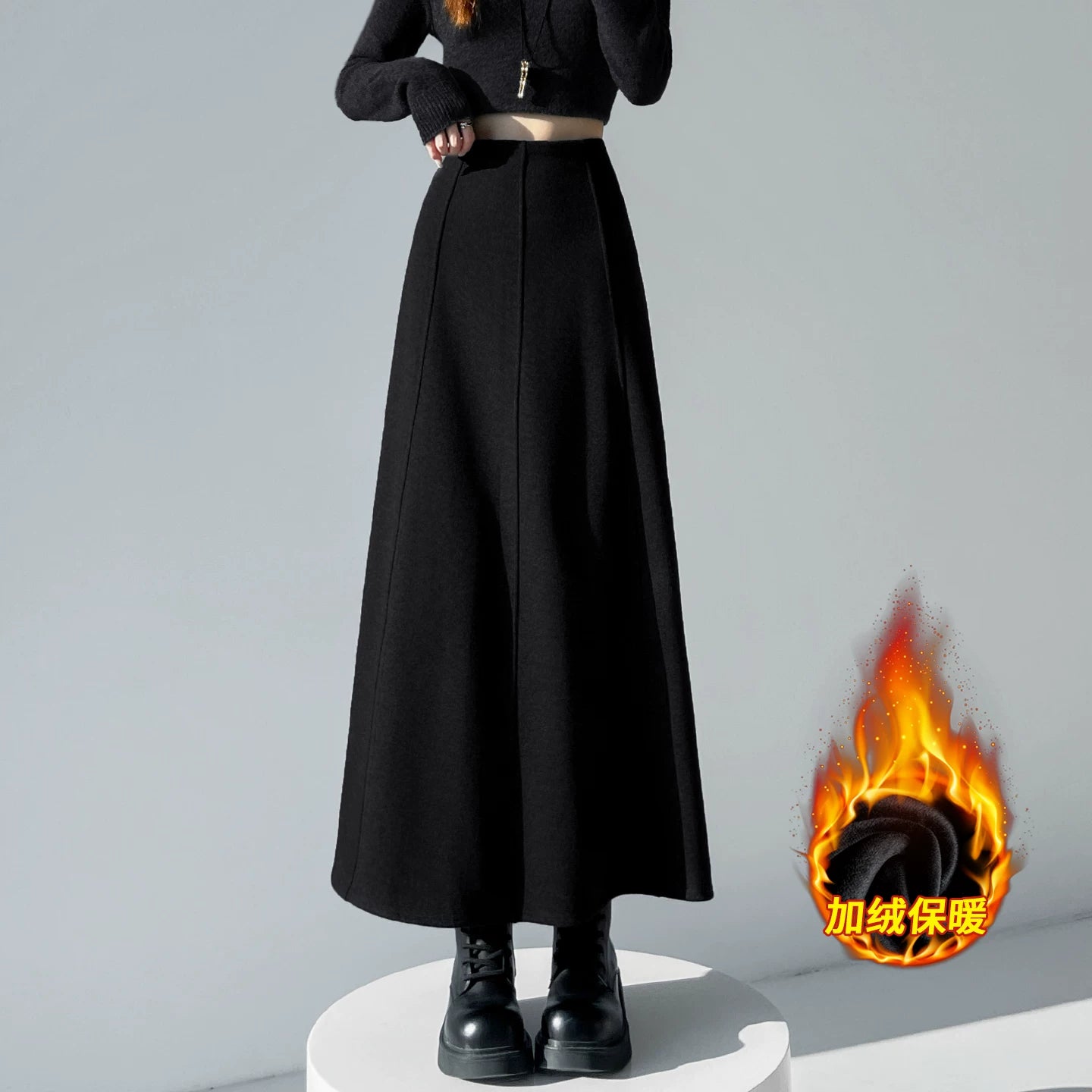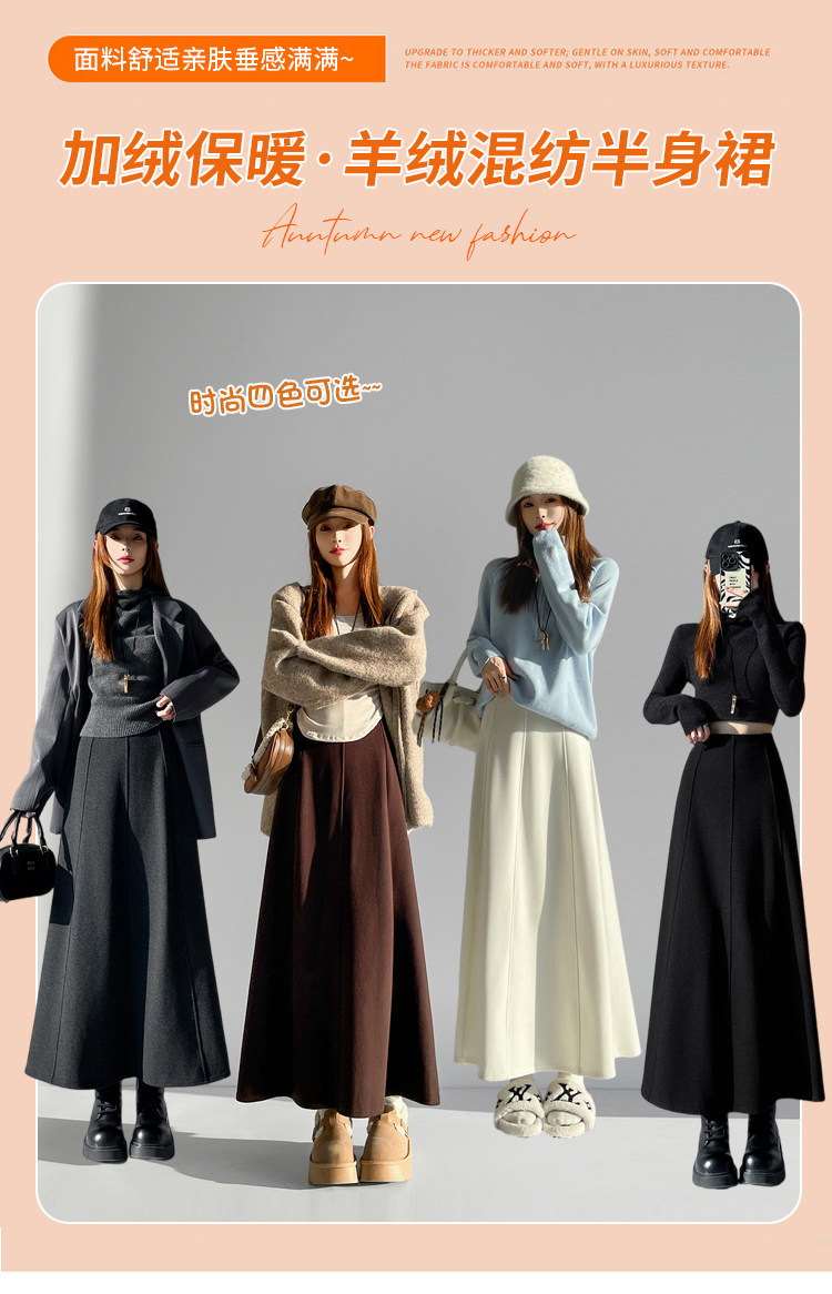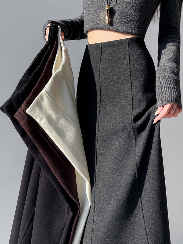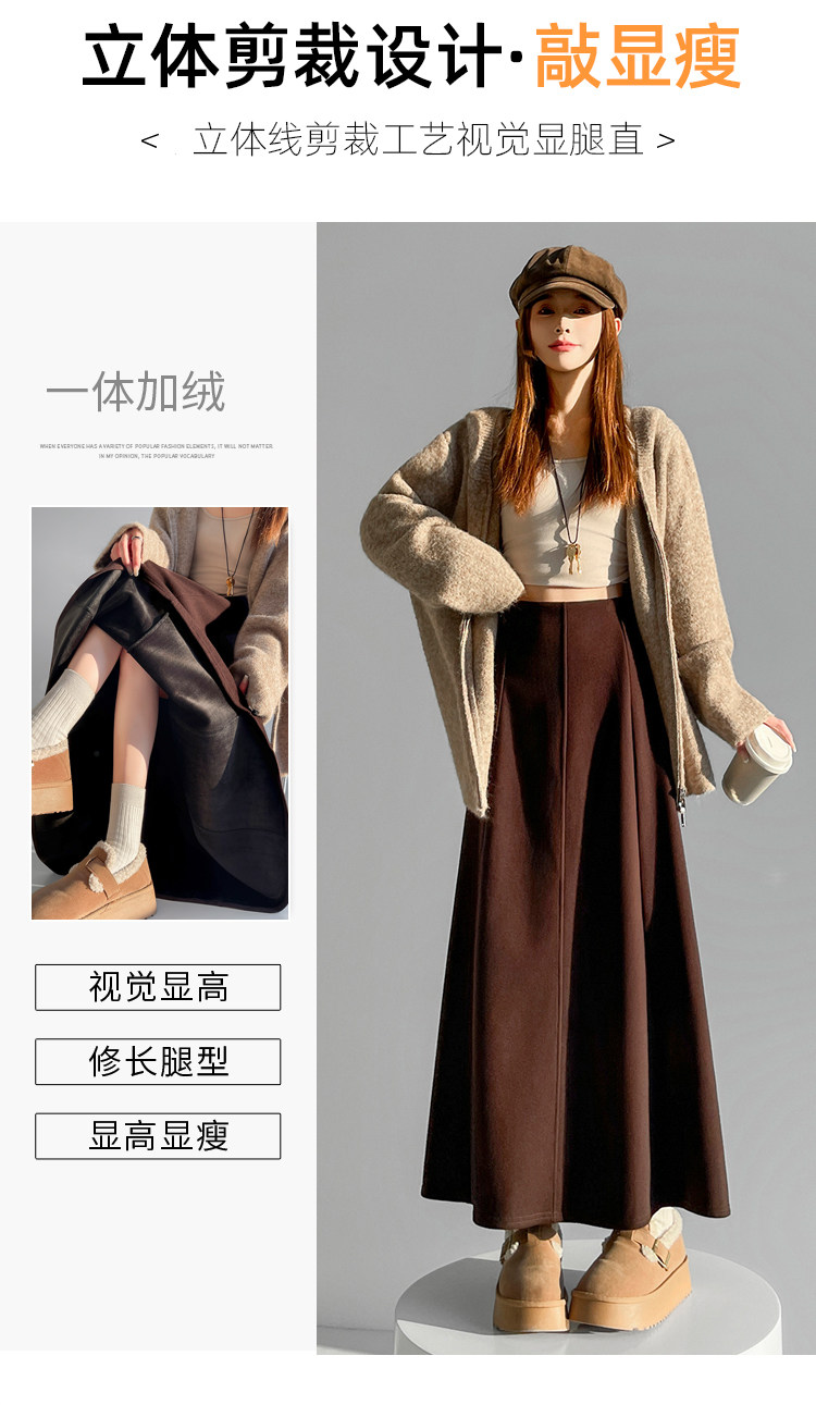 Qadın üçün kaşmir asetat yun midi ətək, yeni payız/qış üslubunda, yüksək belli, arıqladıcı A-xəttli maksi ətək, axıcı və çoxfunksiyalı.