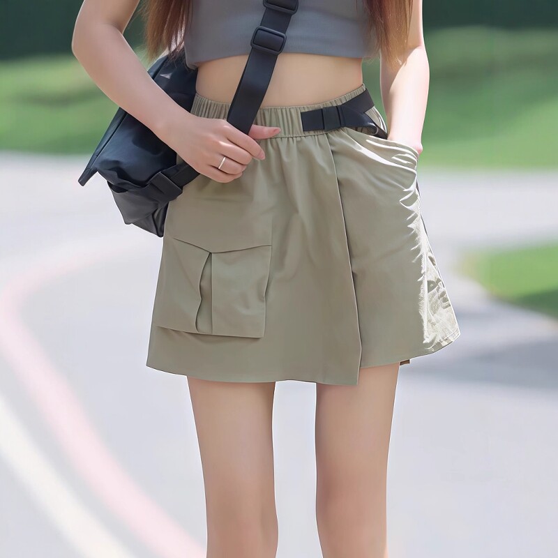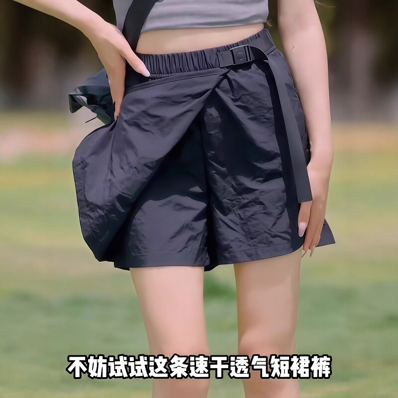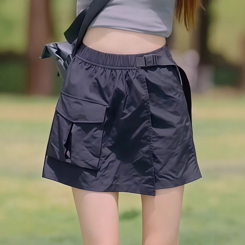 Qadın üçün nazik, tez quruyan yük şalvarı ətəyi, 2026 yeni model, yüksək belli A-xəttli ətək, böyük ölçülü, arıqladıcı Amerika üslubunda qara ətək.
