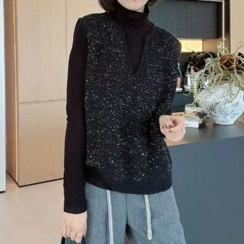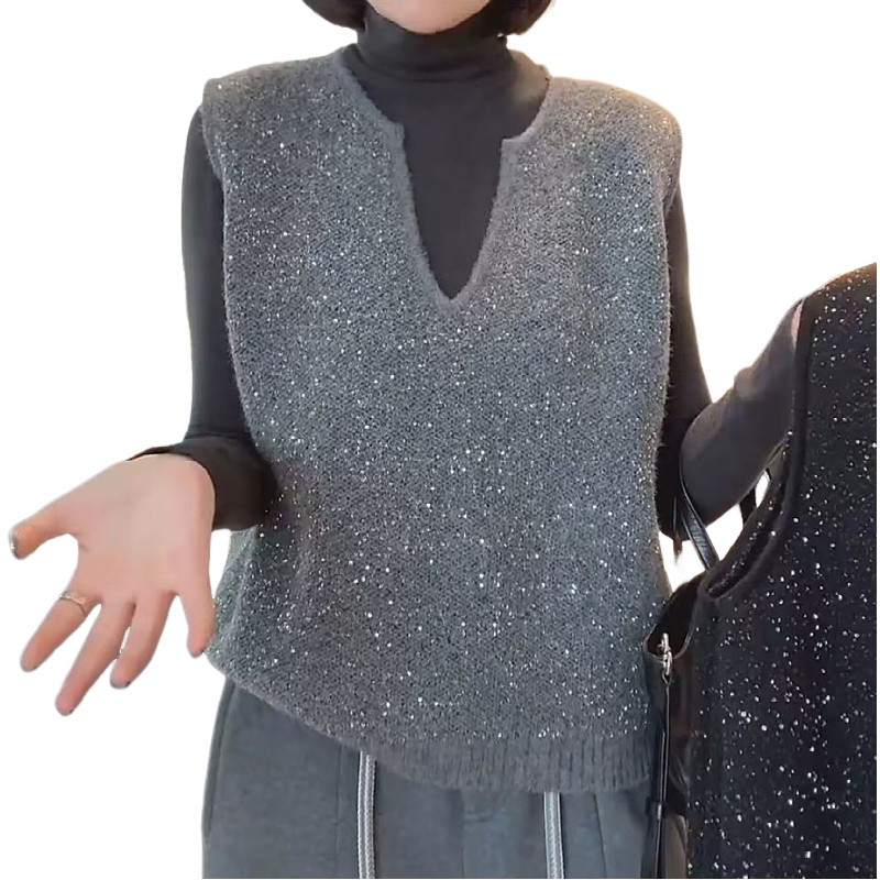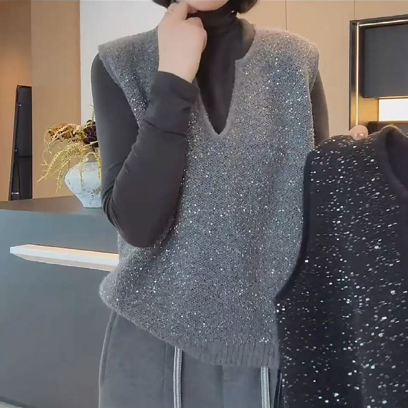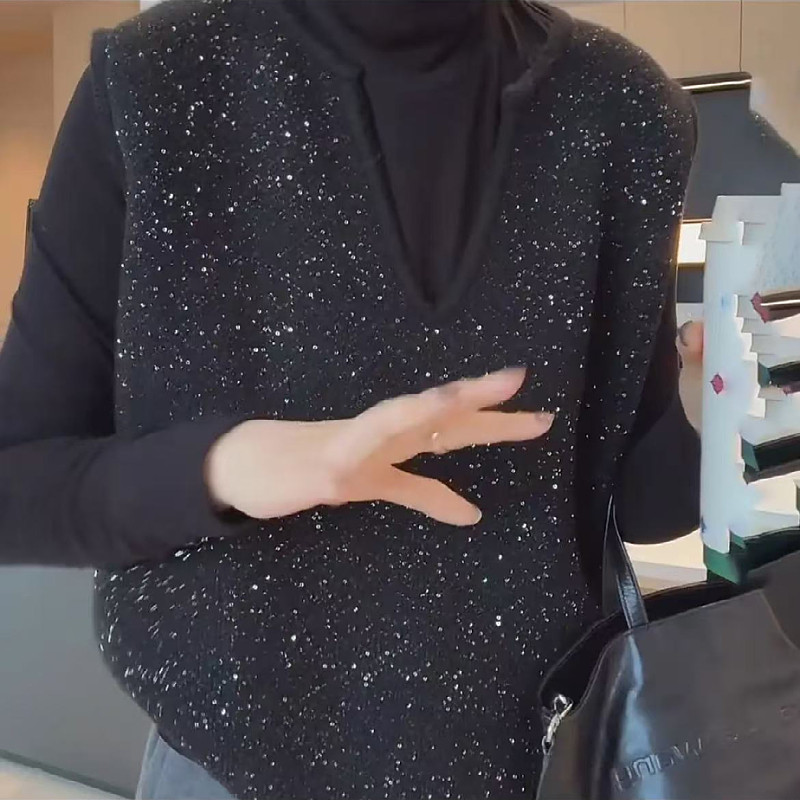 Qadınlar üçün Avropa üslubunda muncuqlu qolsuz toxunma jilet, yay üslubunda, böyük ölçüdə, geniş formada, yüksək səviyyəli hiss.