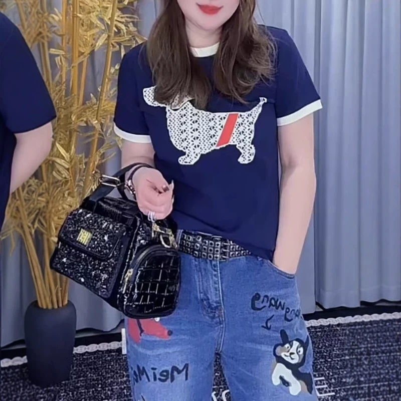 Qadınlar üçün Böyük Ölçülü Amerika Stilində Saf Pambıqdan Dəyirmi Yaxalıqlı Arıqladıcı Qısa Qollu Futbolka, Yay 2026, Əyri Qadınlar üçün Dəbli, Boş və Zərif Top