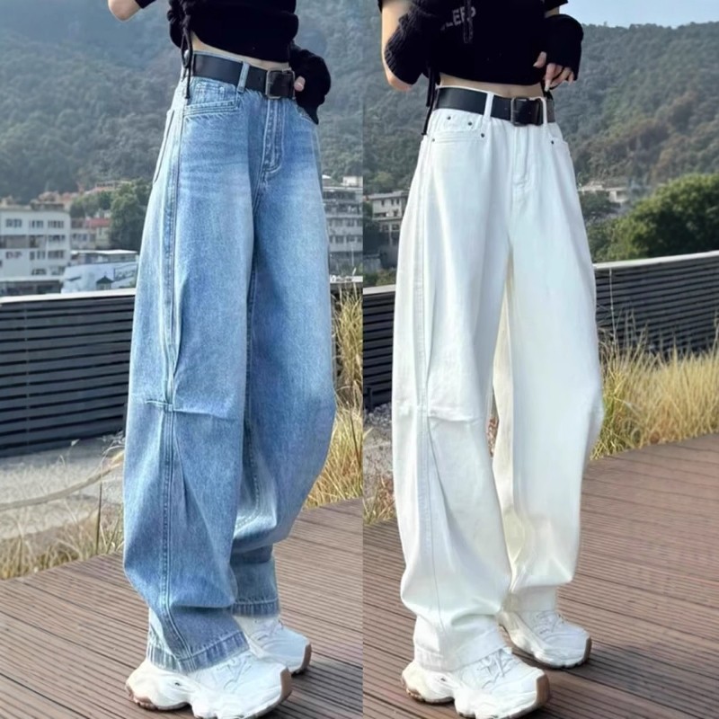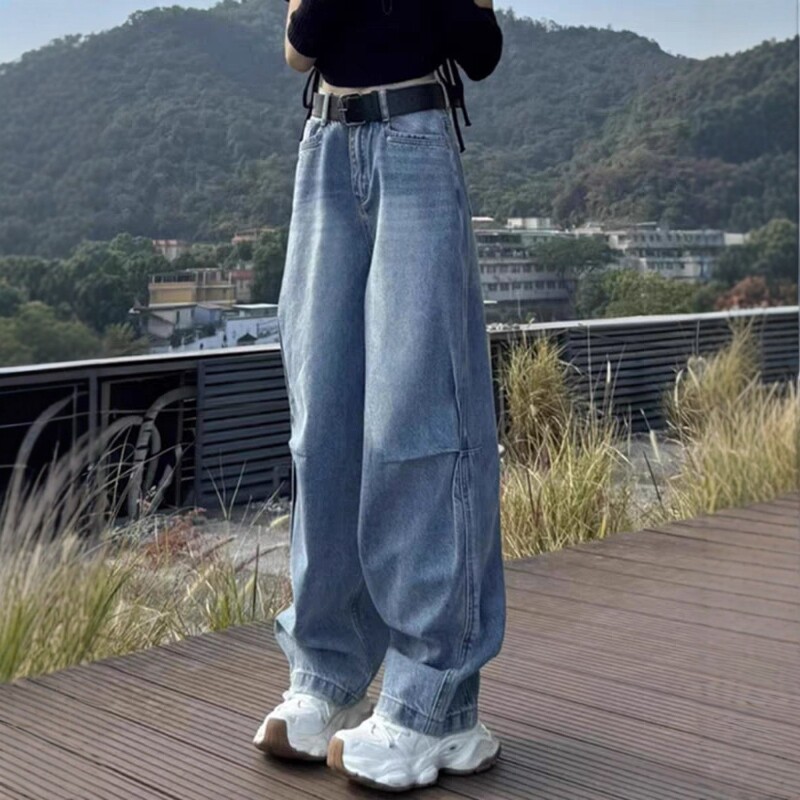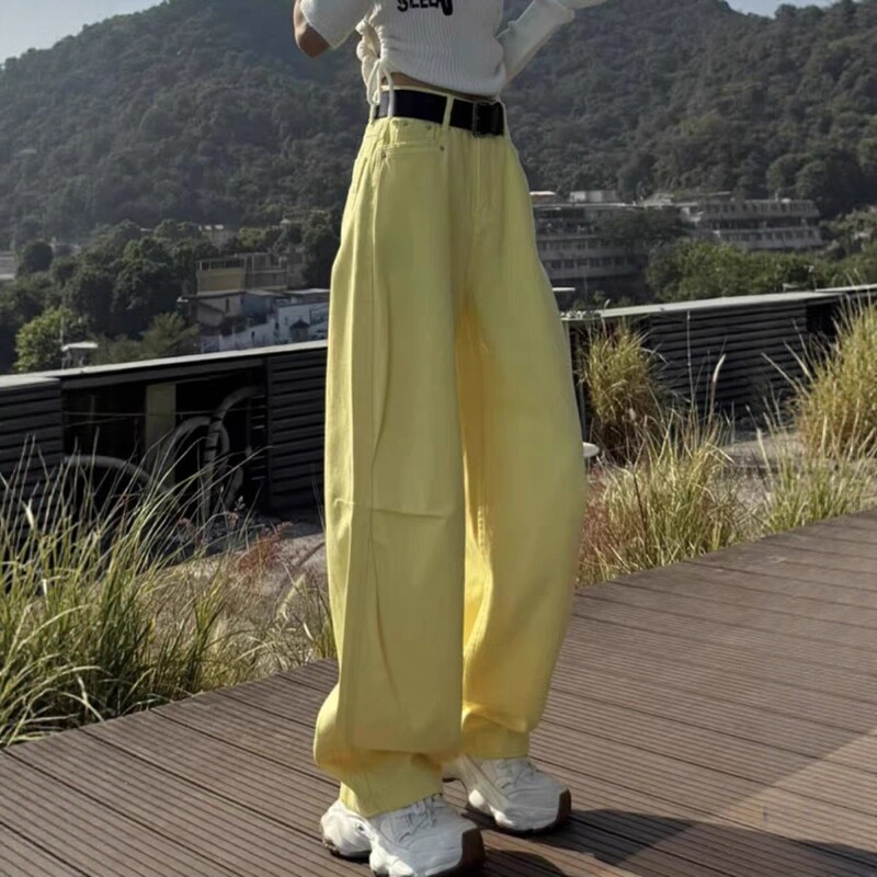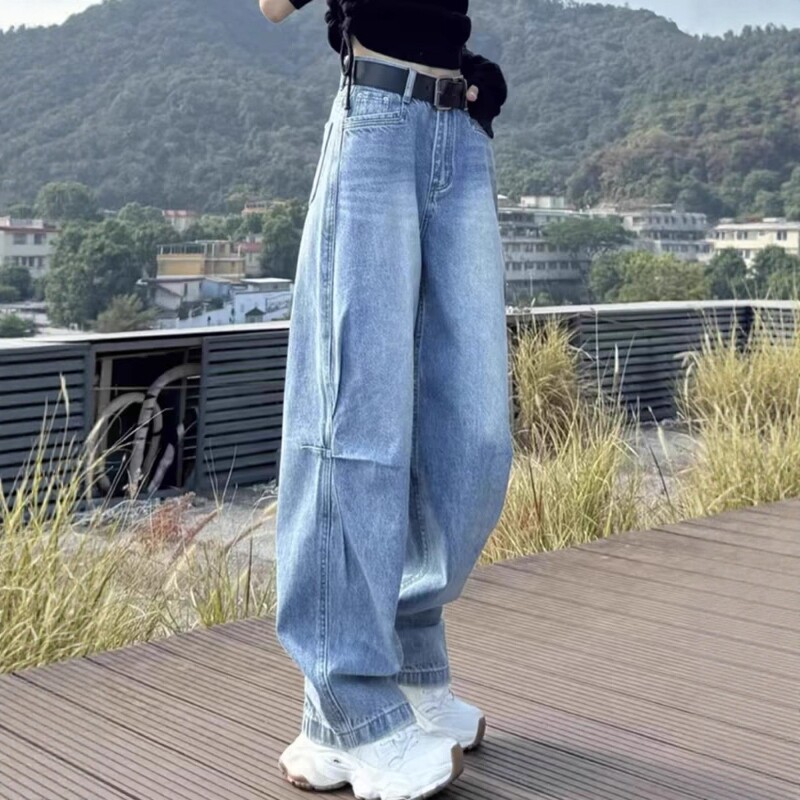 Qadınlar üçün Böyük Ölçülü Amerika Üslublu Əyri Cins Şalvar, 2026 Yaz Yeni Gəlişi, Boş Forma, Yüksək Bel, Arıqladıcı Düz Ayaqlı Geniş Ayaqlı Şalvar