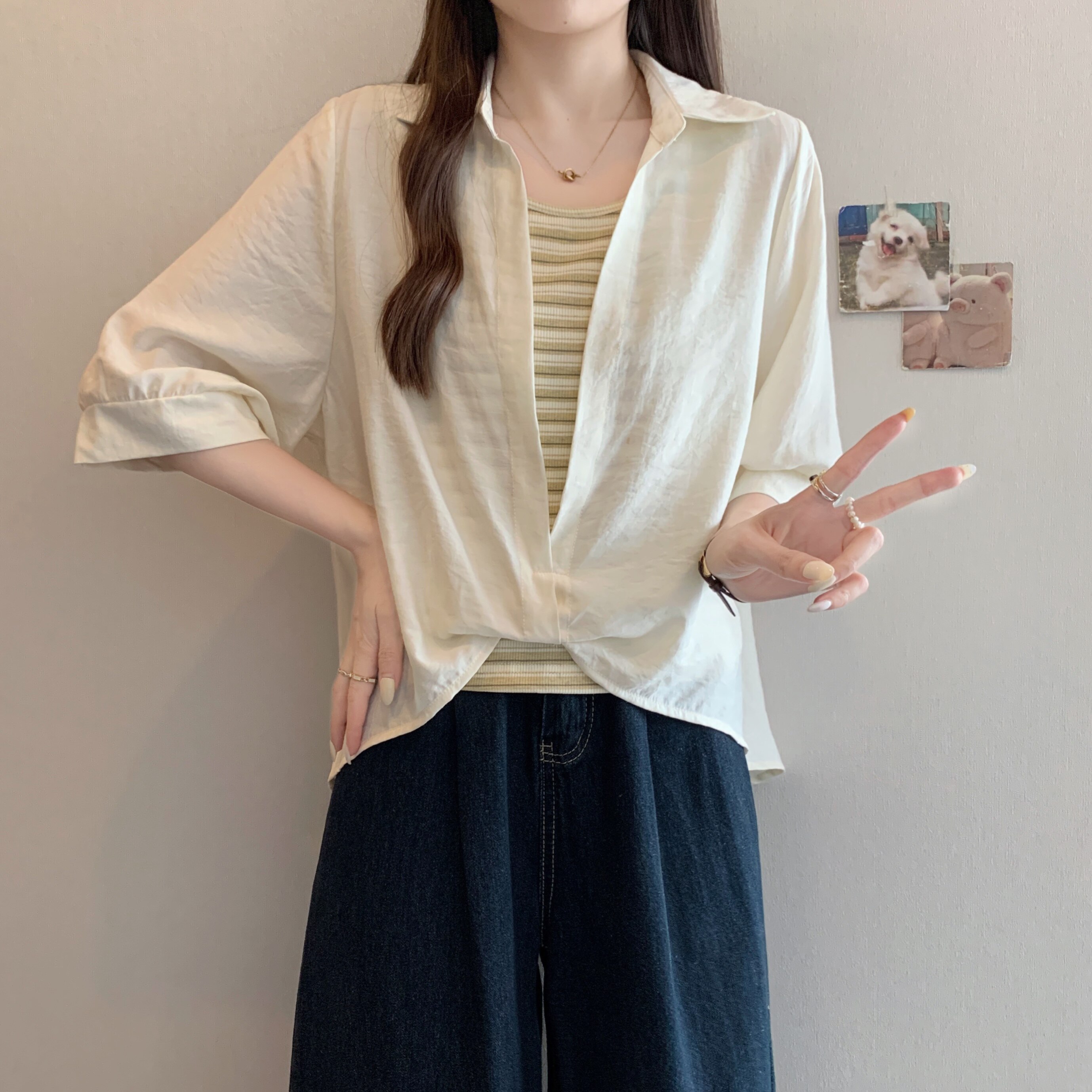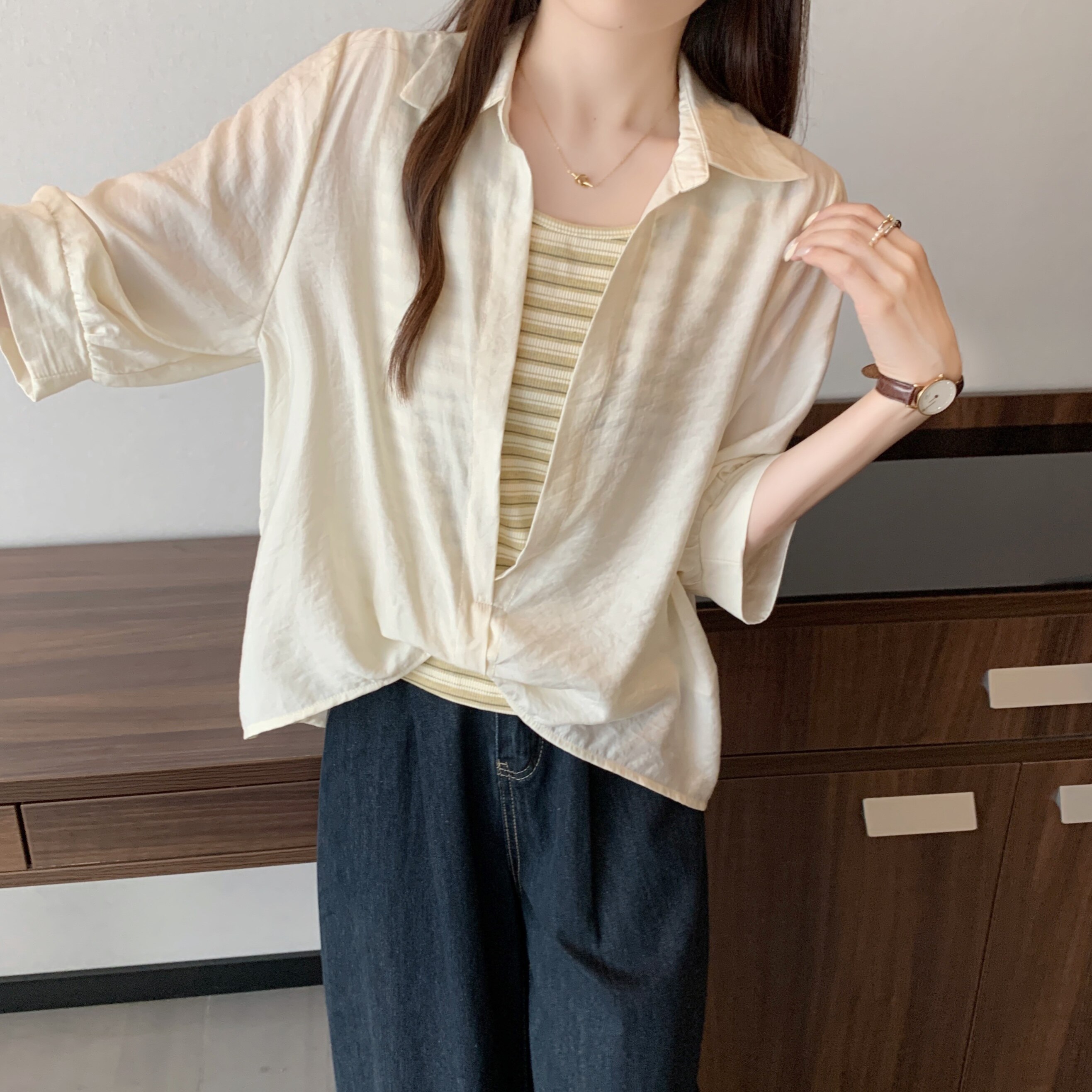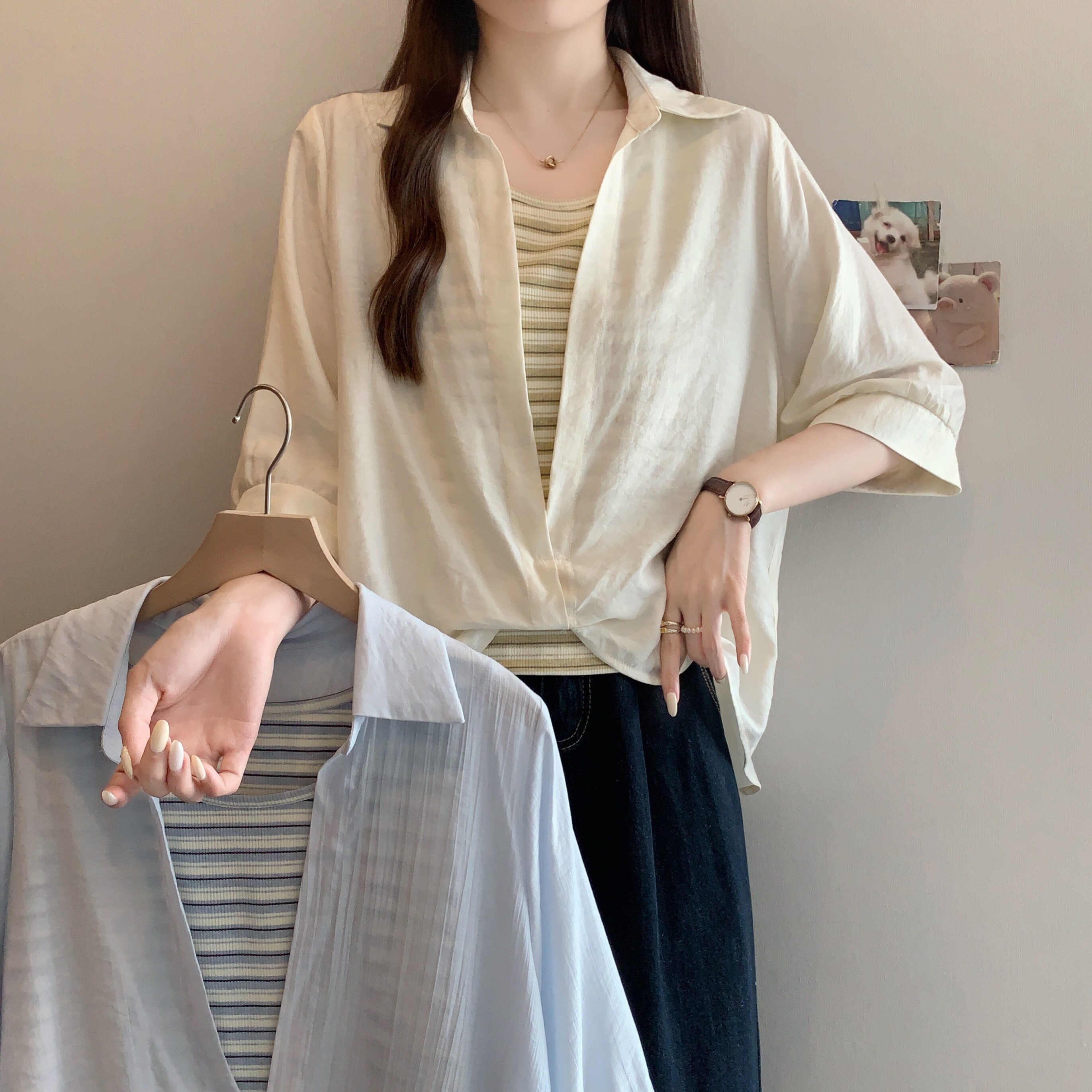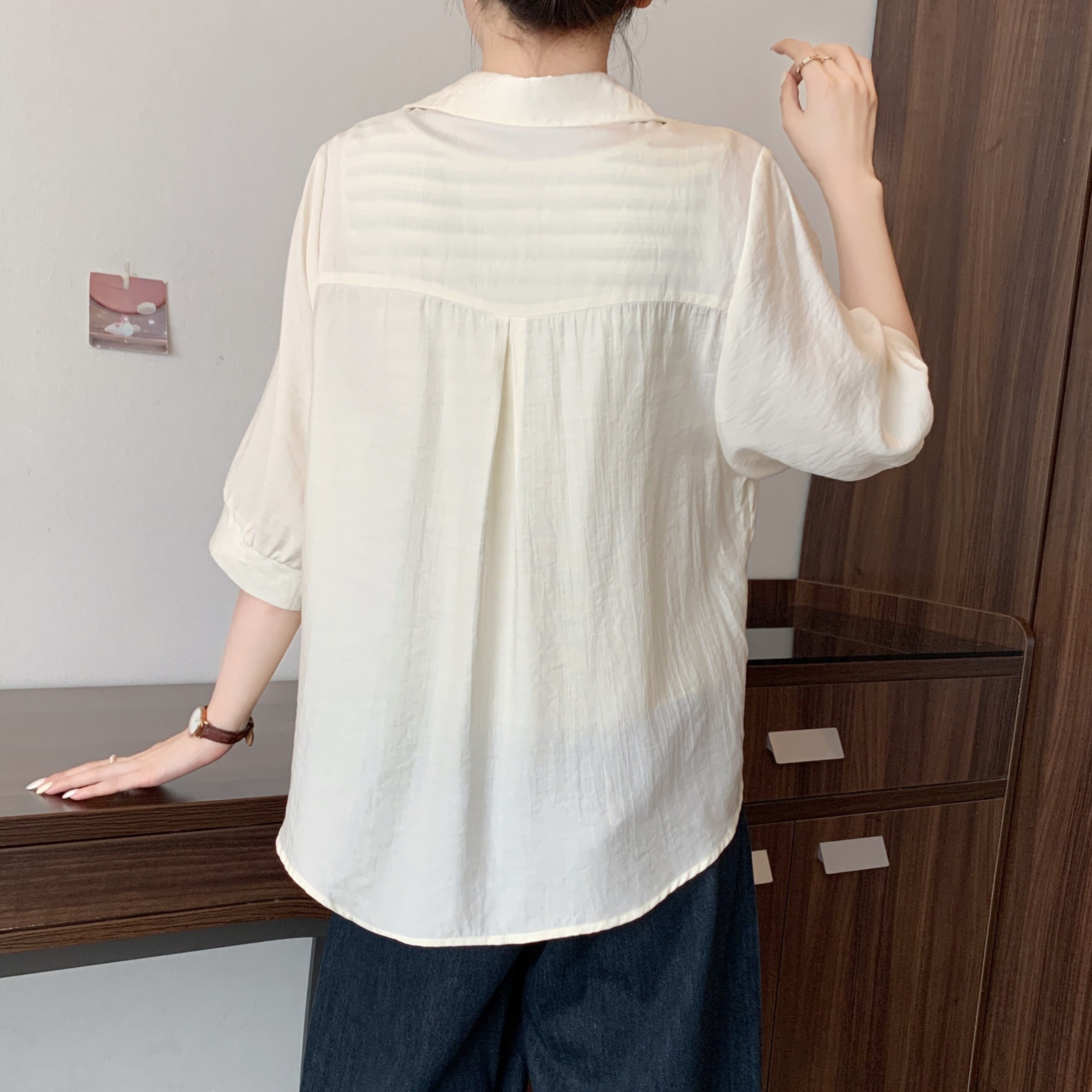 Qadınlar üçün böyük ölçülü dizaynlı, düyünlü süni iki hissəli qısaqol köynək, 2026-cı ilin yayı, geniş formalı, şık və gözəl, dəbli top.