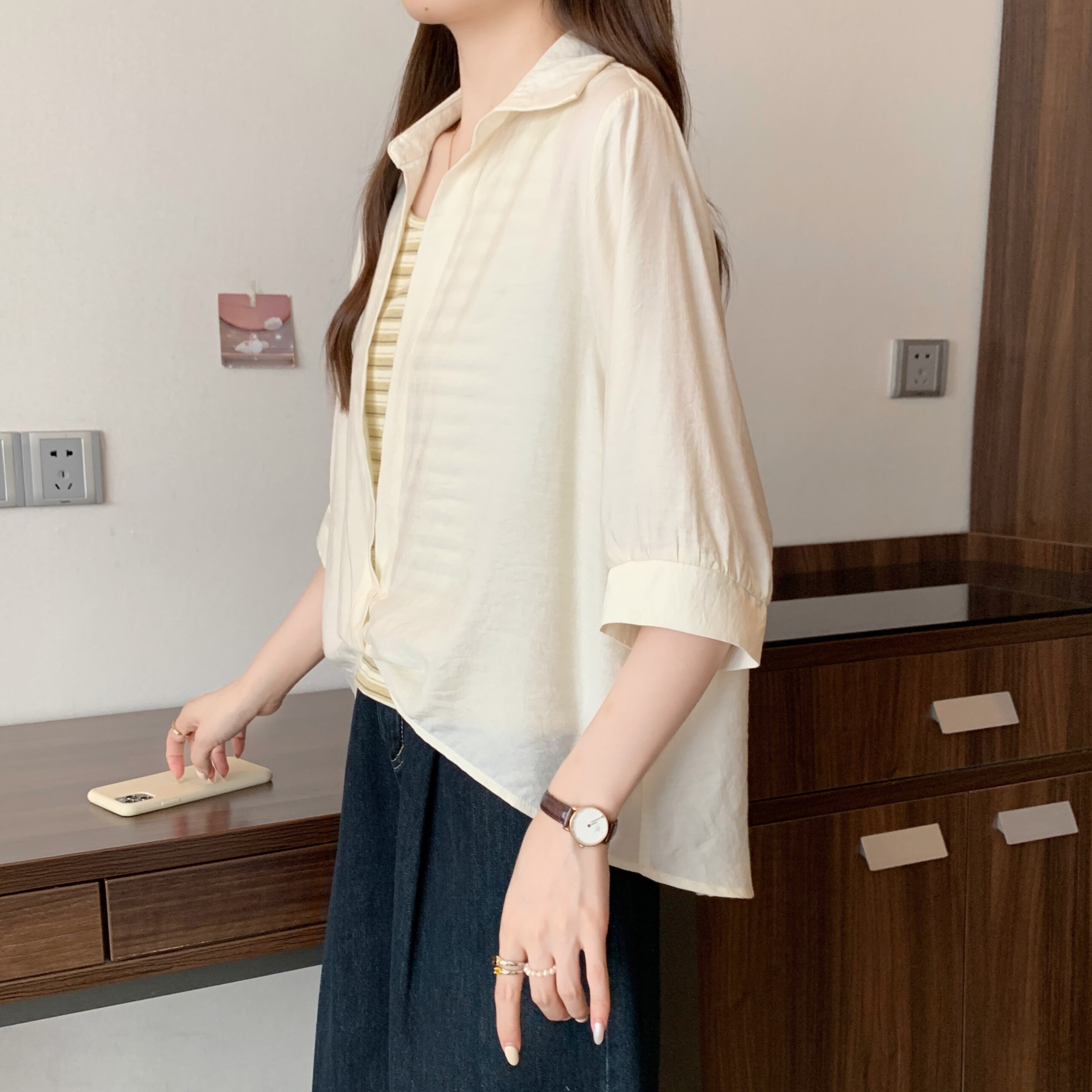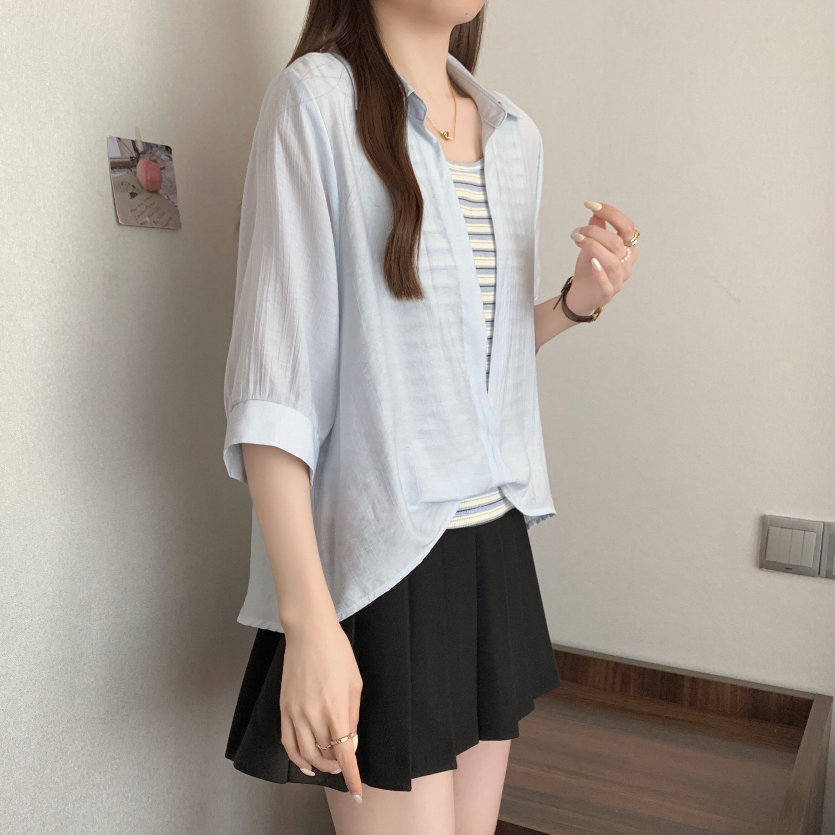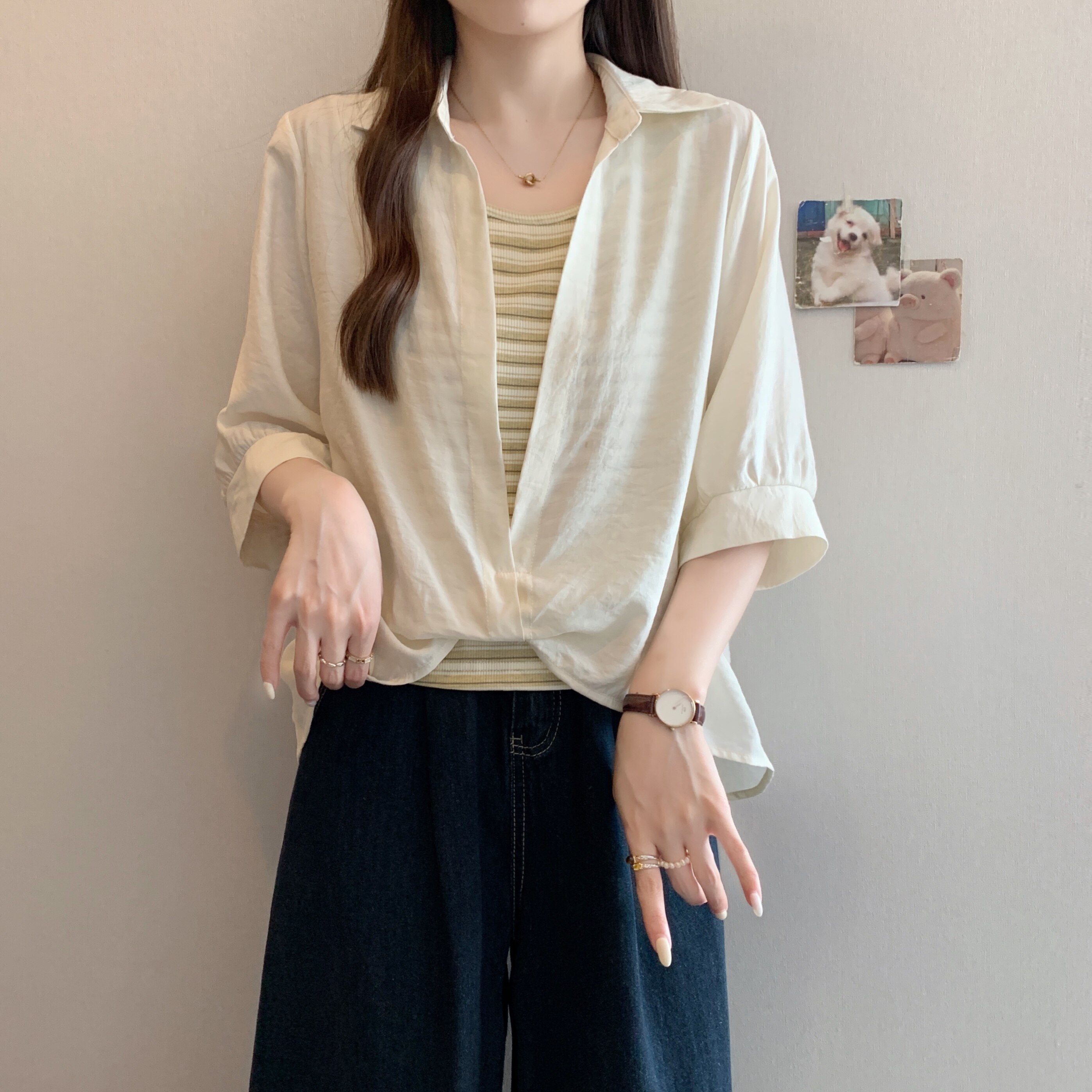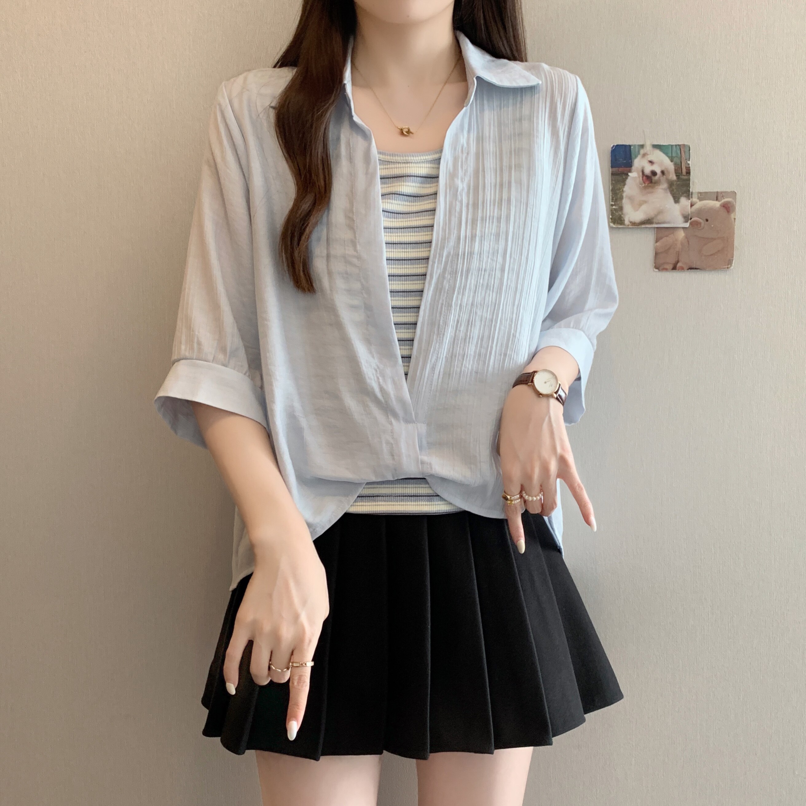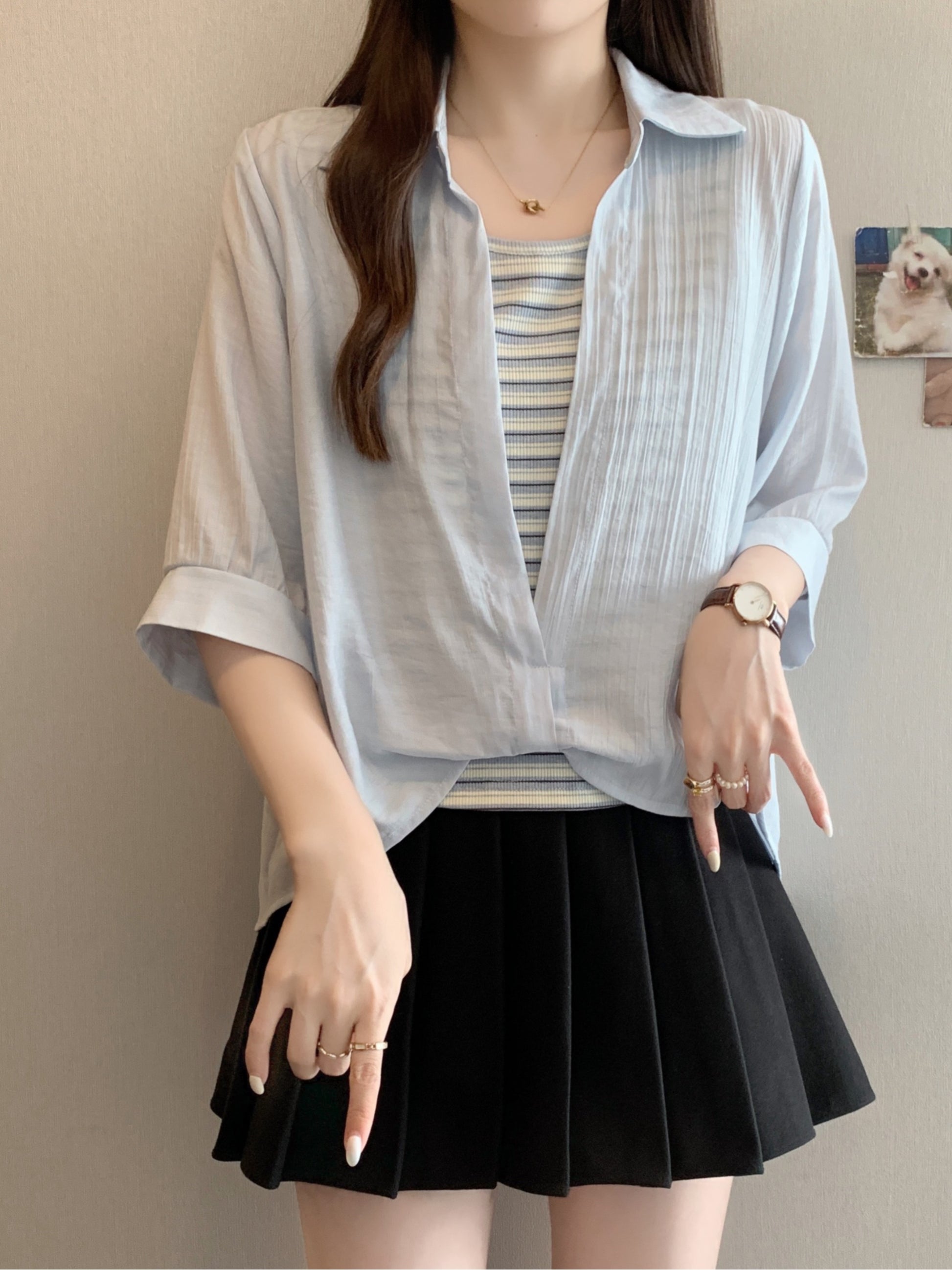 Qadınlar üçün böyük ölçülü dizaynlı, düyünlü süni iki hissəli qısaqol köynək, 2026-cı ilin yayı, geniş formalı, şık və gözəl, dəbli top.