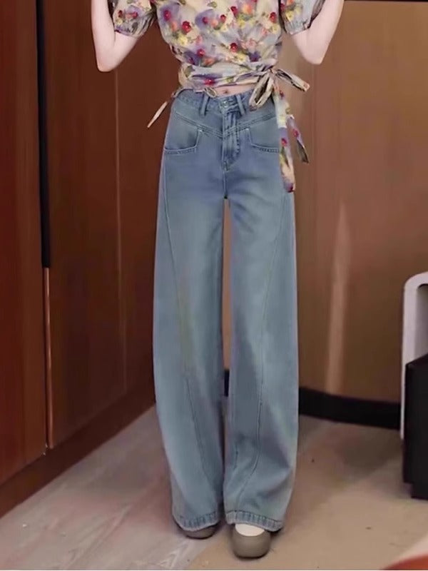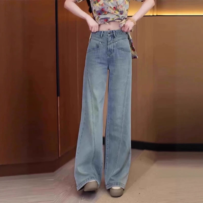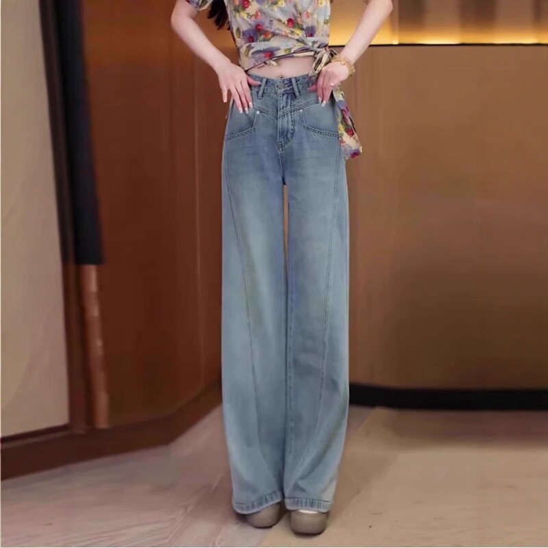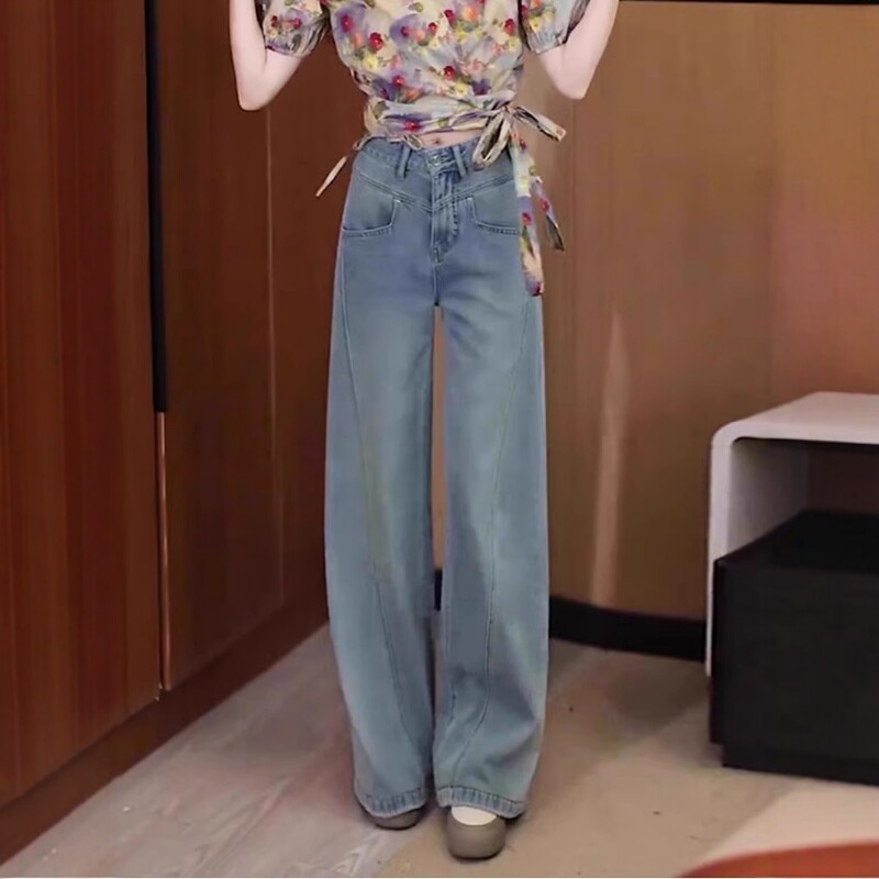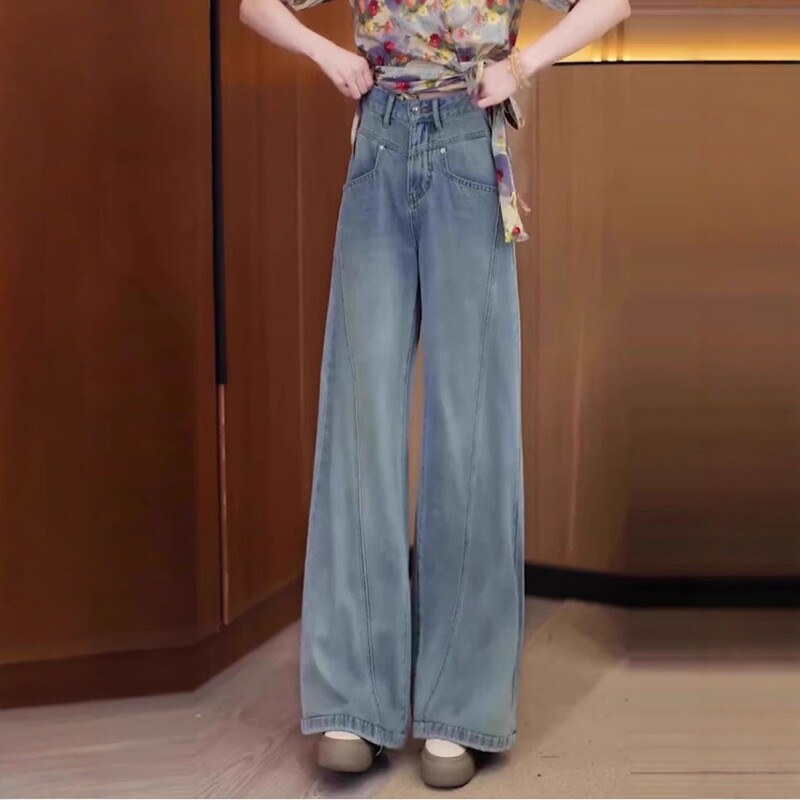 Qadınlar üçün böyük ölçülü enli ayaqlı cins şalvar, yeni 2026-cı ilin yay modası, nazik, yüksək belli, geniş, arıqladıcı, düz ayaqlı şalvar.