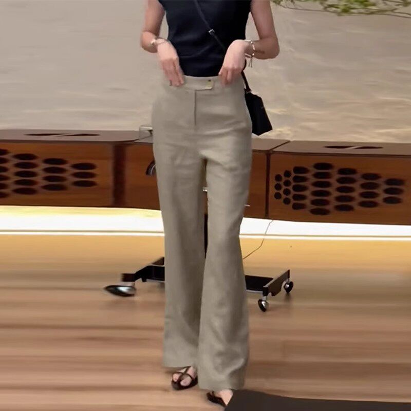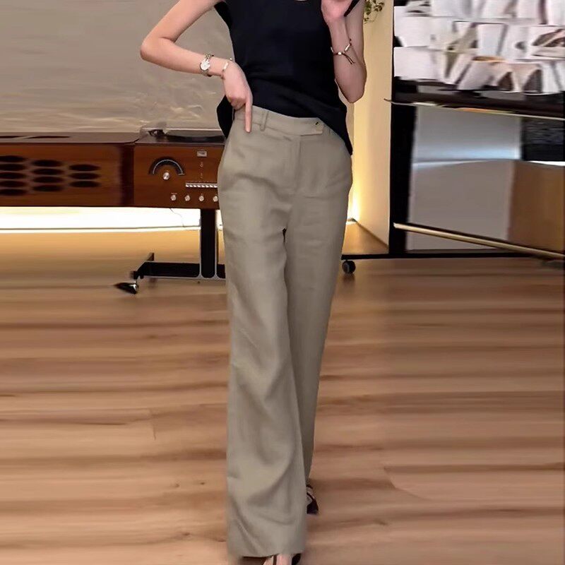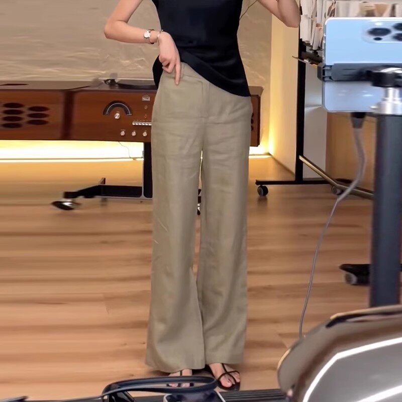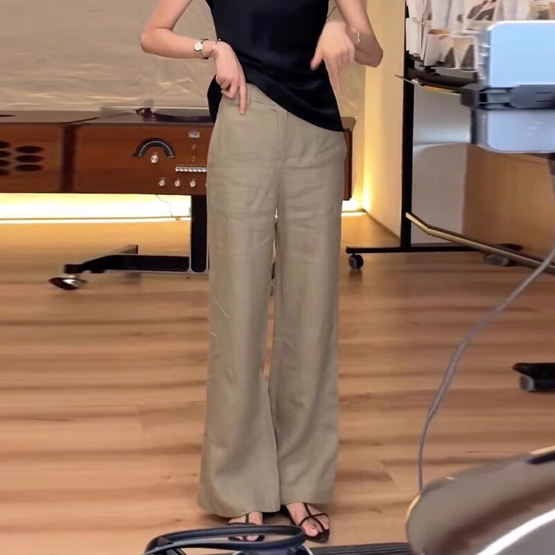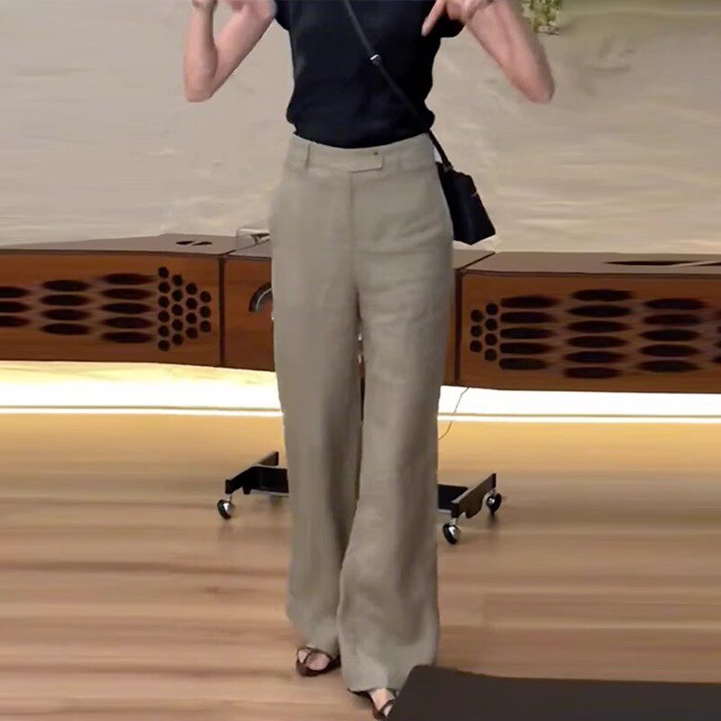 Qadınlar üçün Böyük Ölçülü Kətan Düz Ayaqlı Şalvar, 2026 Yeni Yay Modeli, Nazik, Yüksək Belli, Arıqladıcı Gündəlik Şalvar, Biraz Qabarıq Uzun Şalvar