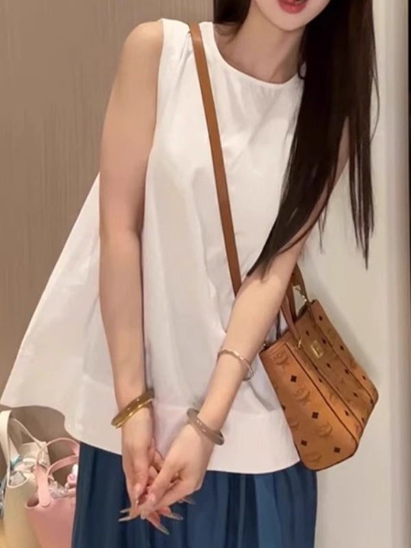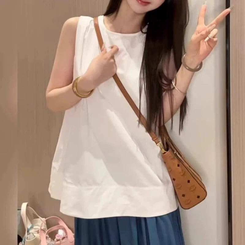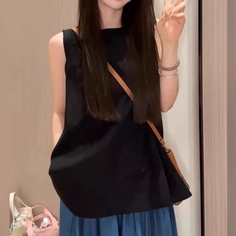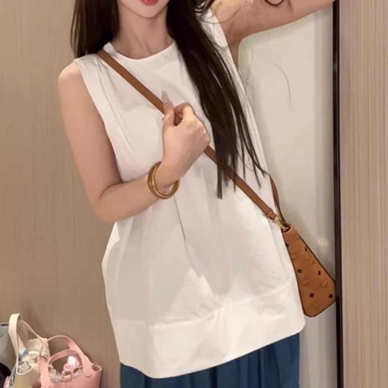Qadınlar üçün Böyük Ölçülü Koreya Üslublu Dəyirmi Yaxalı Kazak Gödəkçəsi, Yay 2026, Boş Oturacaqlı, Qolsuz, Çoxfunksiyalı, Arıqladıcı Top