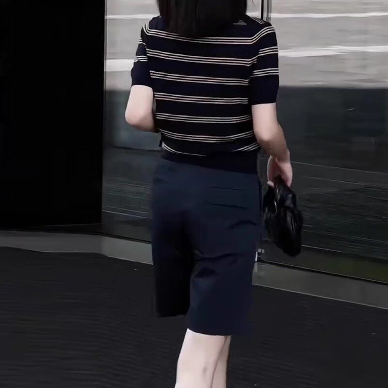 Qadınlar üçün Böyük Ölçülü Kostyum Şortları, 2026 Yeni Yay Modeli, İncə, Yüksək Bel, Arıqladıcı, Boş, Geniş Ayaqlı, Əyri Bədənli Qadınlar üçün Beş Nöqtəli Şortlar