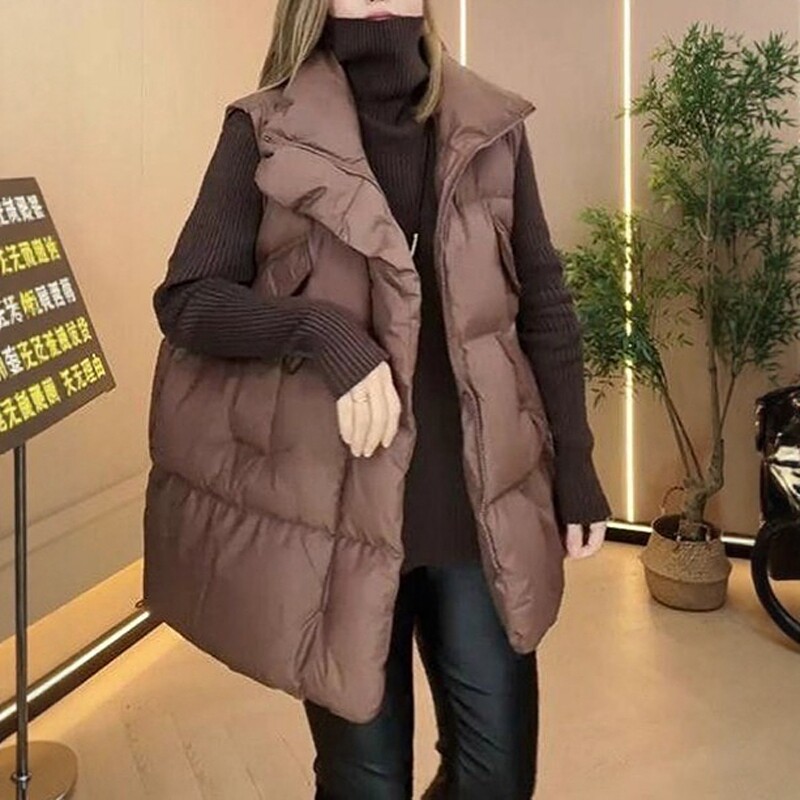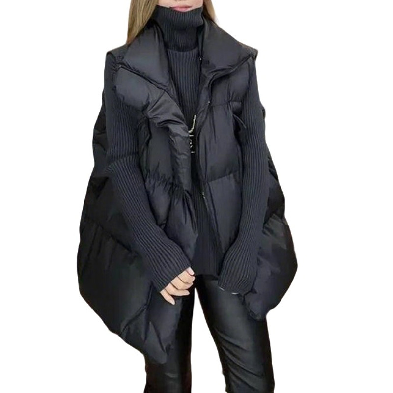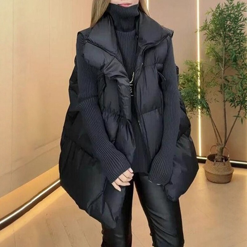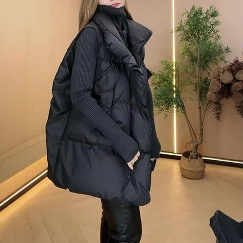 Qadınlar üçün Böyük Ölçülü Qara Dəbli Dayaqlı Qolsuz Qalınlaşmış Jilet Gödəkçə, 2026 Payız/Qış Yeni Arıqladıcı Pambıq Top