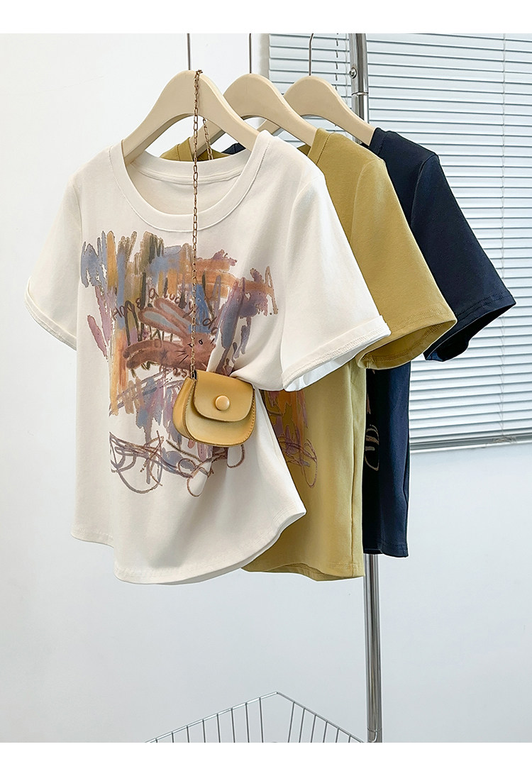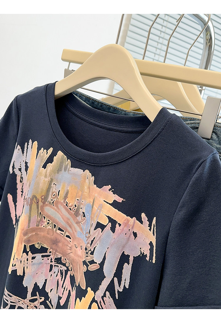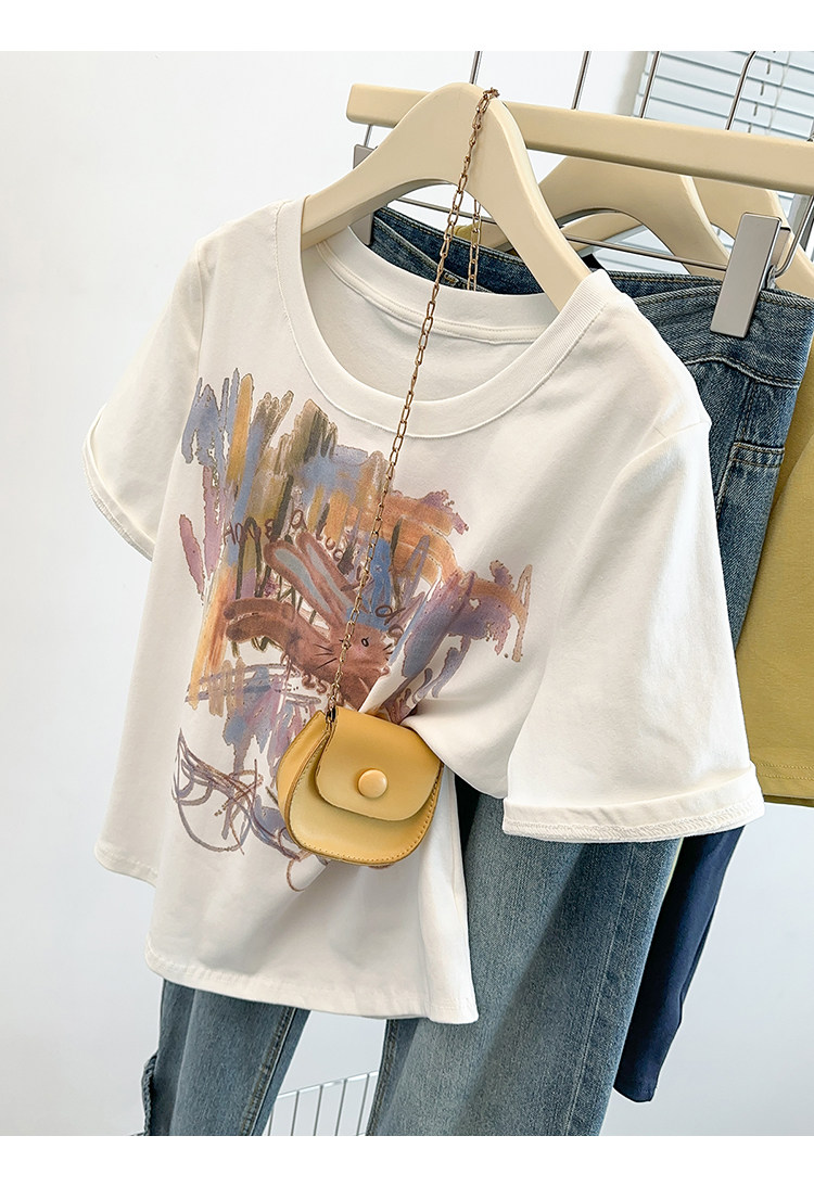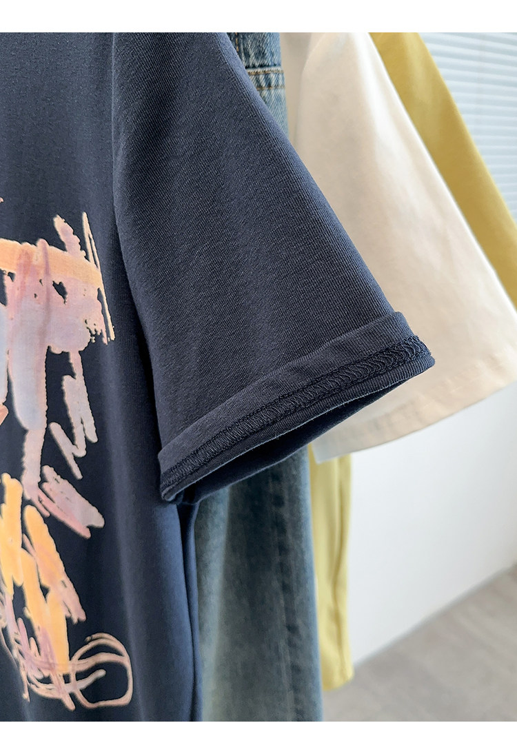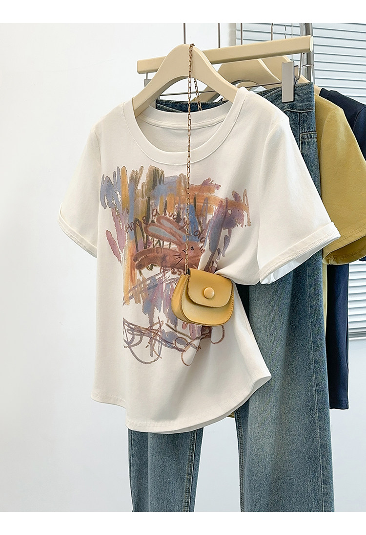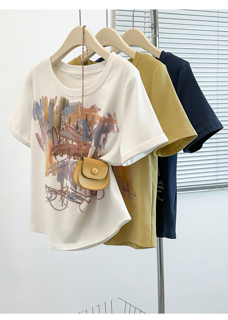 Qadınlar üçün Böyük Ölçülü Rəngli Qrafiti Qısa Qollu Futbolka, 2026 Yay Yeni Model, Yaltaq və Arıqladıcı, Boş Formalı, Dəbli Top