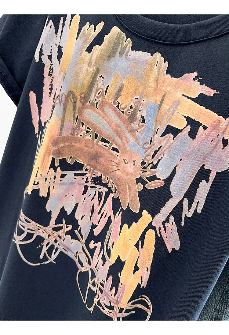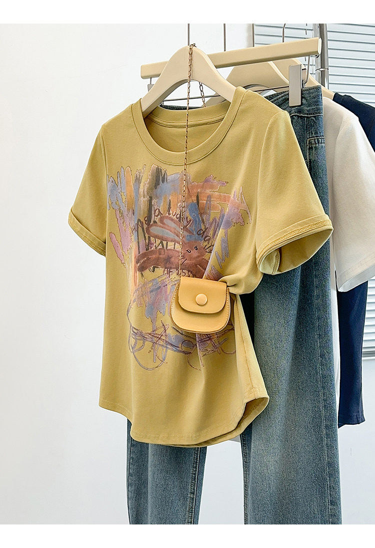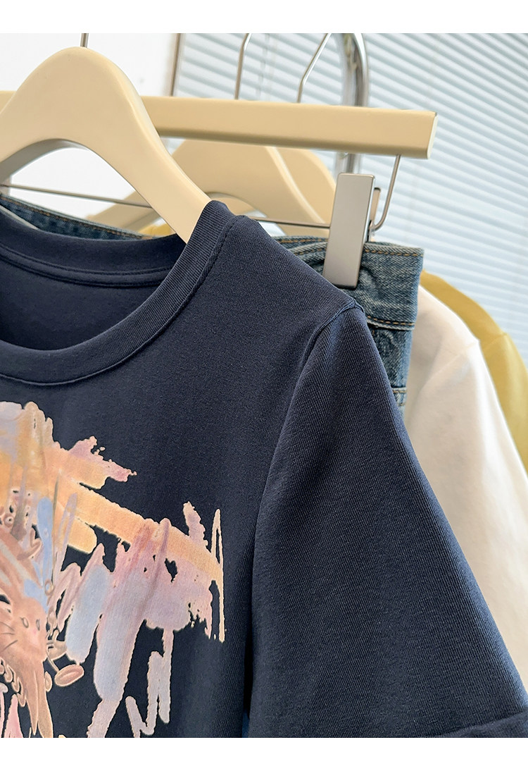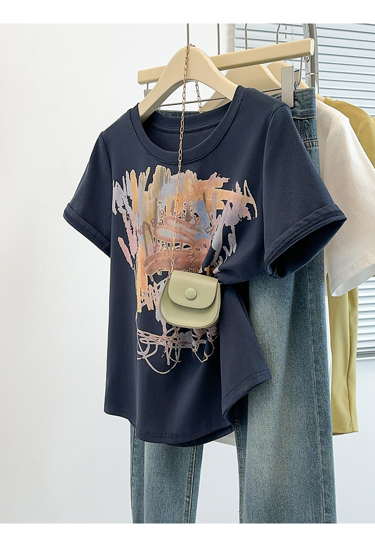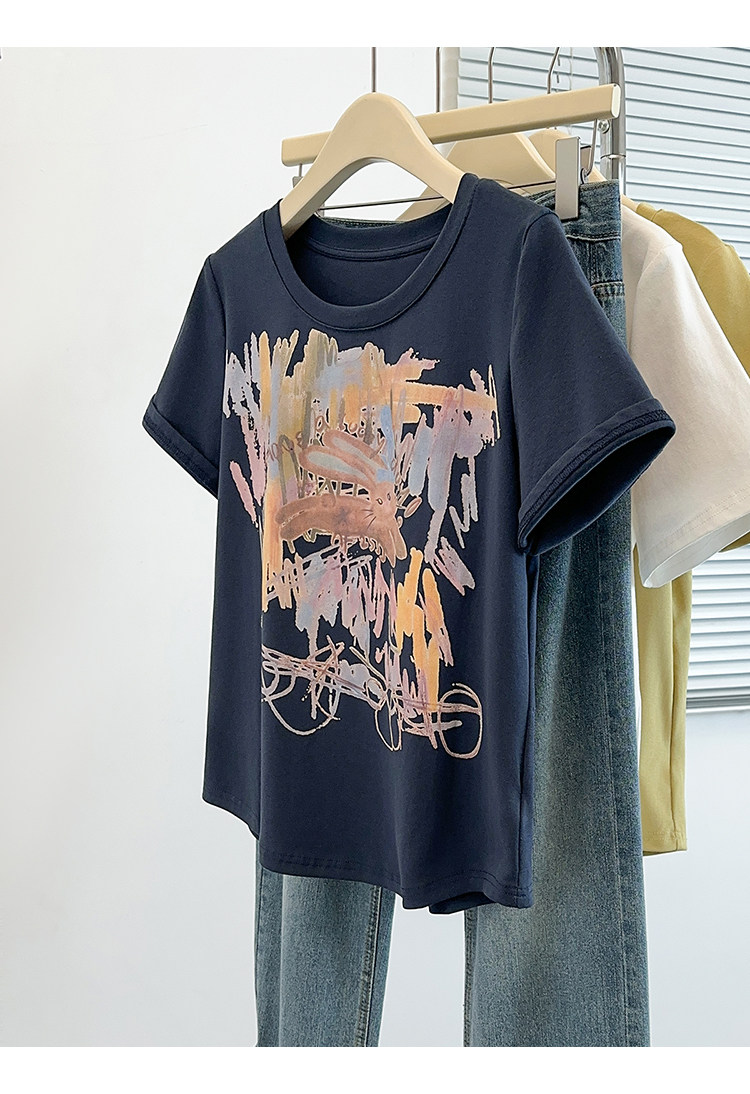 Qadınlar üçün Böyük Ölçülü Rəngli Qrafiti Qısa Qollu Futbolka, 2026 Yay Yeni Model, Yaltaq və Arıqladıcı, Boş Formalı, Dəbli Top