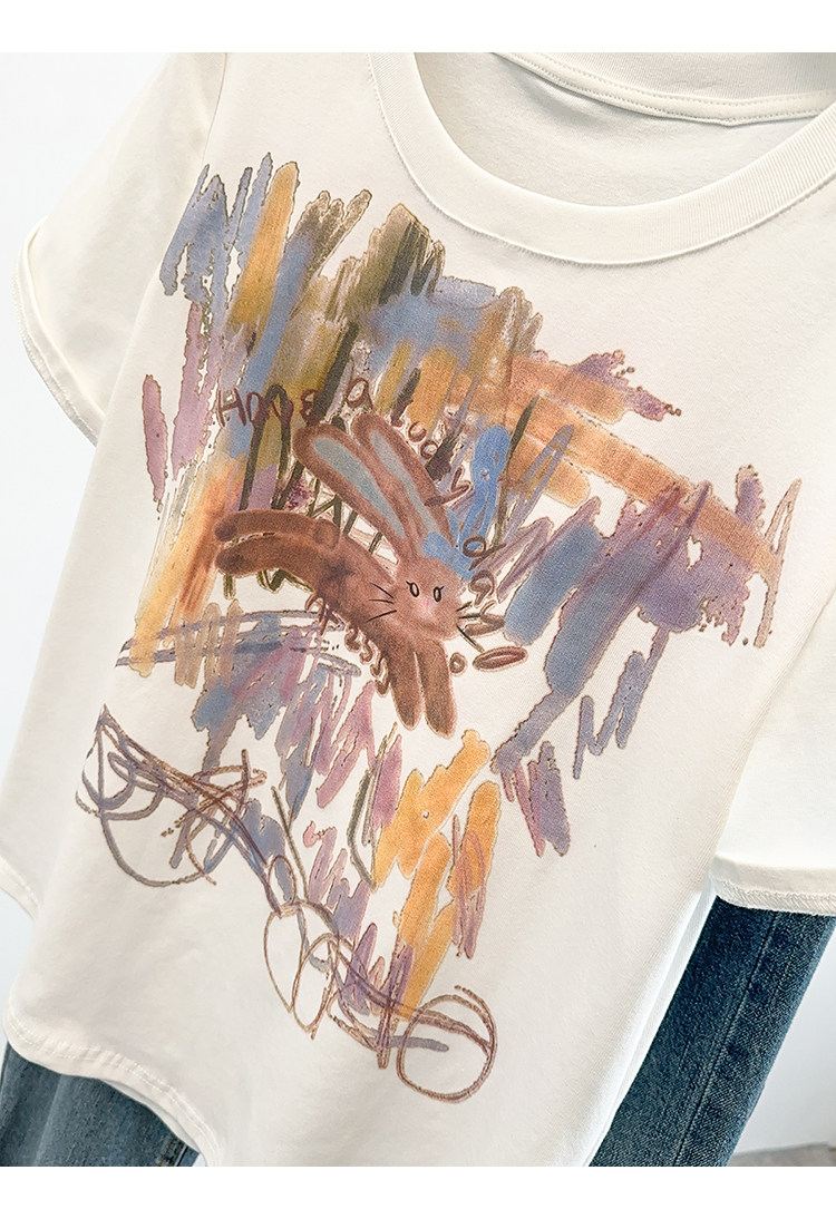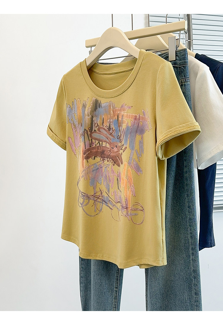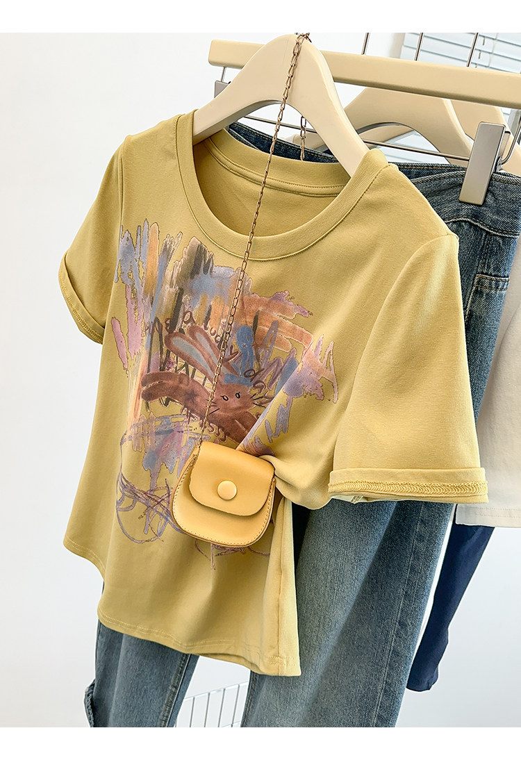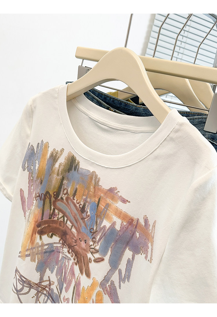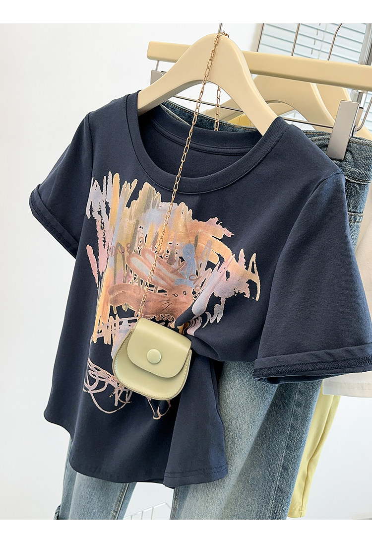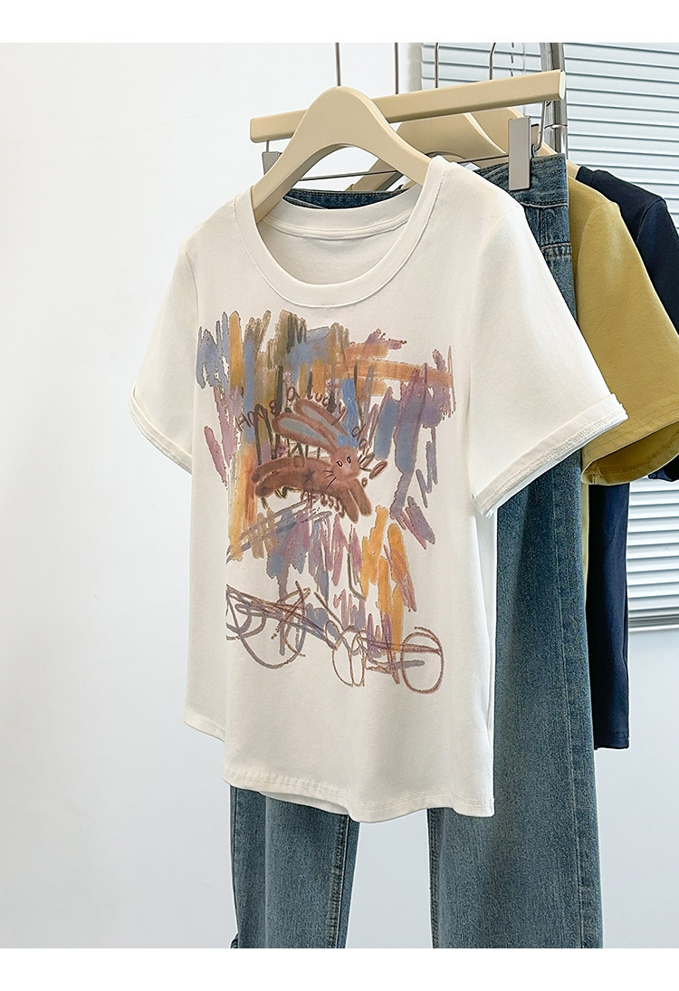Qadınlar üçün Böyük Ölçülü Rəngli Qrafiti Qısa Qollu Futbolka, 2026 Yay Yeni Model, Yaltaq və Arıqladıcı, Boş Formalı, Dəbli Top