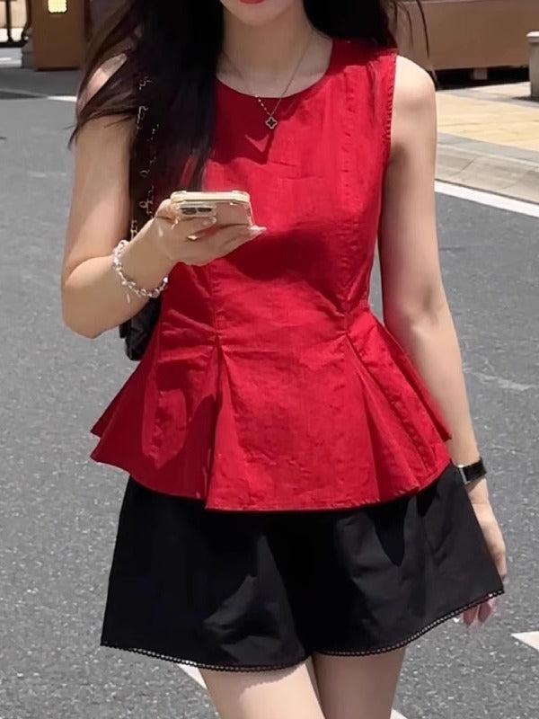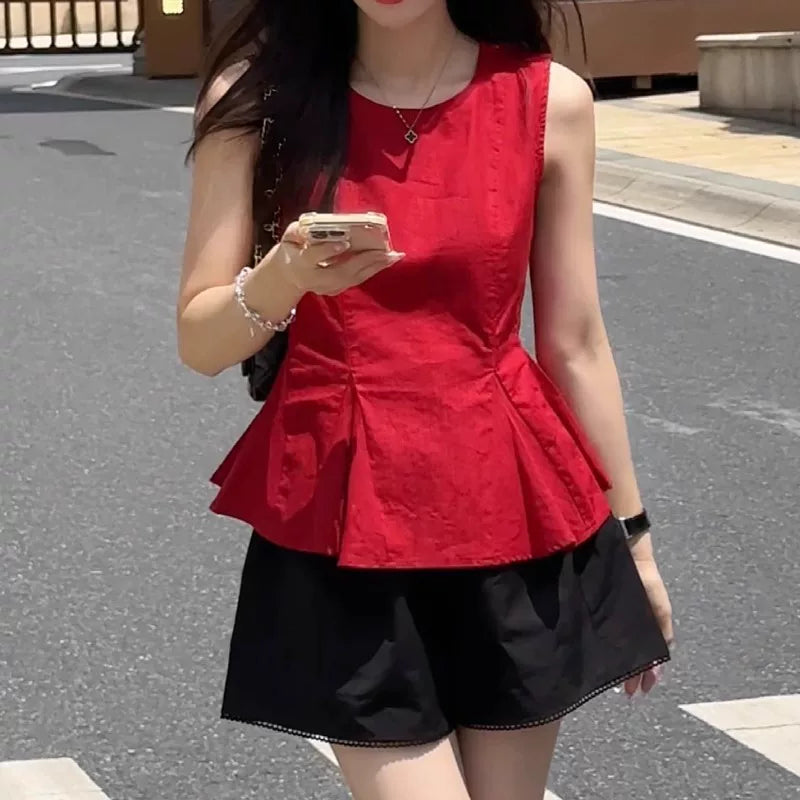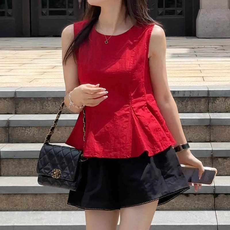 Qadınlar üçün böyük ölçülü, şık qolsuz jilet köynək, yeni yay stili, Koreya dəbi, boş forma, gözəl və arıqladıcı.