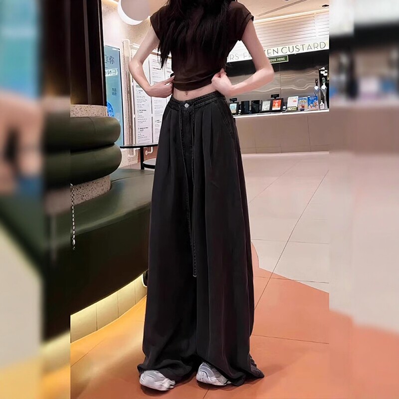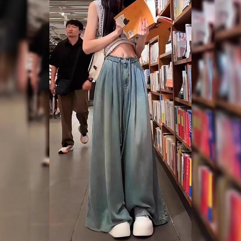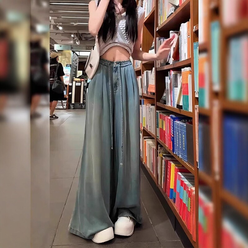 Qadınlar üçün böyük ölçülü Tencel denim cins şalvar, yay üslubunda, nazik, enli ayaqlı, yüksək belli, boş, çoxfunksiyalı, gündəlik şalvar.