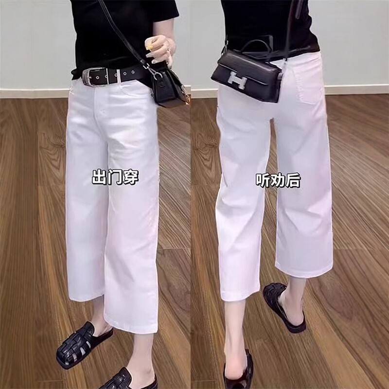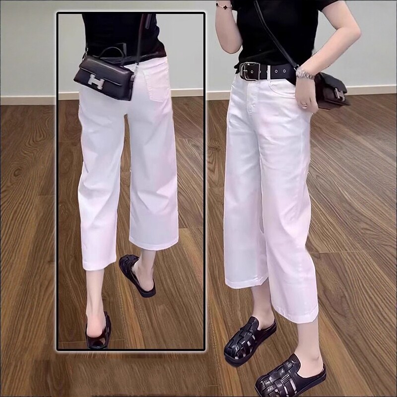 Qadınlar üçün böyük ölçülü yay boyu nazik, ağ, əyri, düz ayaqlı qısa cins şalvar, yüksək belli, geniş formalı, arıqladıcı şalvar.