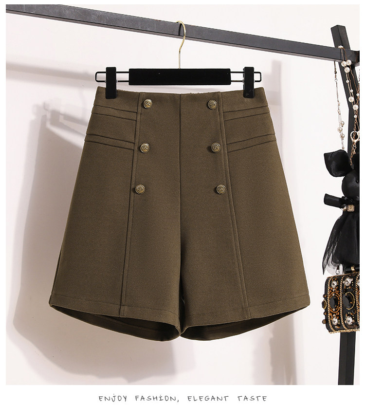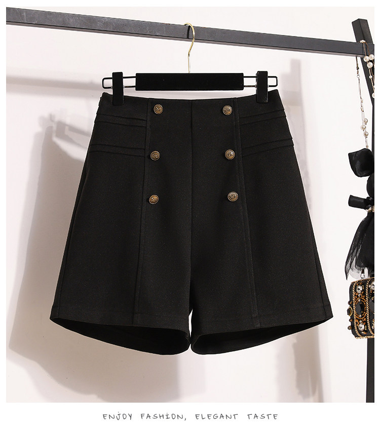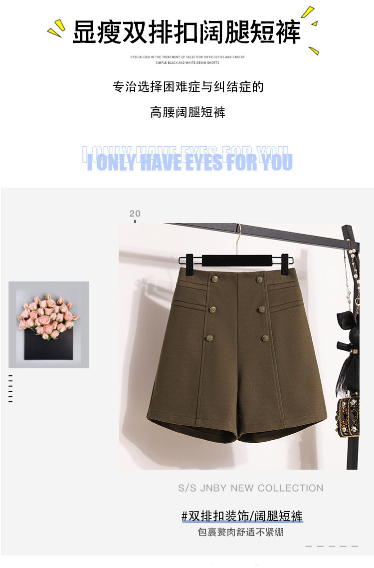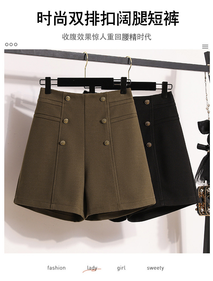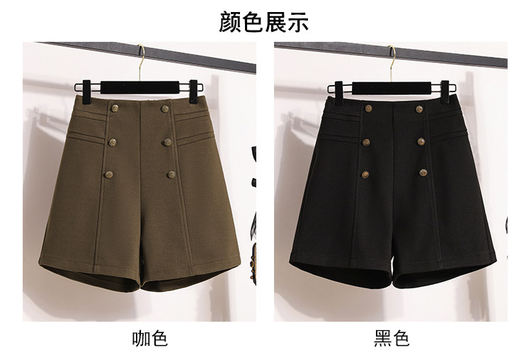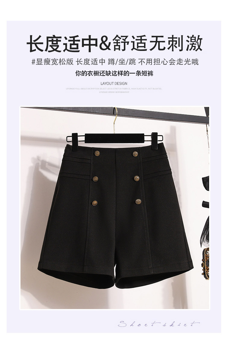 Women's oversized, high-waisted wool shorts, perfect for fall wear, stylish design, slimming, double-breasted, A-line wide-leg bootcut pants.