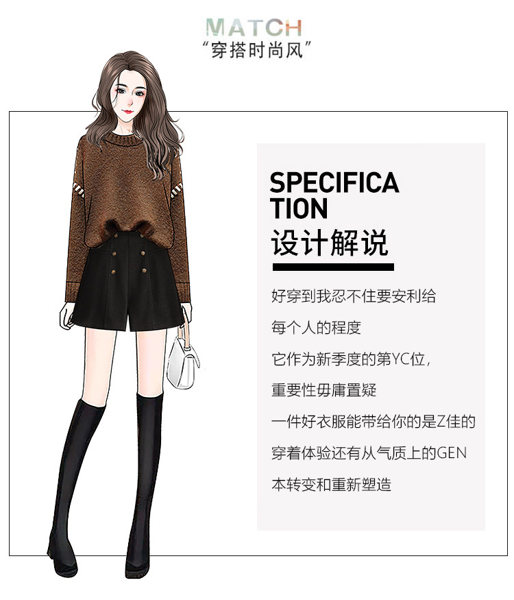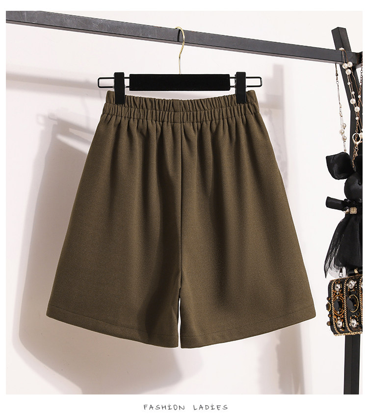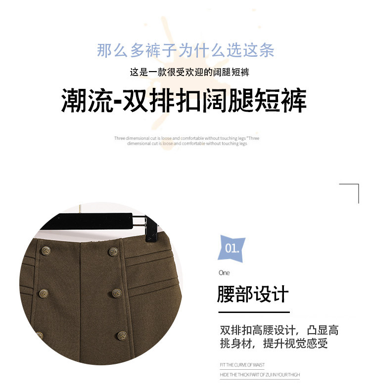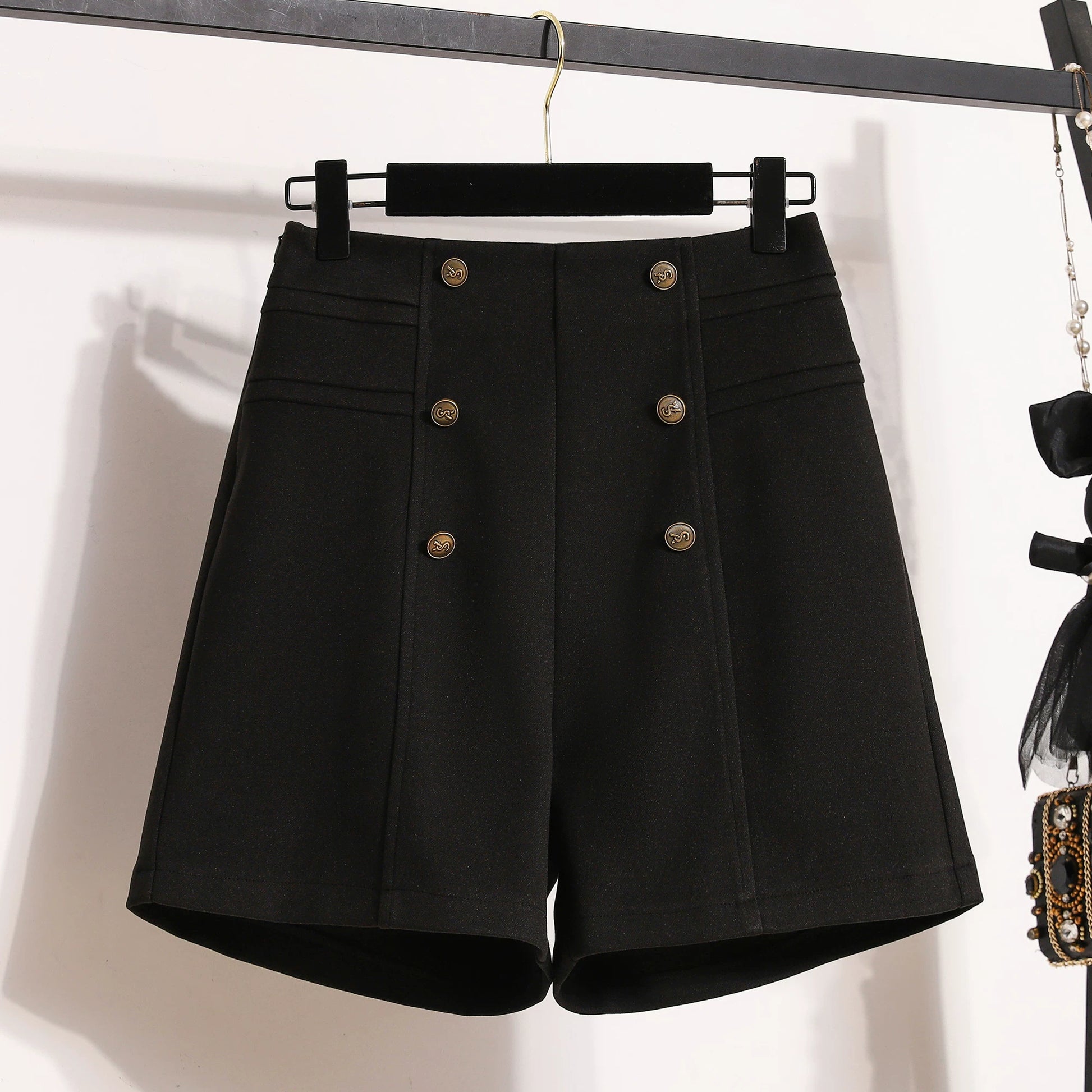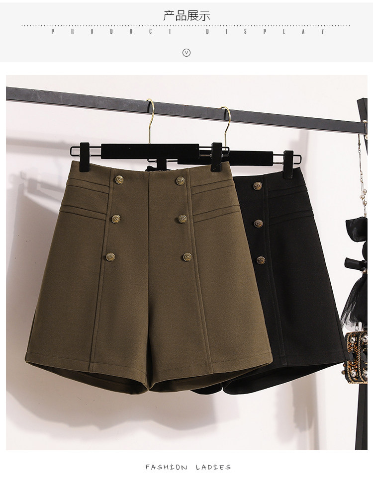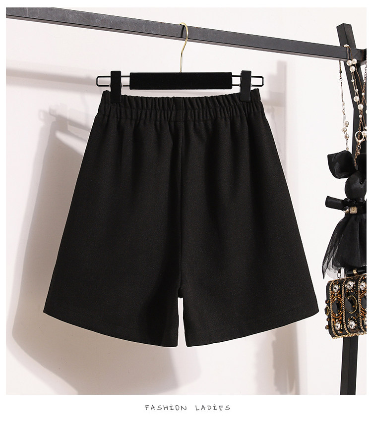 Women's oversized, high-waisted wool shorts, perfect for fall wear, stylish design, slimming, double-breasted, A-line wide-leg bootcut pants.