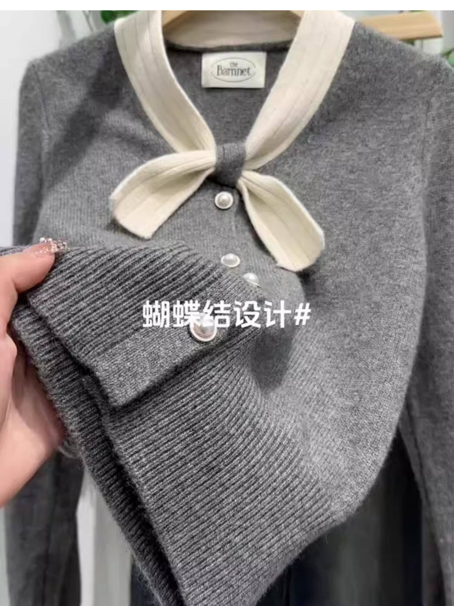 Women's gray V-neck knit sweater, new fashion for the fall/winter season 2025, luxurious and elegant, banded, multifunctional and elegant long-sleeved sweater.