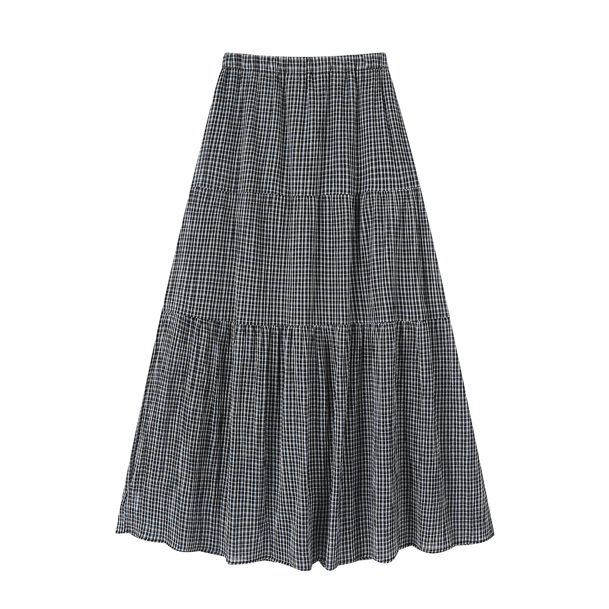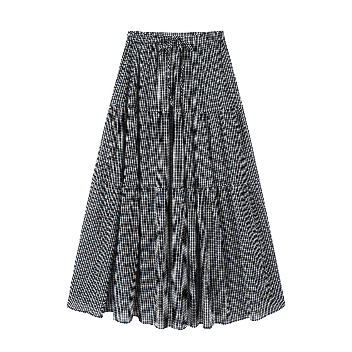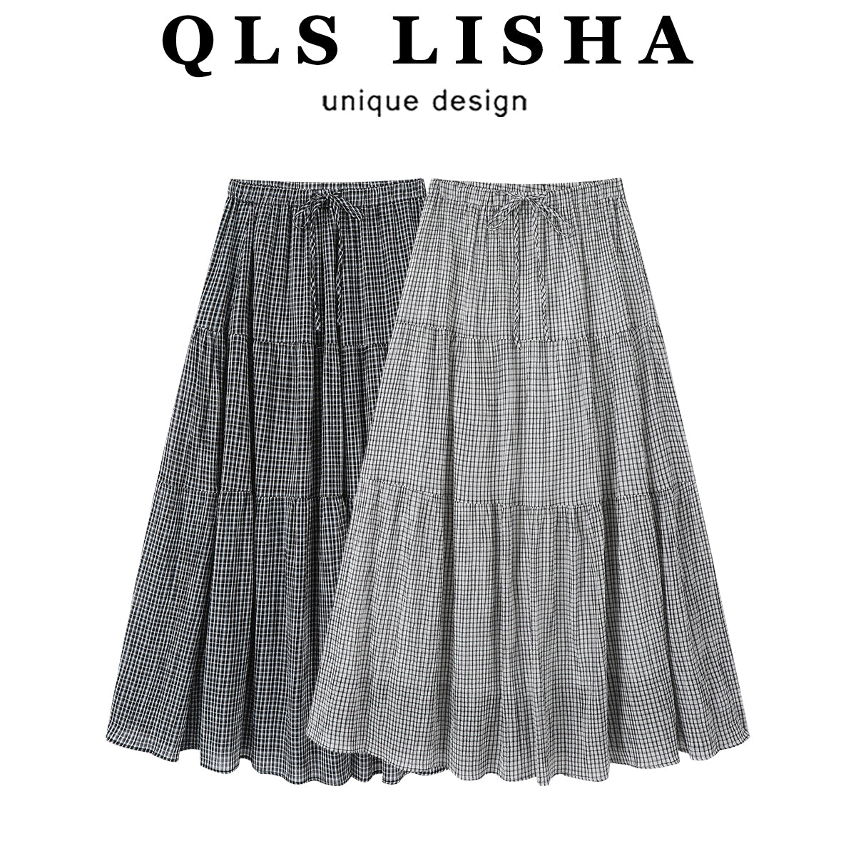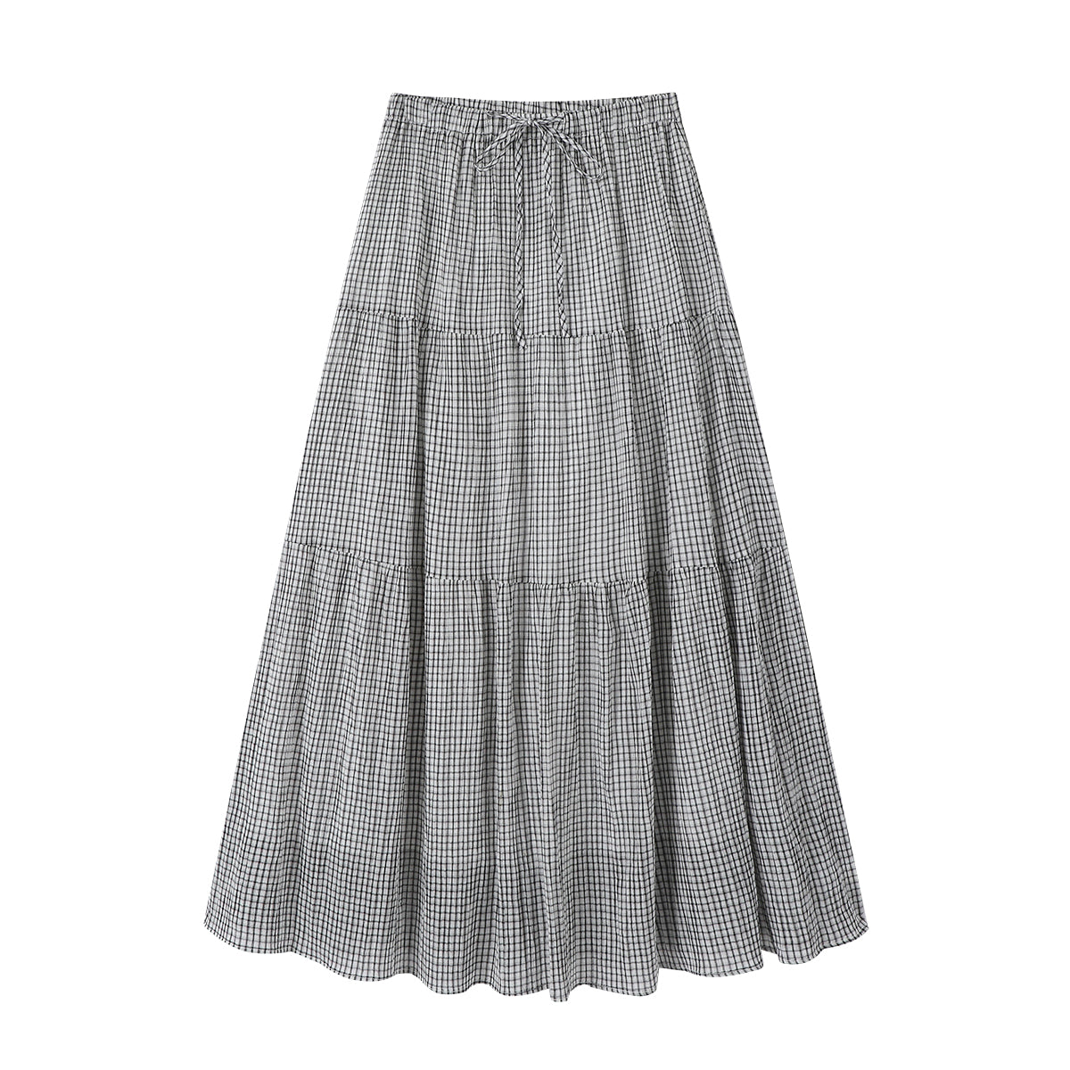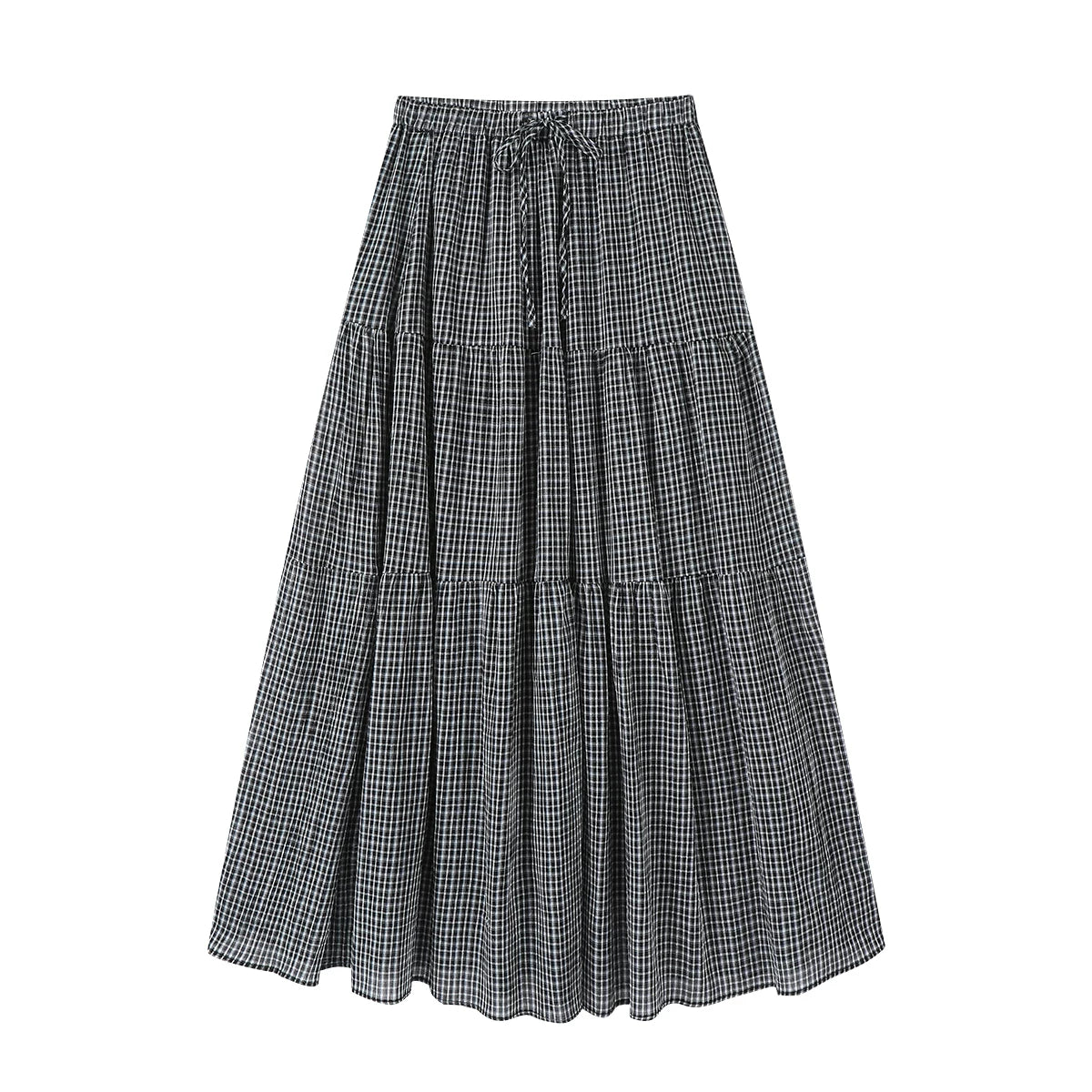Qadınlar üçün Cholisa dama-dama midi ətək, yeni 2025 yayı, super şirin A-xətt ətək, Koreya üslubunda, yüksək bel, arıqladıcı midi ətək.