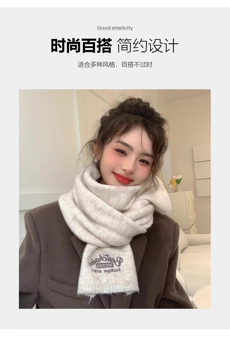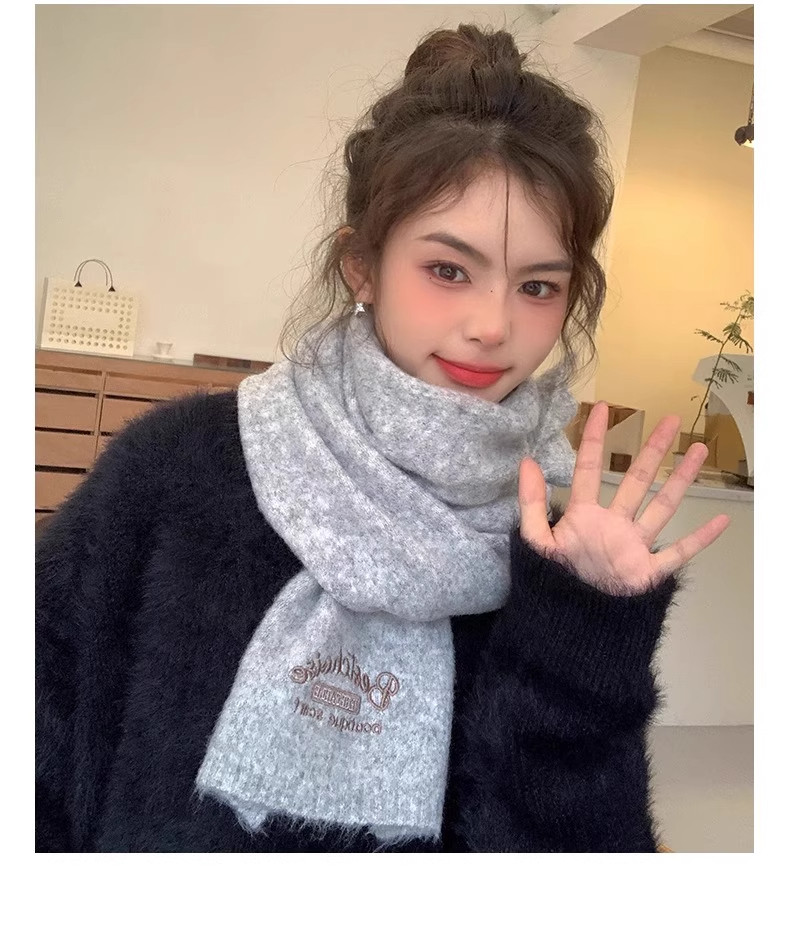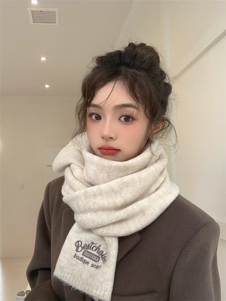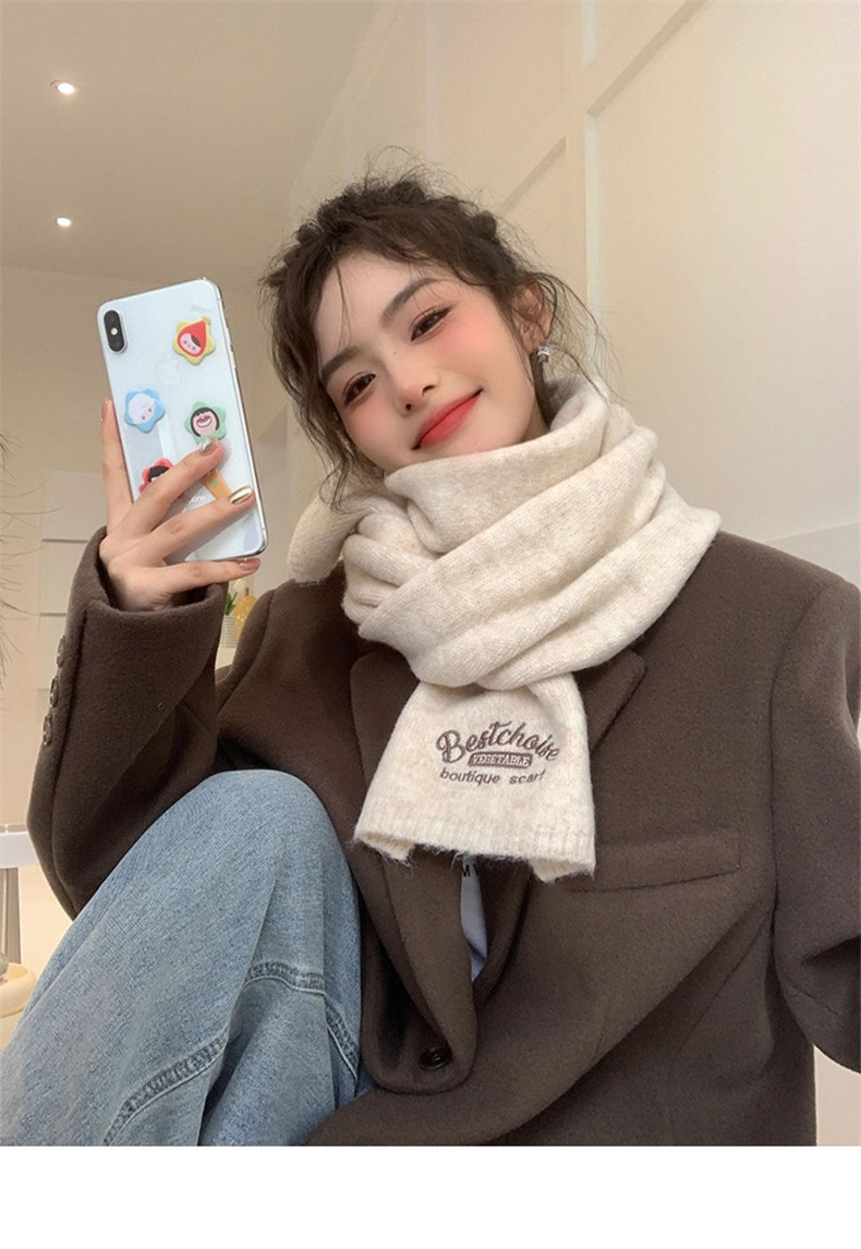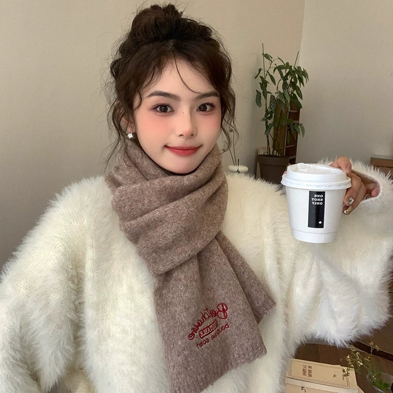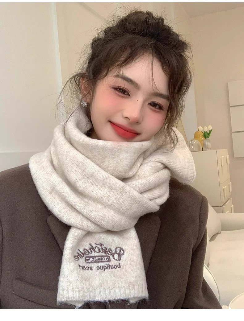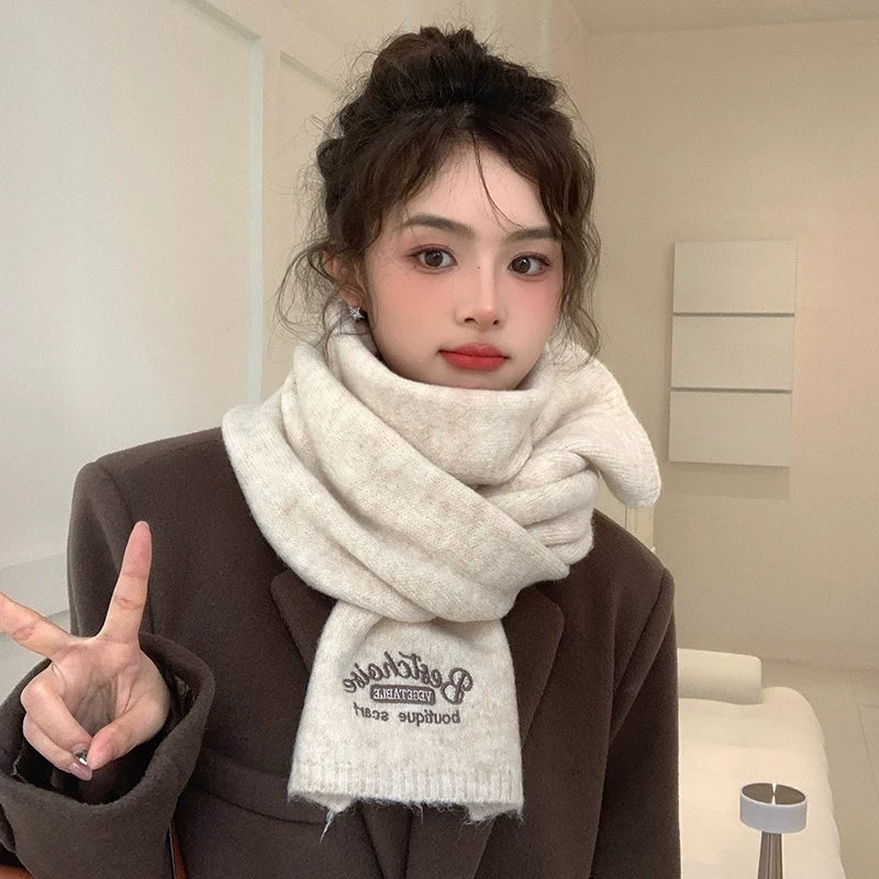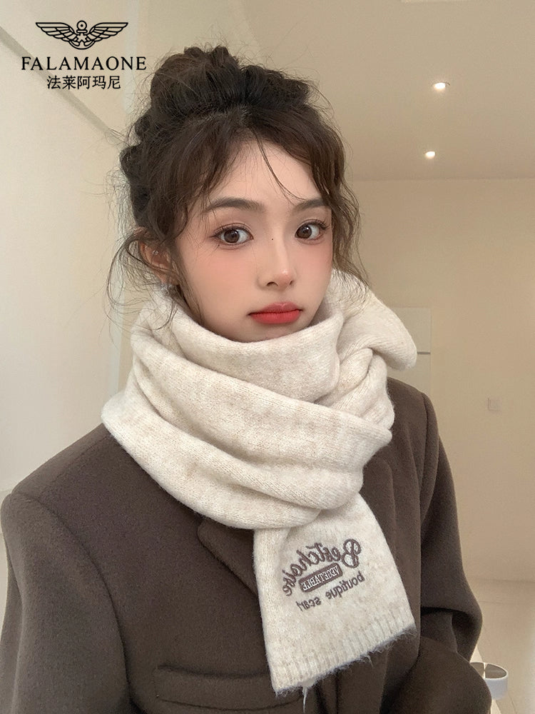 Qadınlar üçün Fala Armani ağ yumşaq yun şarf, qış Koreya üslubunda toxunmuş yun şarf, yüksək keyfiyyətli və çoxfunksiyalı.