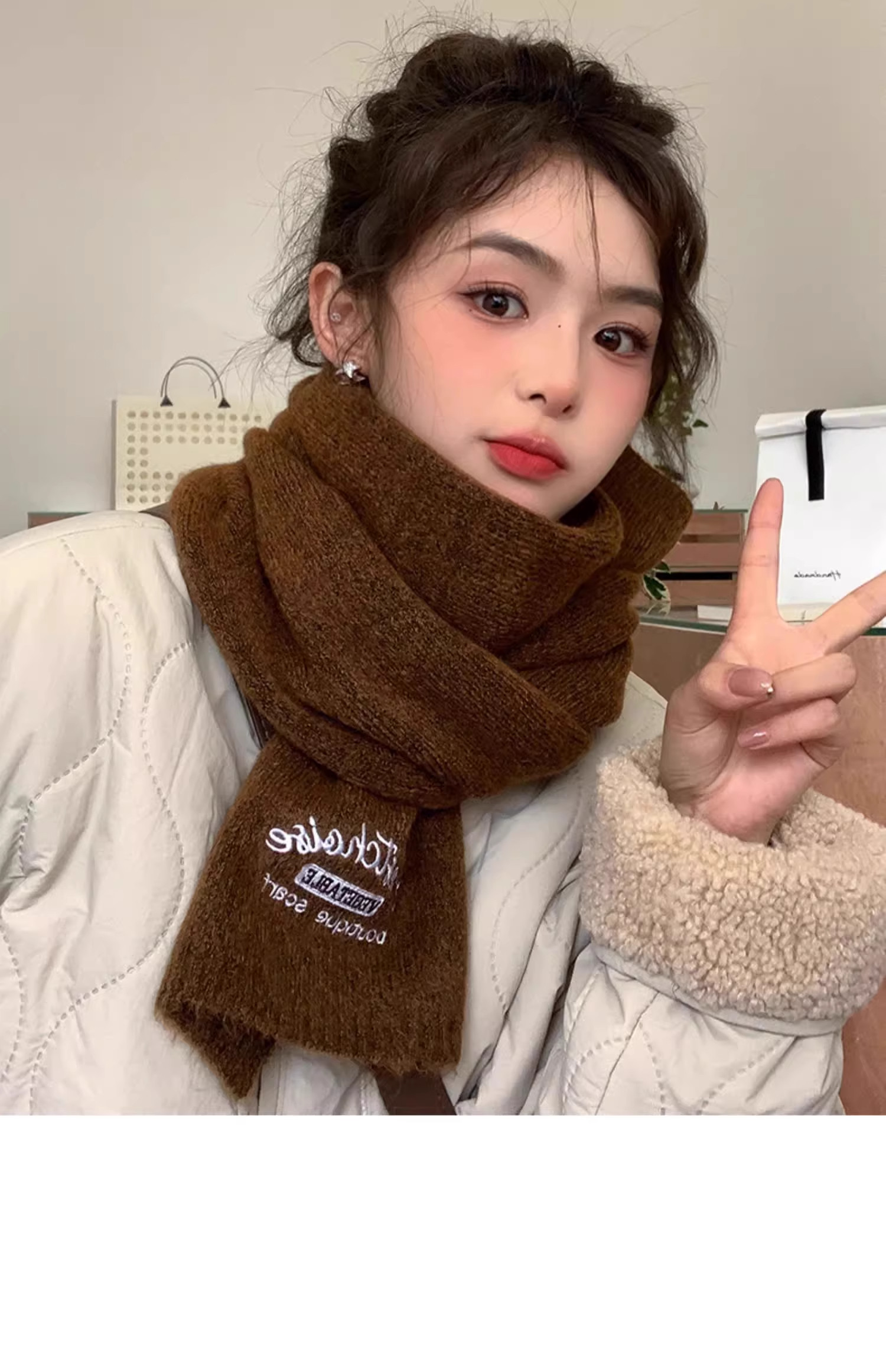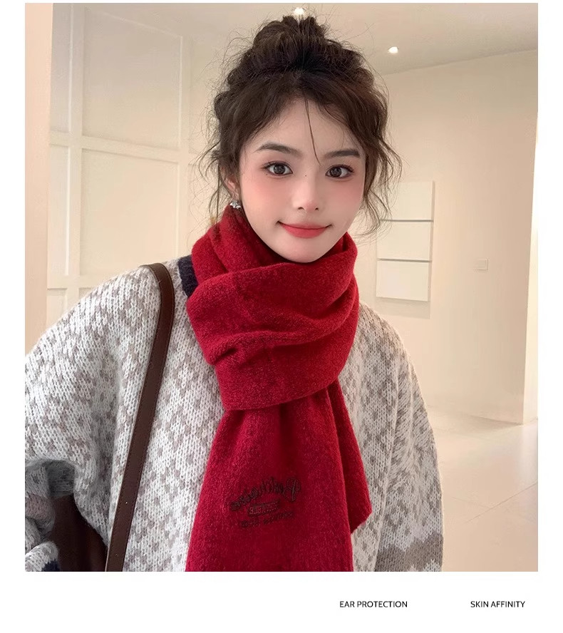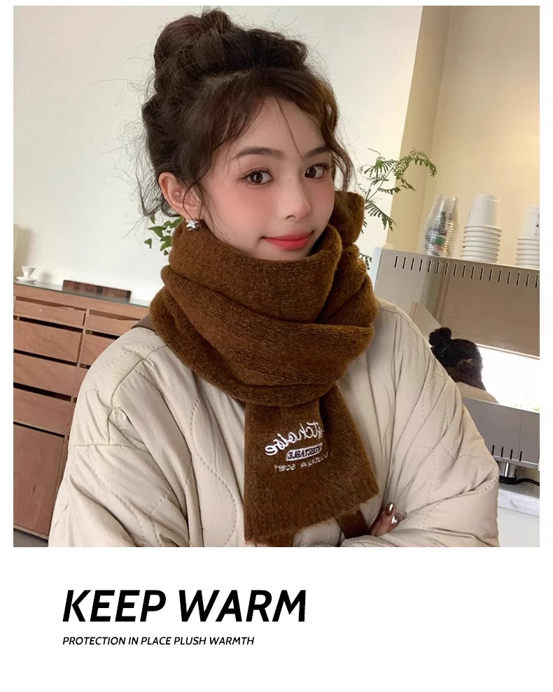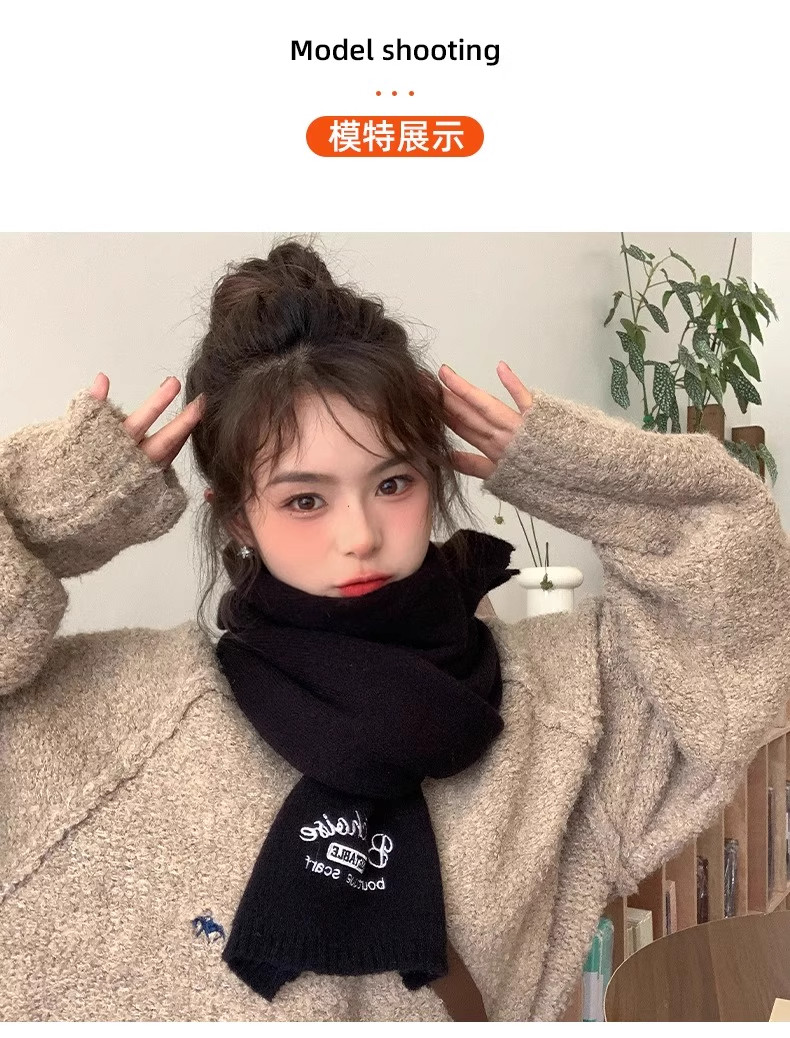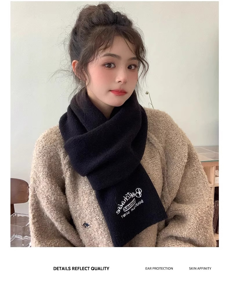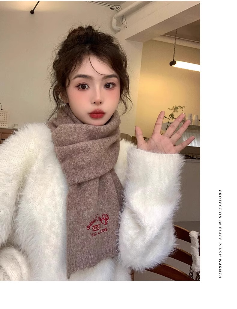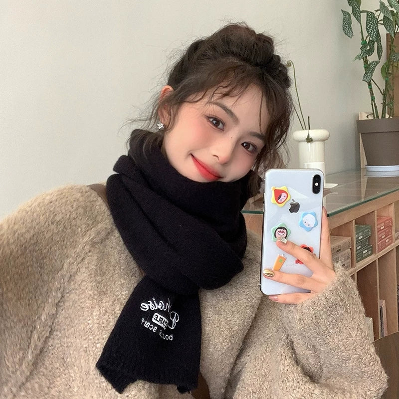 Qadınlar üçün Fala Armani ağ yumşaq yun şarf, qış Koreya üslubunda toxunmuş yun şarf, yüksək keyfiyyətli və çoxfunksiyalı.