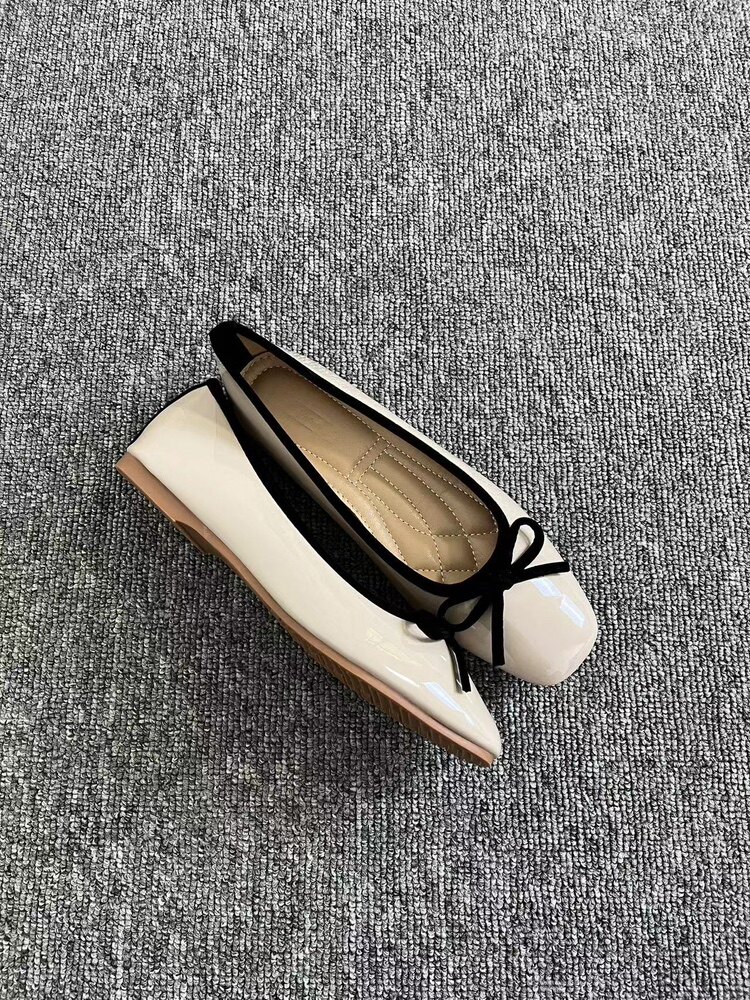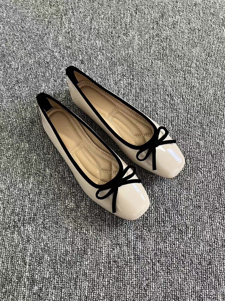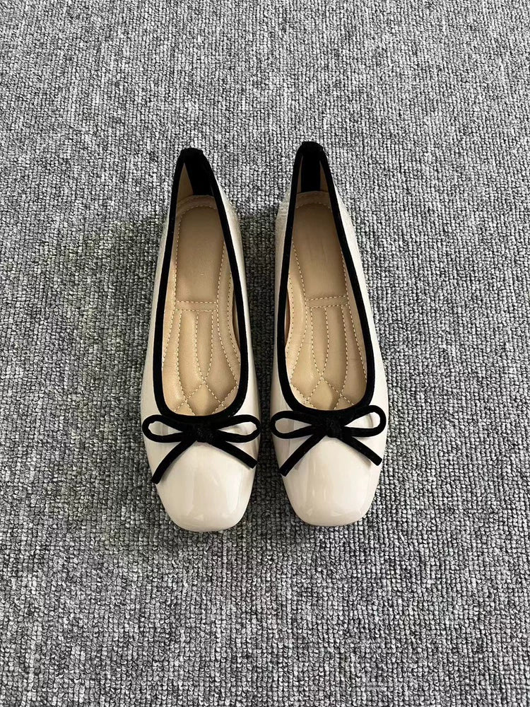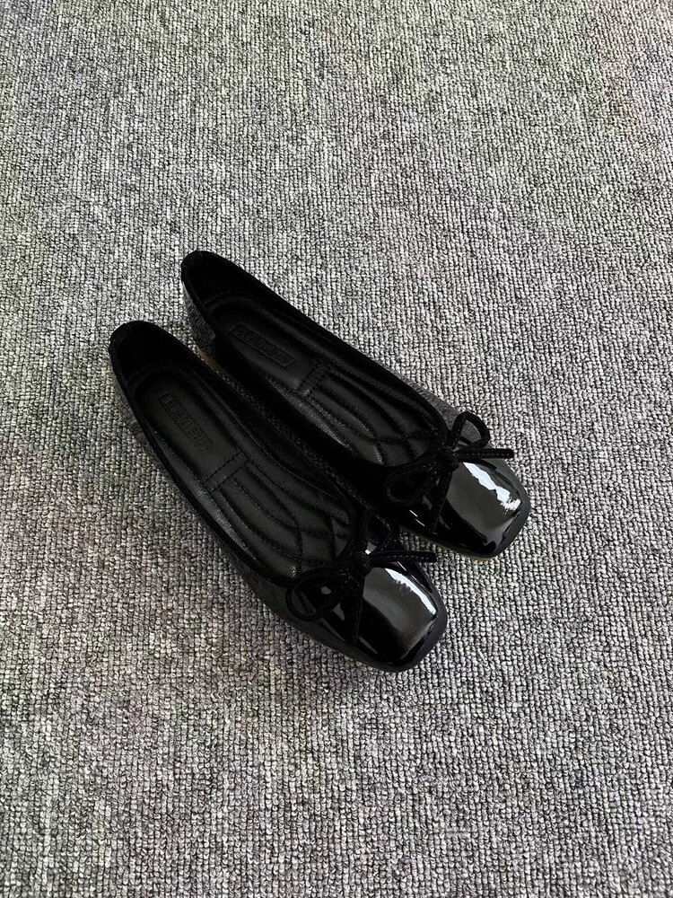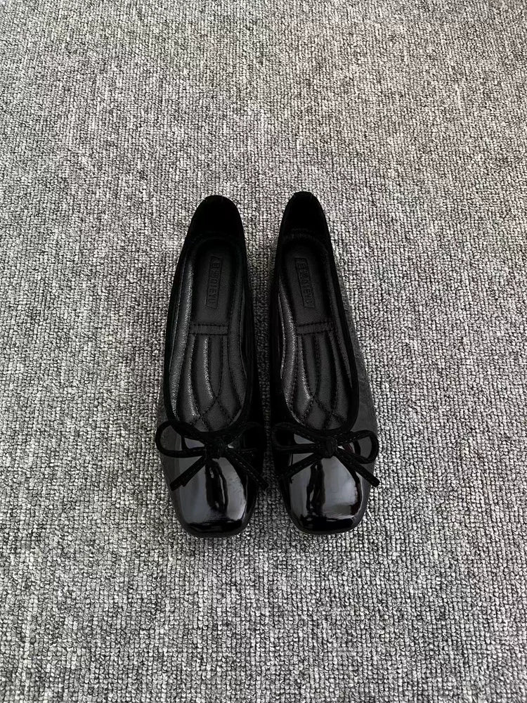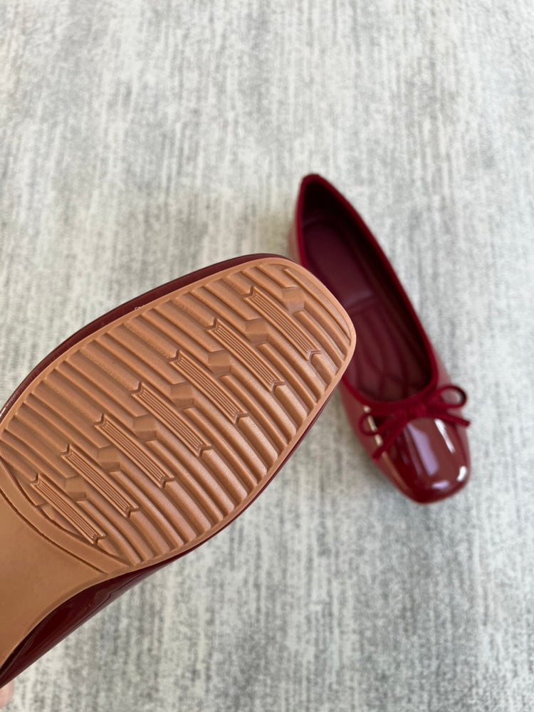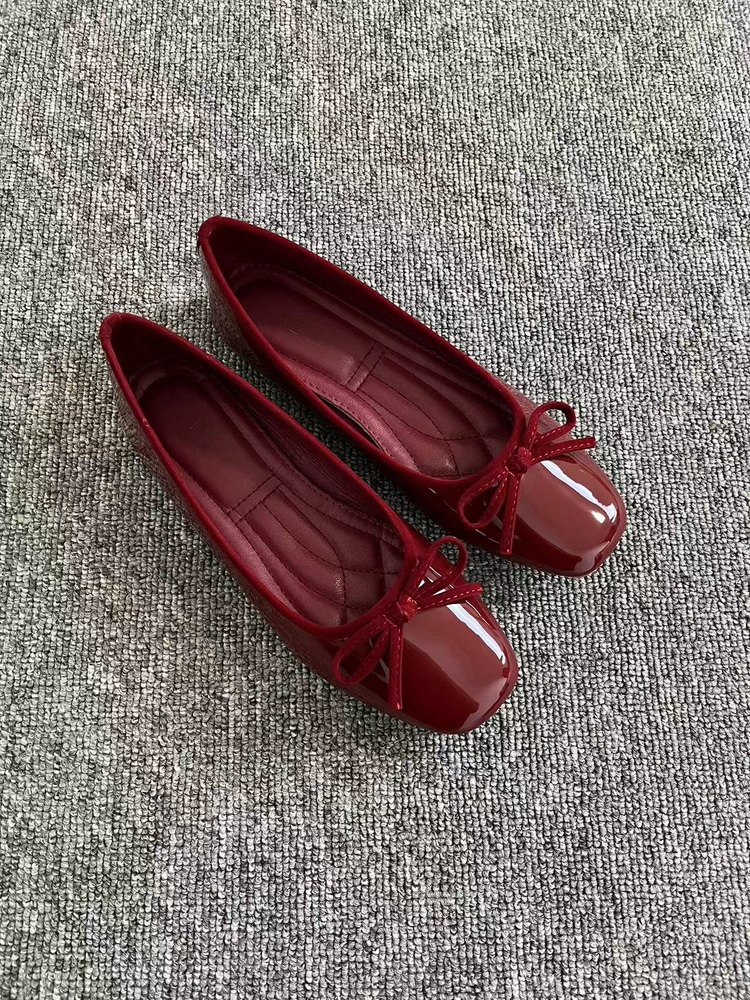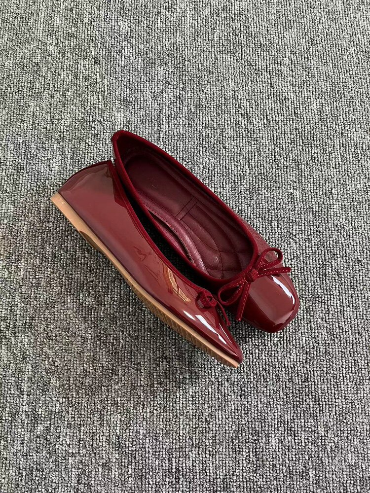 Women's French retro red ballet flats, soft leather, tie, low-cut, granny shoes