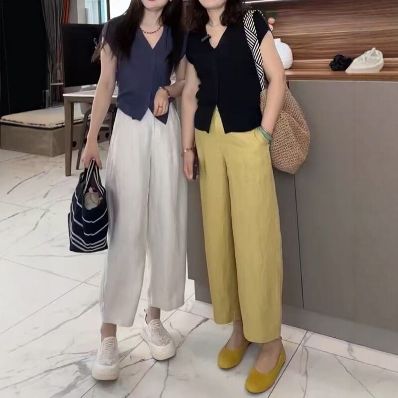 Qadınlar üçün nazik düz ayaqlı şar şalvarlar, 2026-cı il yay böyük ölçülü şalvarlar, armud formalı arıqladıcı qısa şalvarlar, boş hərəm şalvarları