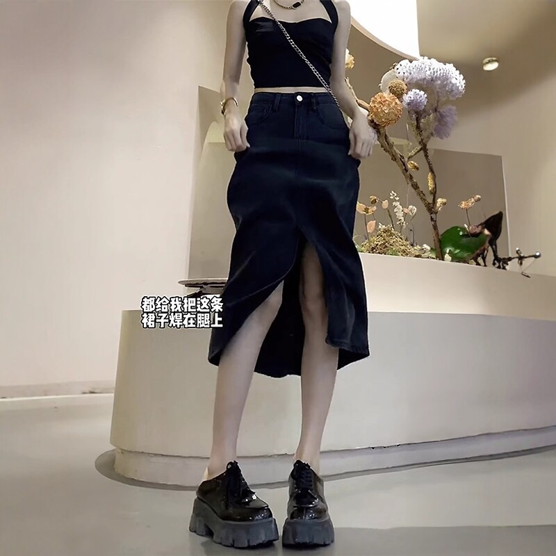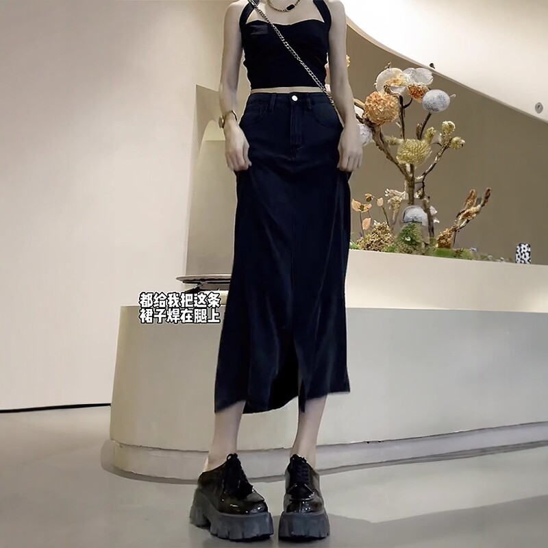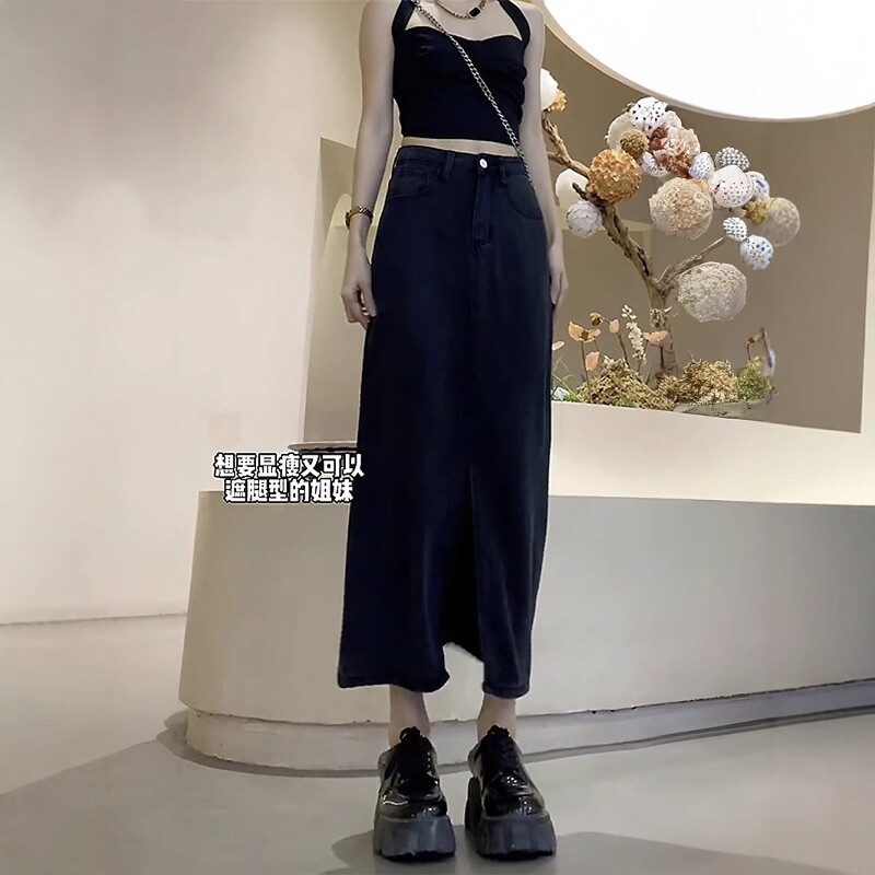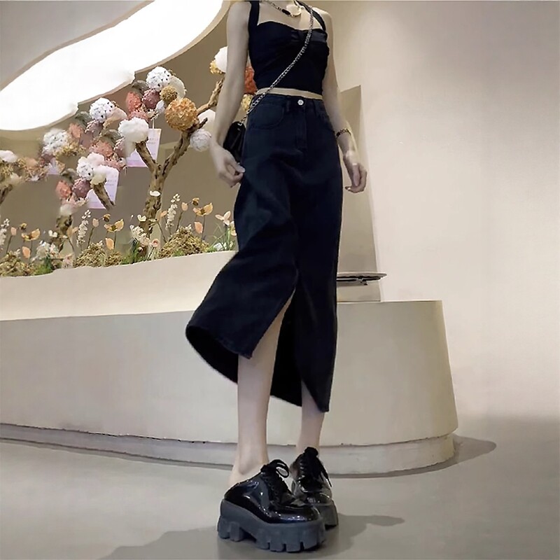 Qadınlar üçün Qara Denim Midi Ətək, 2026 Yeni Yay Modeli, Nazik, Arıqladıcı, Böyük Ölçülü, Dolğun, Boş A-xəttli, Orta Uzunluqlu Ətək