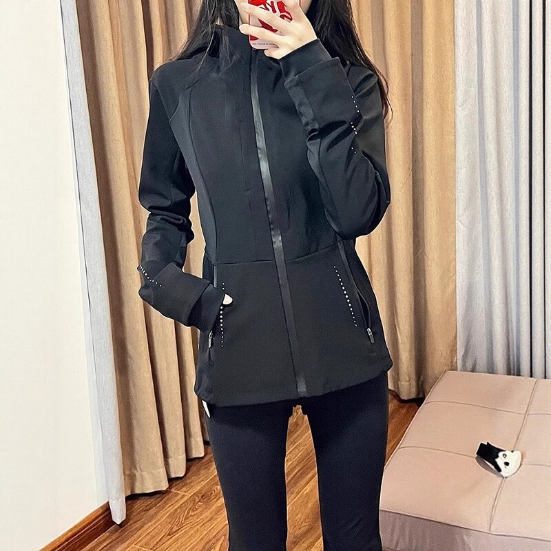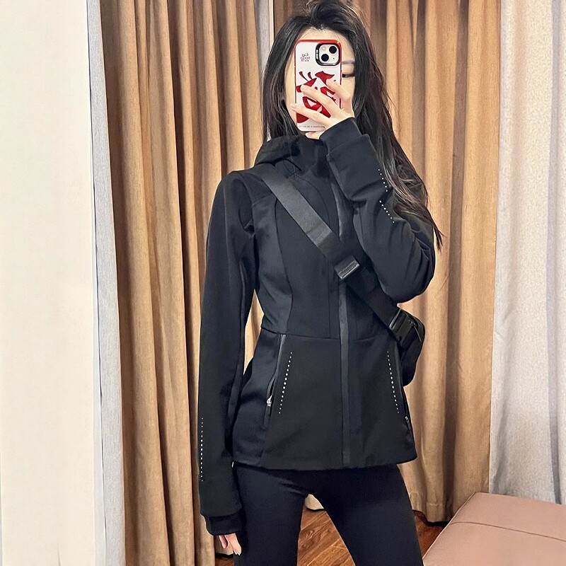 Qadınlar üçün Qara İncə Fit Softshell Windbreaker Gödəkçəsi, 2026 Yeni Yaz Modeli, Böyük Ölçülü, Arıqladıcı Açıq Hava İdman Gödəkçəsi