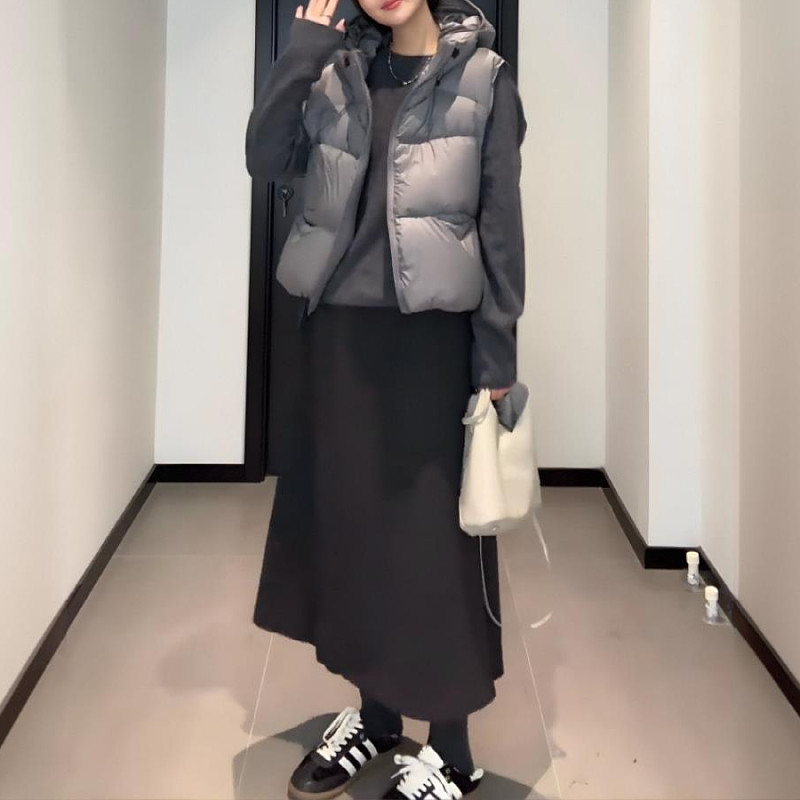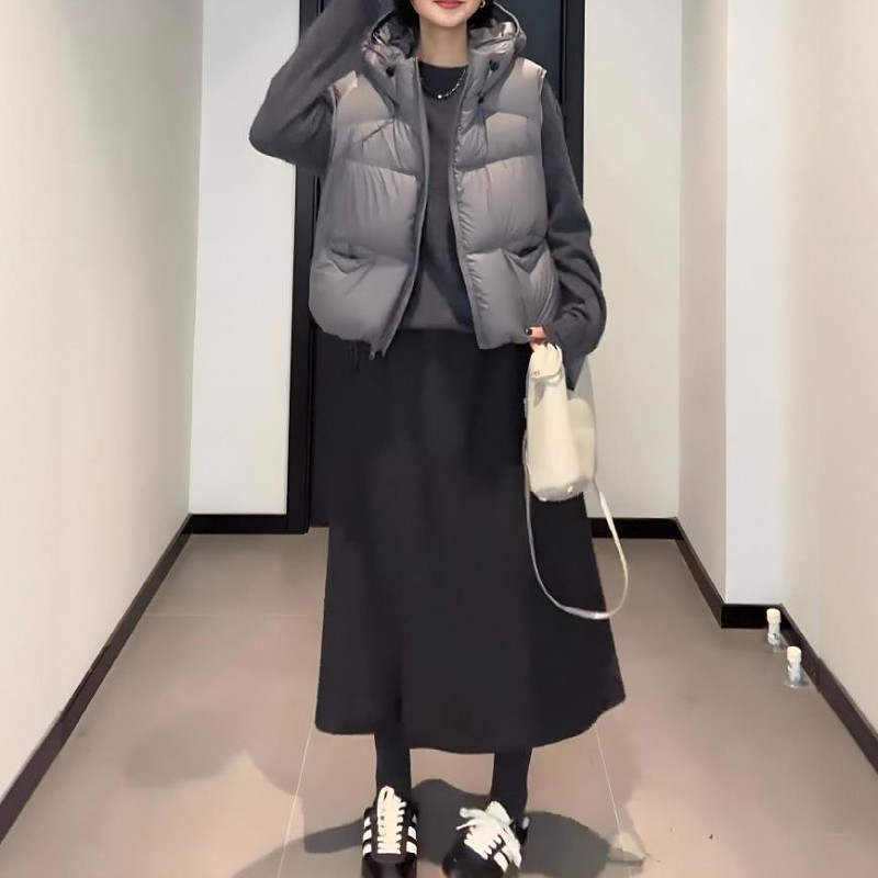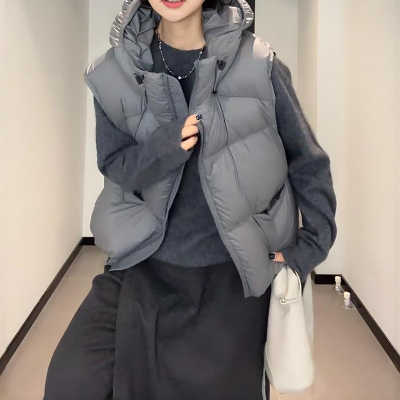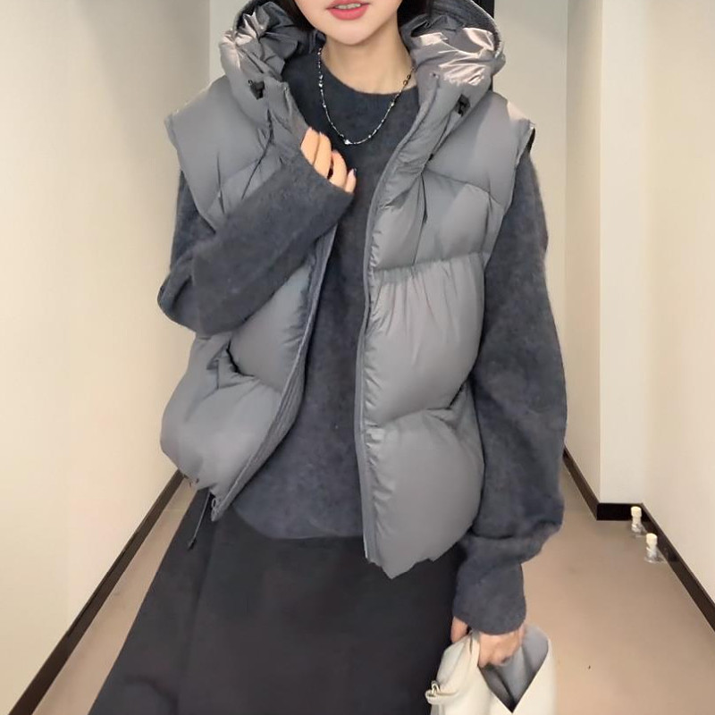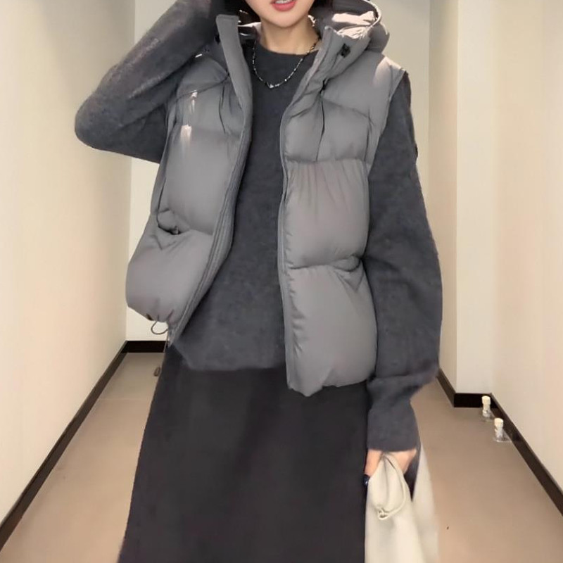 Qadınlar üçün qısa kapüşonlu pambıq jilet, Payız/Qış 2026, Böyük ölçü, Koreya üslubunda, Boş forma, Yüksək səviyyəli hiss, Qolsuz gödəkçə/çiyin gödəkçəsi