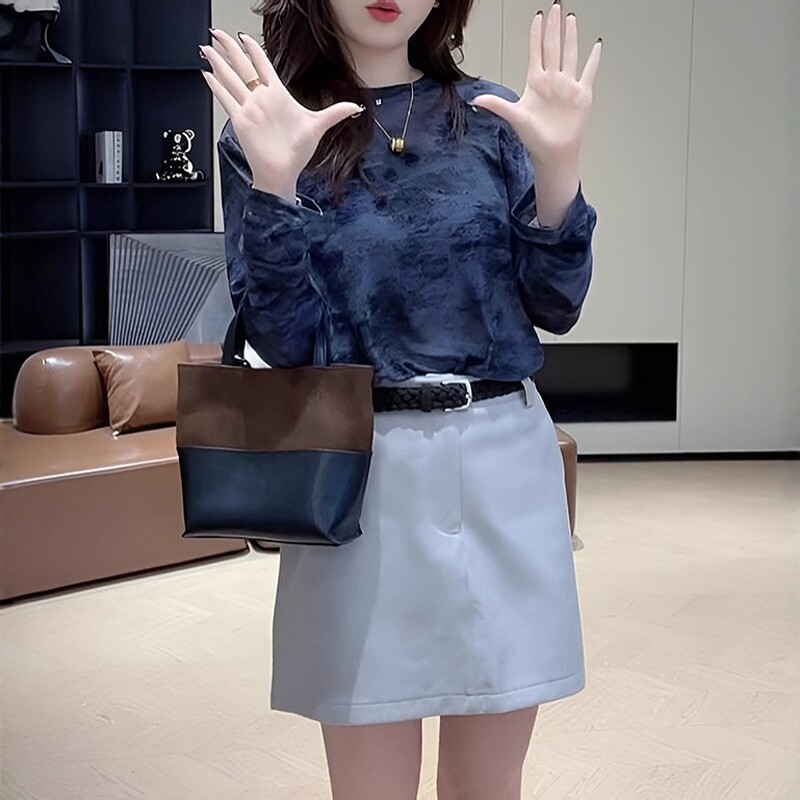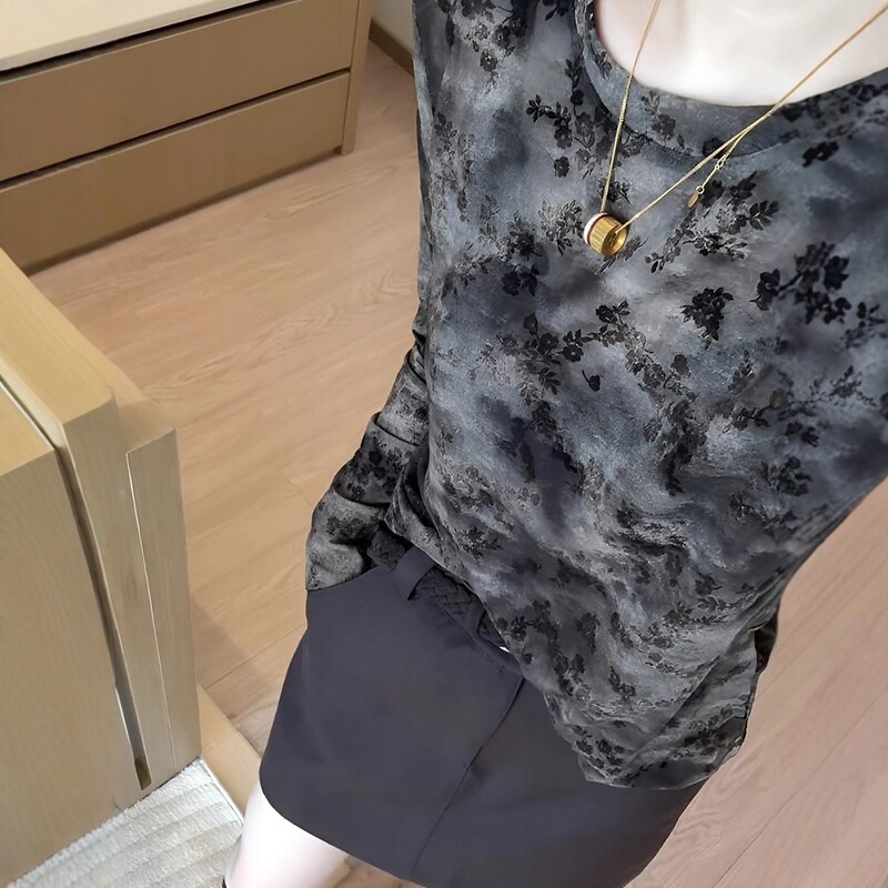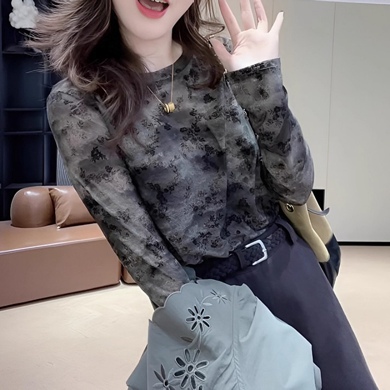 Qadınlar üçün retro tay-boya naxışlı uzunqol əsas qatlı futbolka, erkən yaz, böyük ölçüdə, arıqladıcı, şık, unikal və incə top.