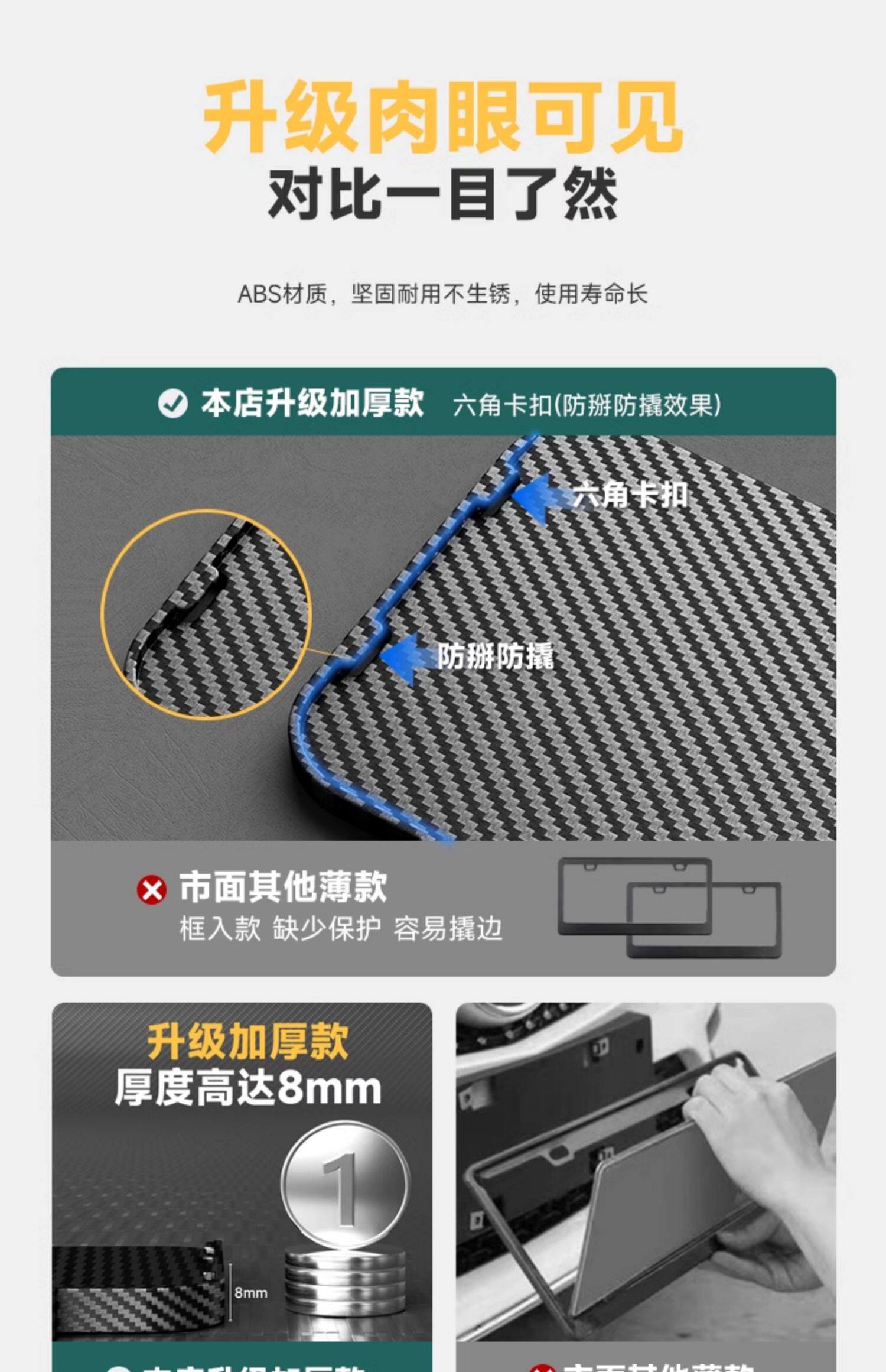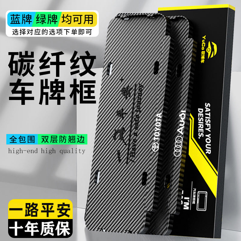 | Thickened license plate frame, new energy green license plate frame, carbon fiber car license plate frame protective frame, blue license plate frame