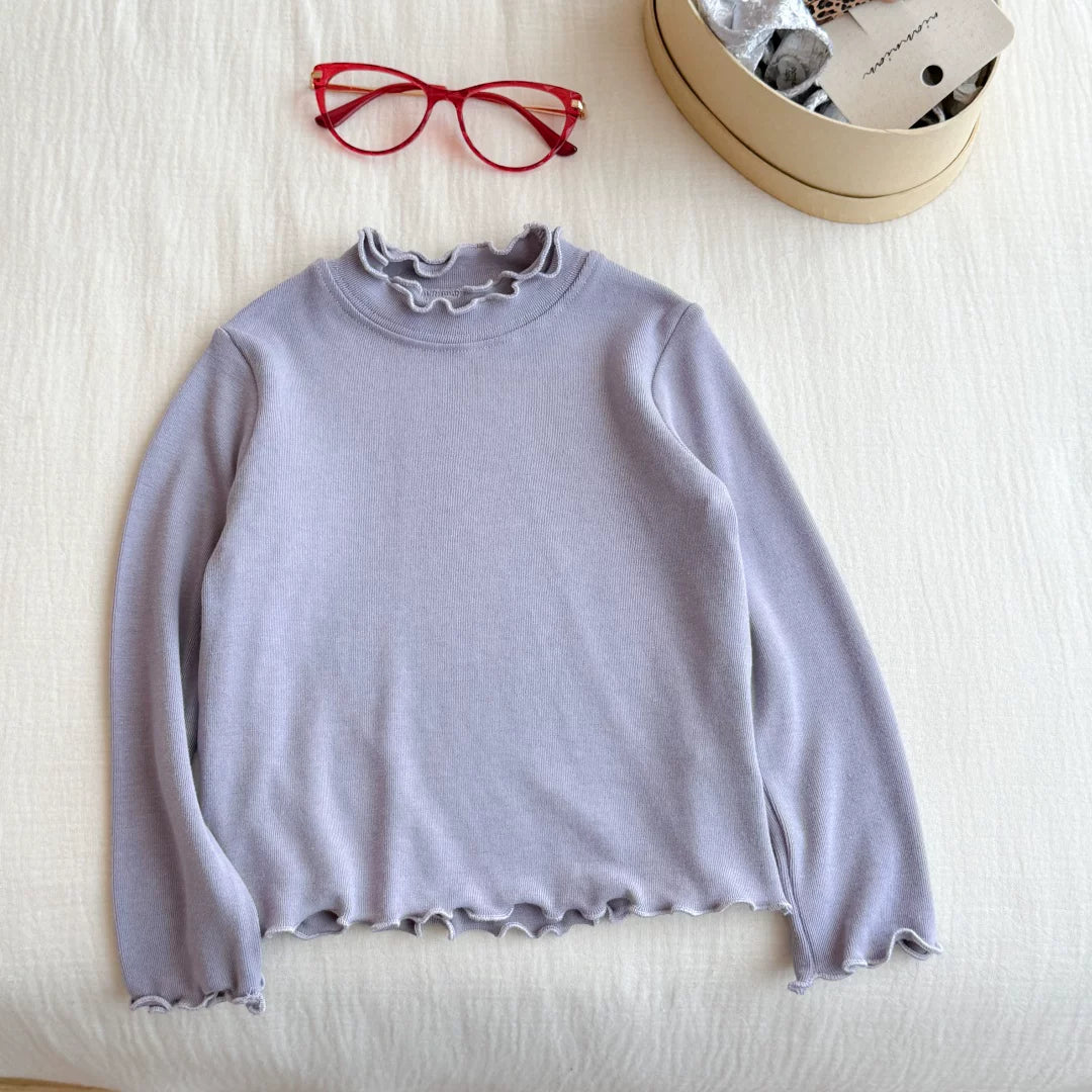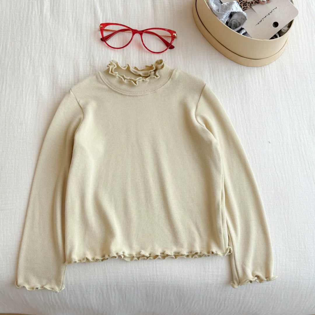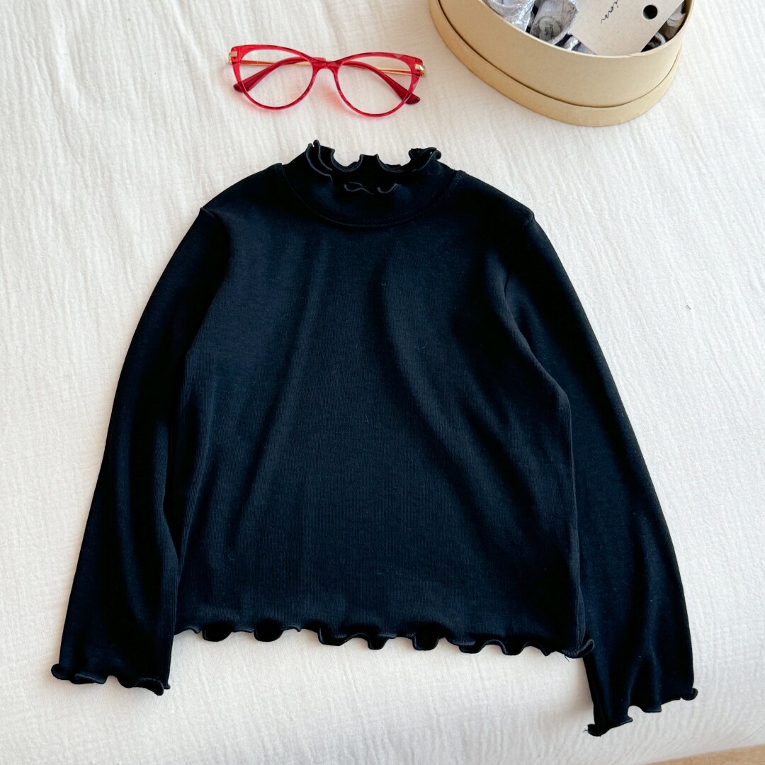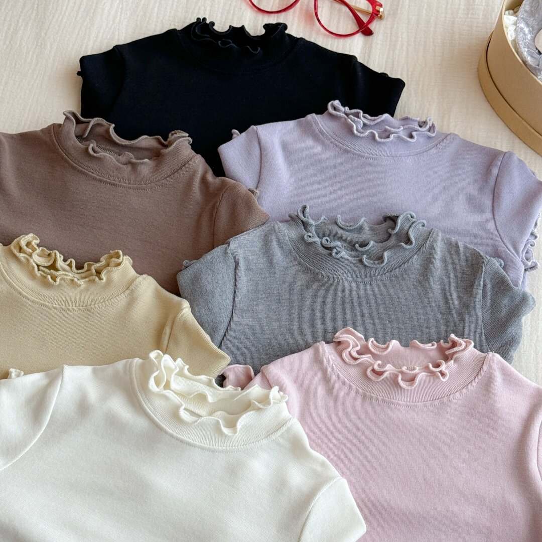 Qız uşaqları üçün dəbli və çoxfunksiyalı payız geyimləri: sadə krujeva yaxalıqlı futbolka, qız uşaqları üçün dəbli payız köynəyi.