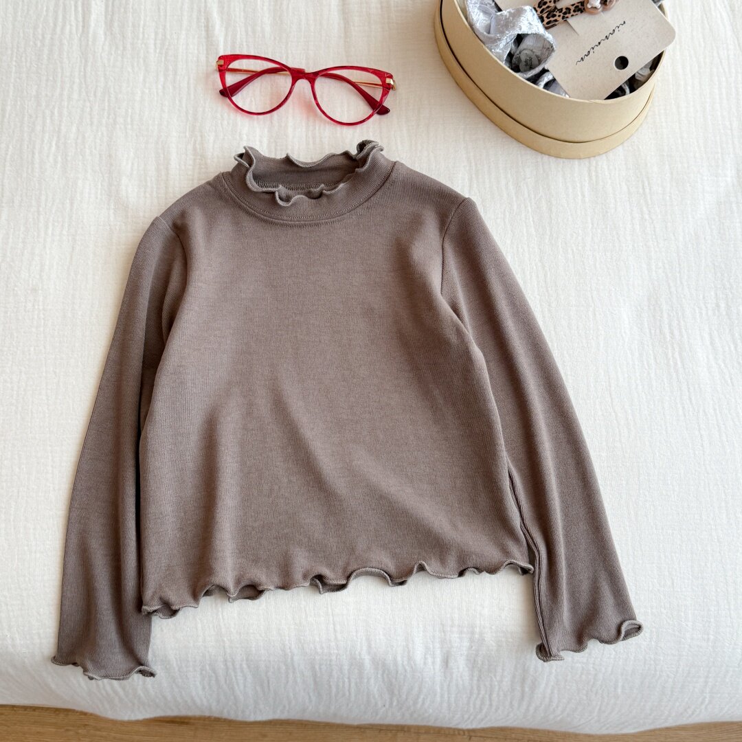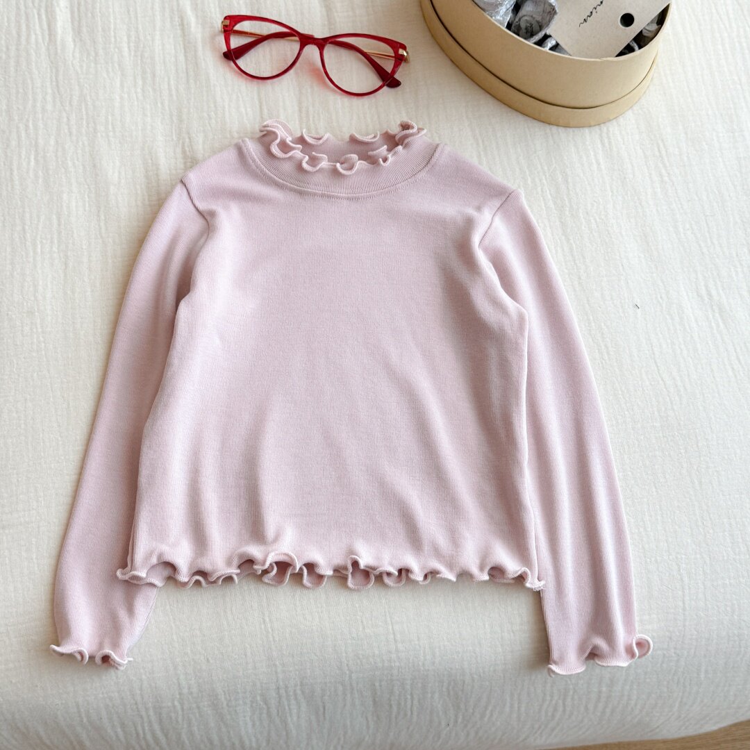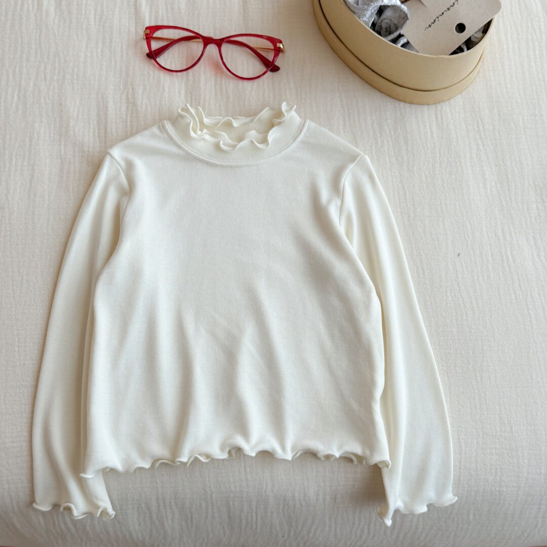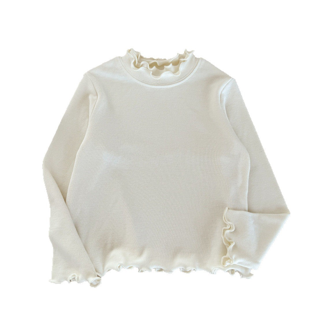Qız uşaqları üçün dəbli və çoxfunksiyalı payız geyimləri: sadə krujeva yaxalıqlı futbolka, qız uşaqları üçün dəbli payız köynəyi.