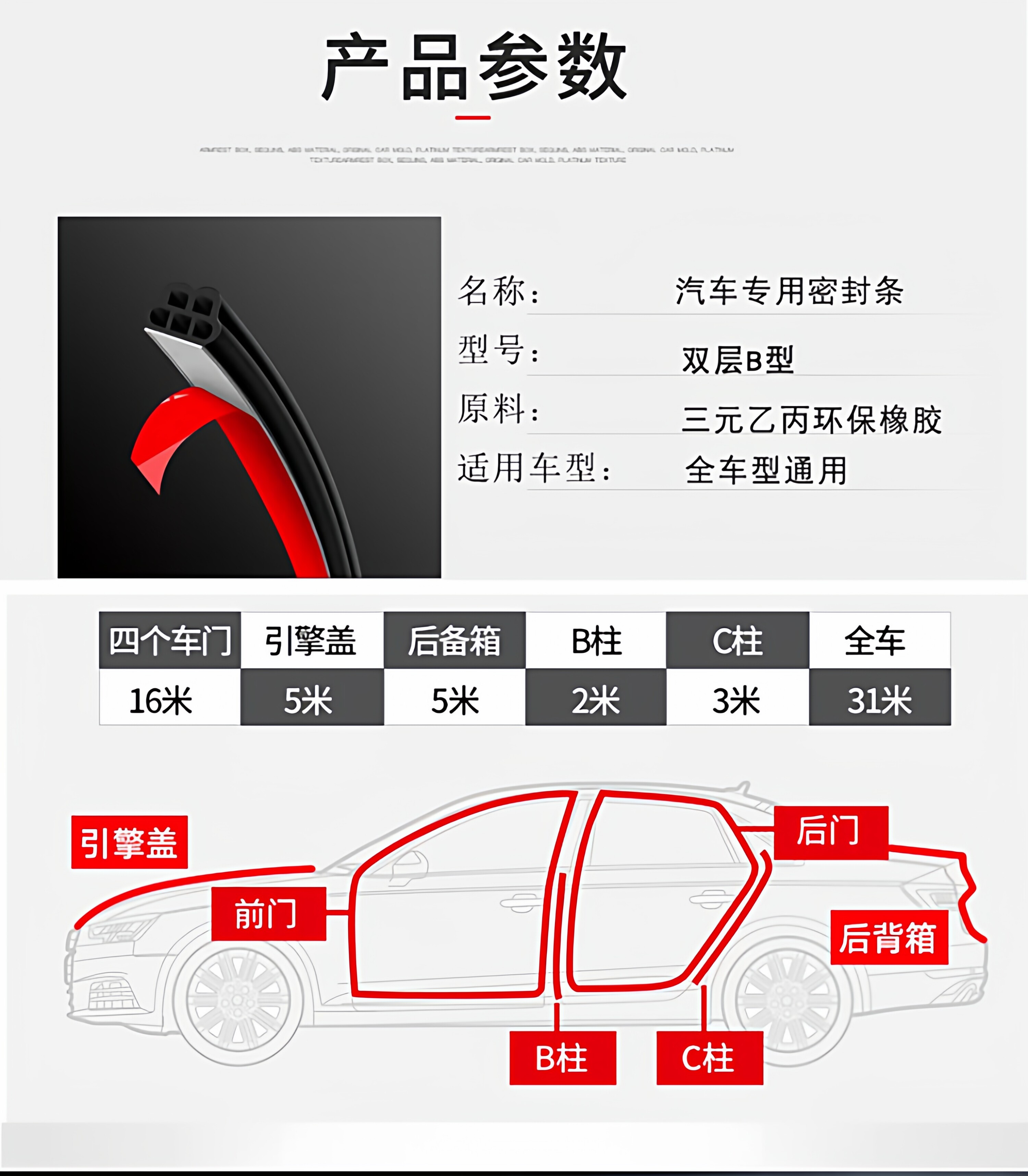 Suitable for Jetta VA3 VA7 VS5 VS7 VS8 car sealing strips, door frames and full vehicle soundproofing strips for noise reduction.