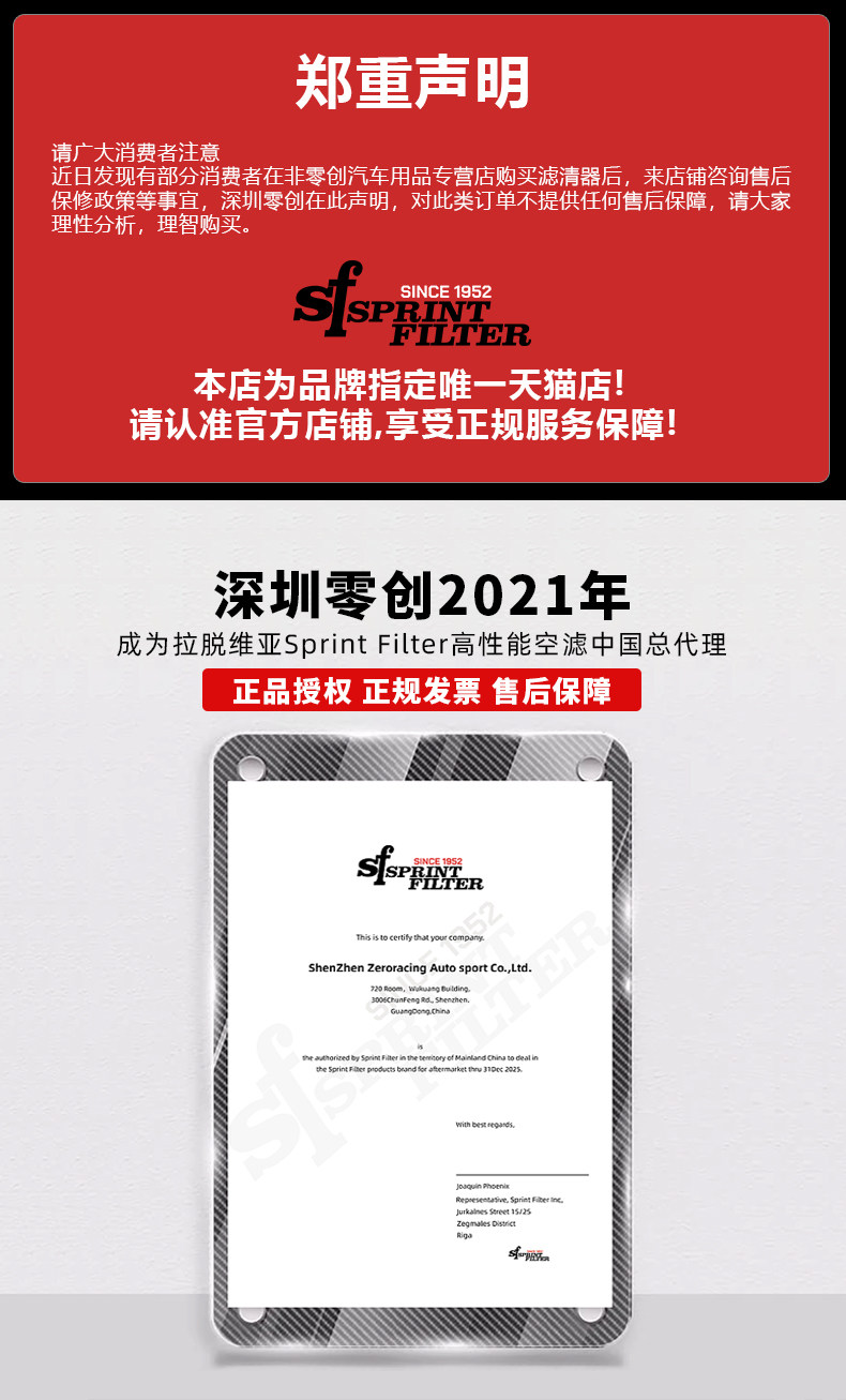 The SF high-flow air filter is suitable for the Volkswagen Golf 8 1.0/1.5 and POLO VI TFSI.