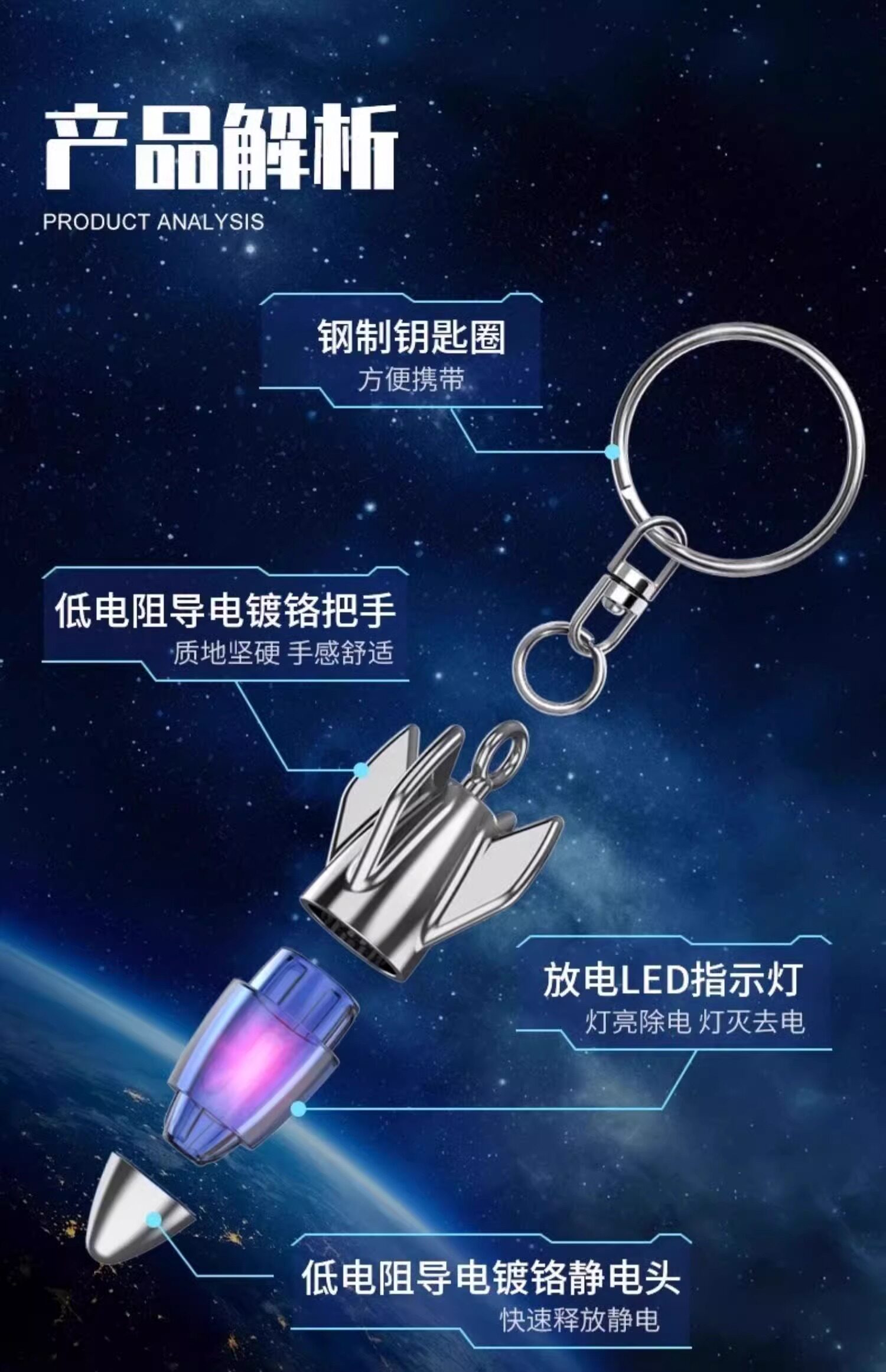 Statik elektrik aradan qaldırıcı, insan bədənində statik elektrik buraxıcı, statik elektrik aradan qaldırıcı artefakt, avtomobil antistatik çubuq, açar zəncir