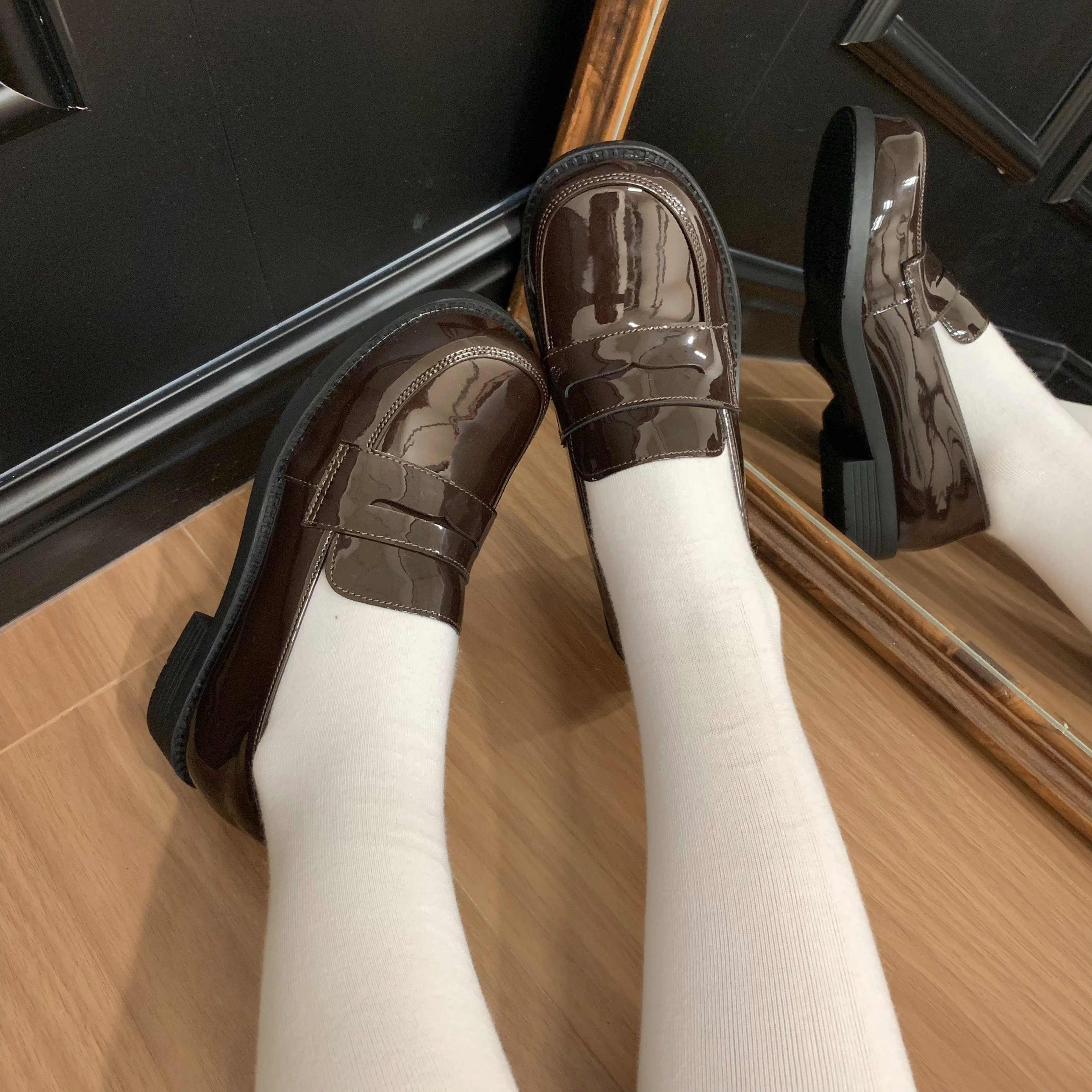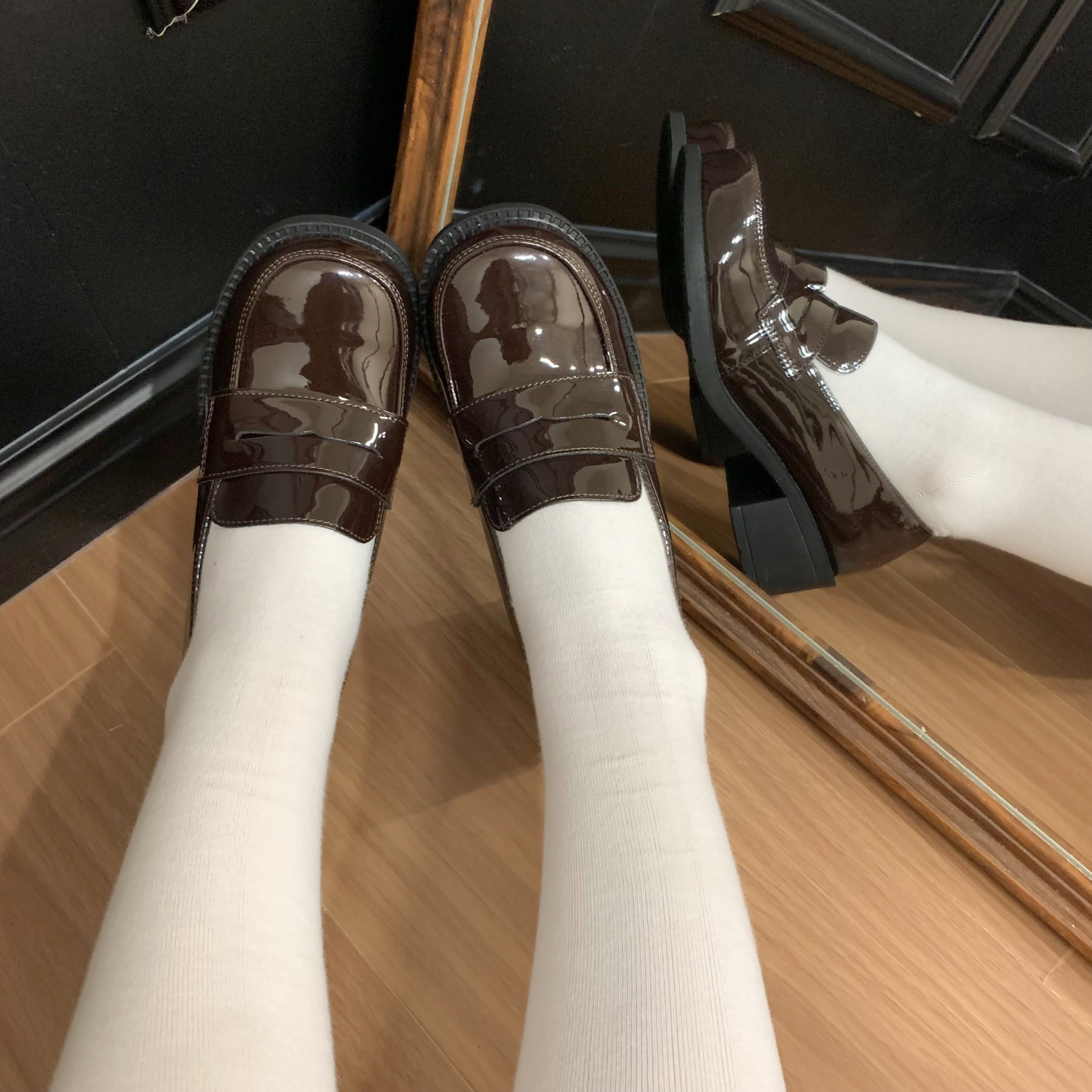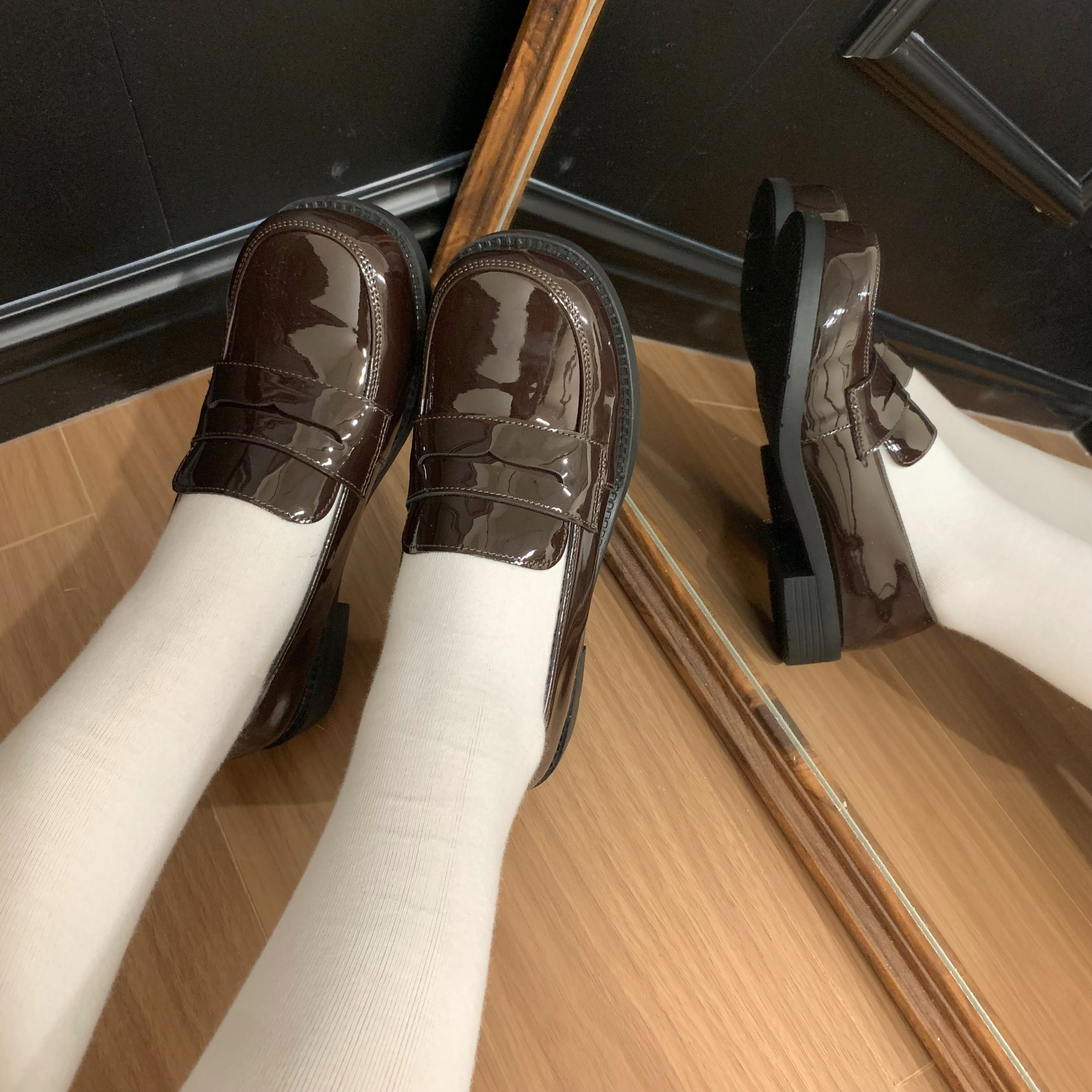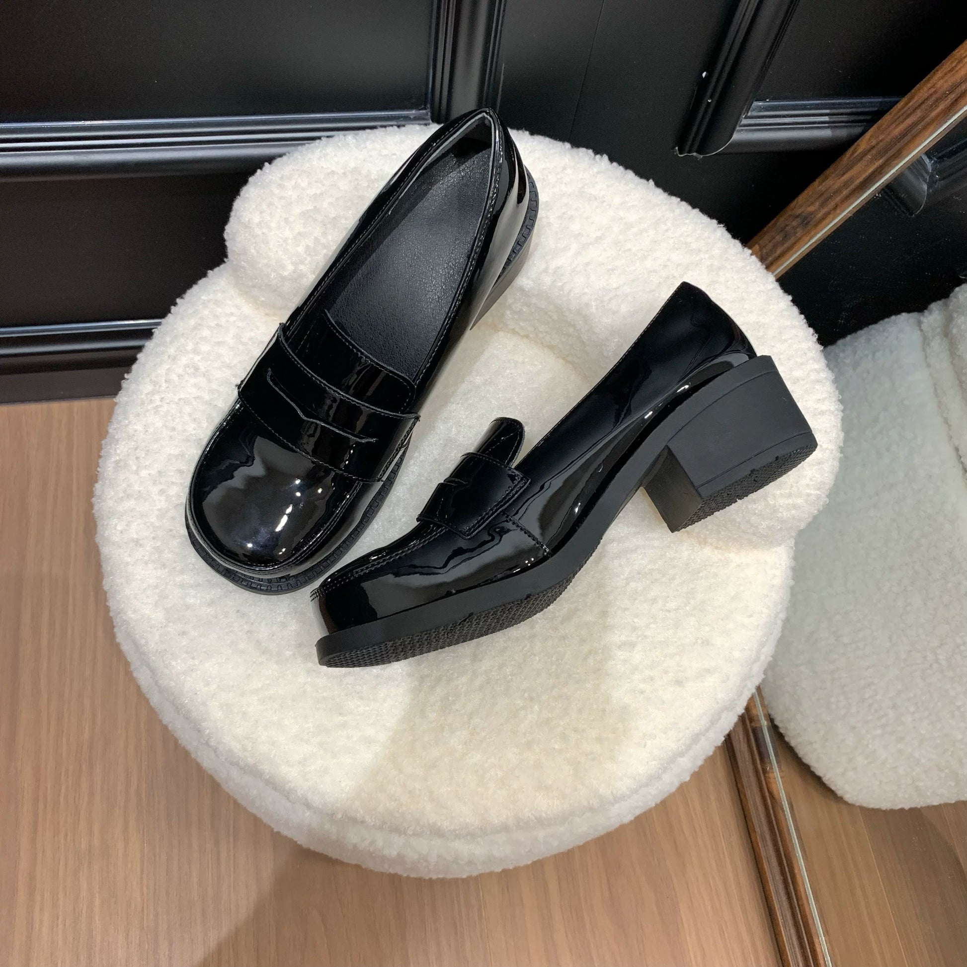 (Stokda) Şirin Dovşan Orijinal JK Forma Ayaqqabıları Əsas Orta Daban Çoxfunksiyalı Dəyirmi Barmaqlı Loferlər Aşağı Dabanlı Tələbə Ayaqqabıları