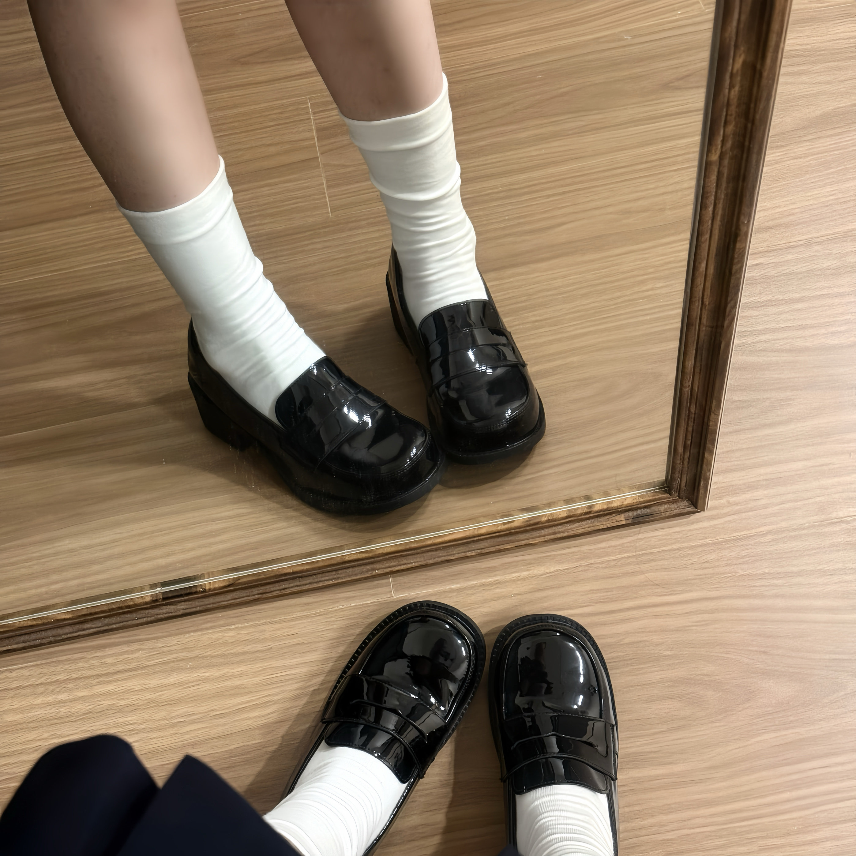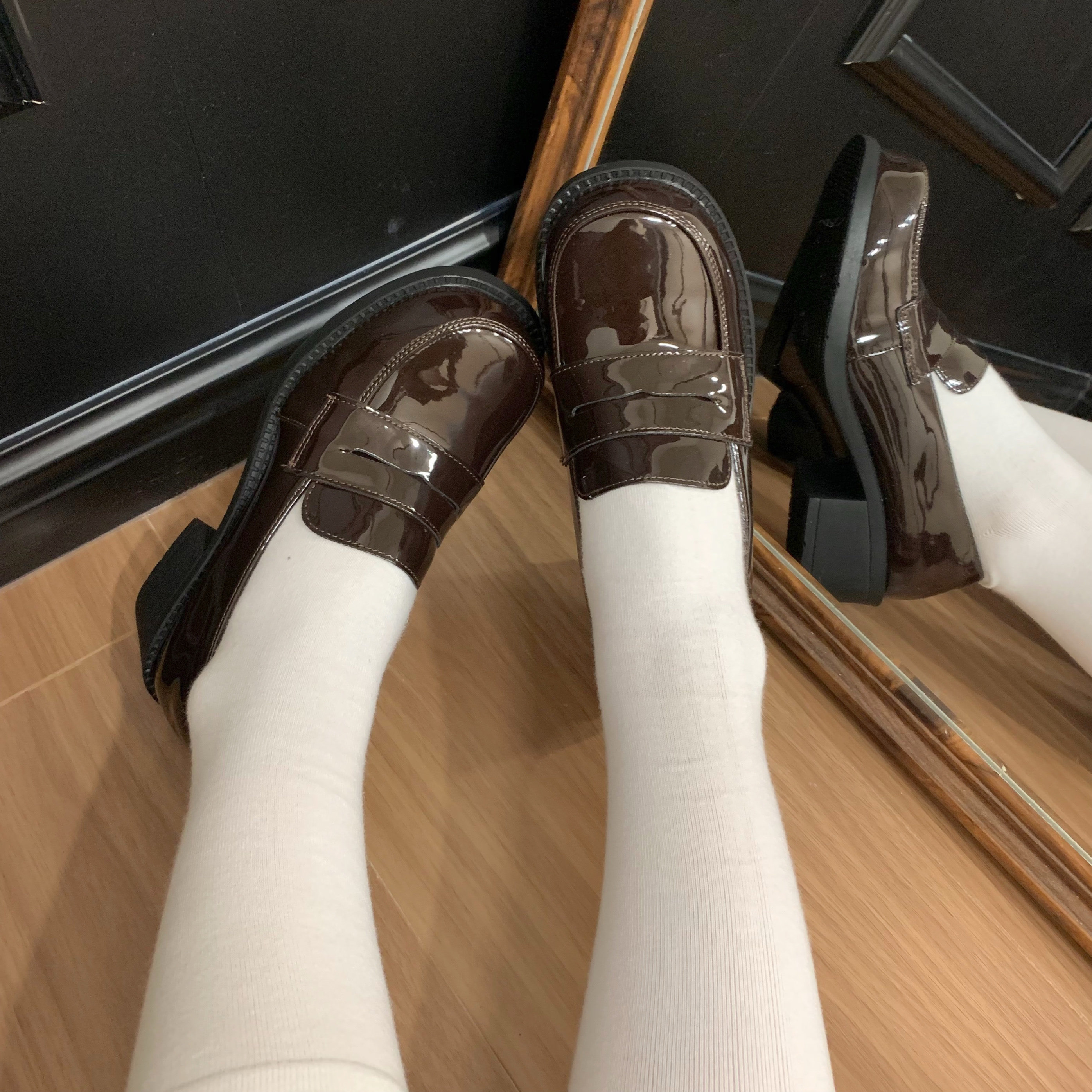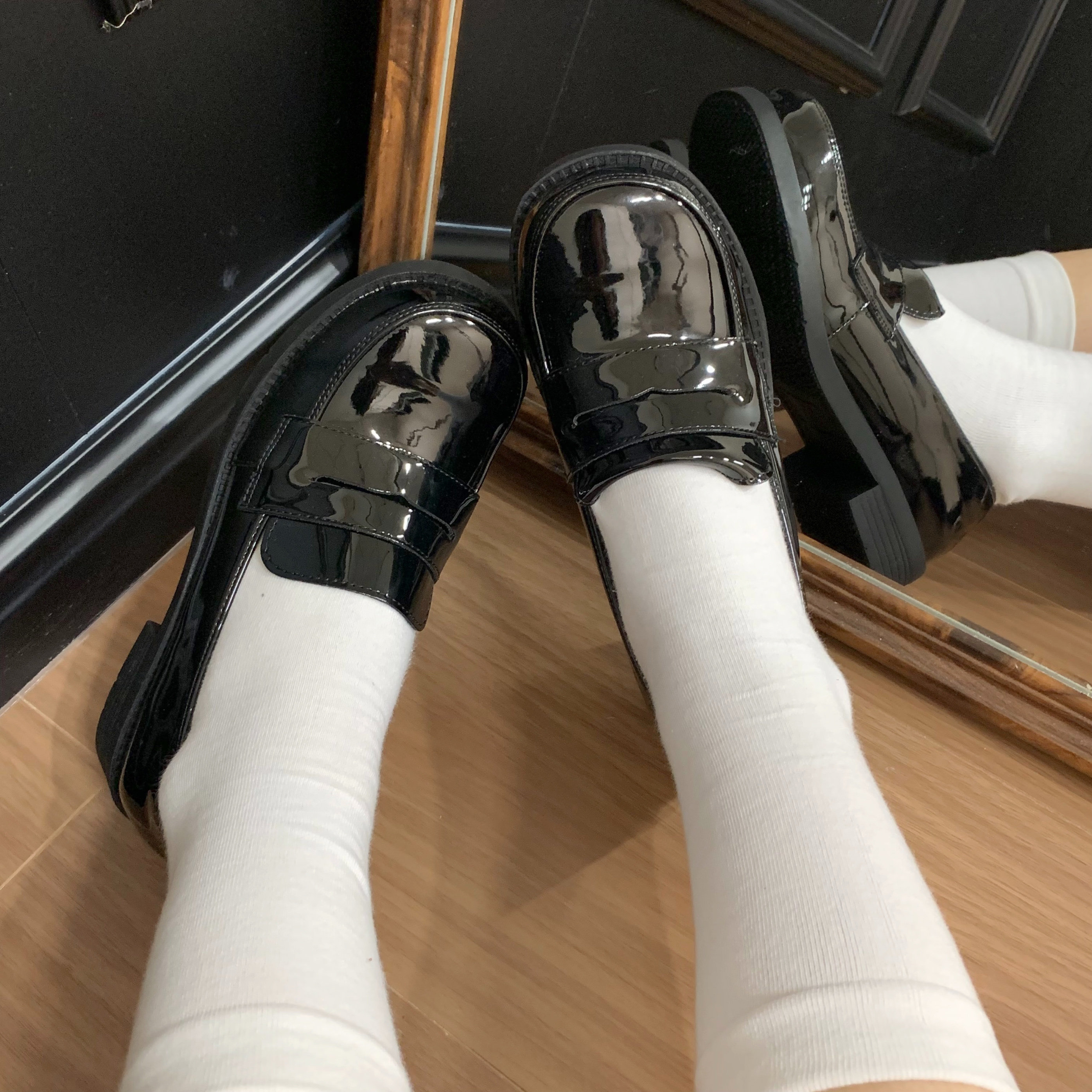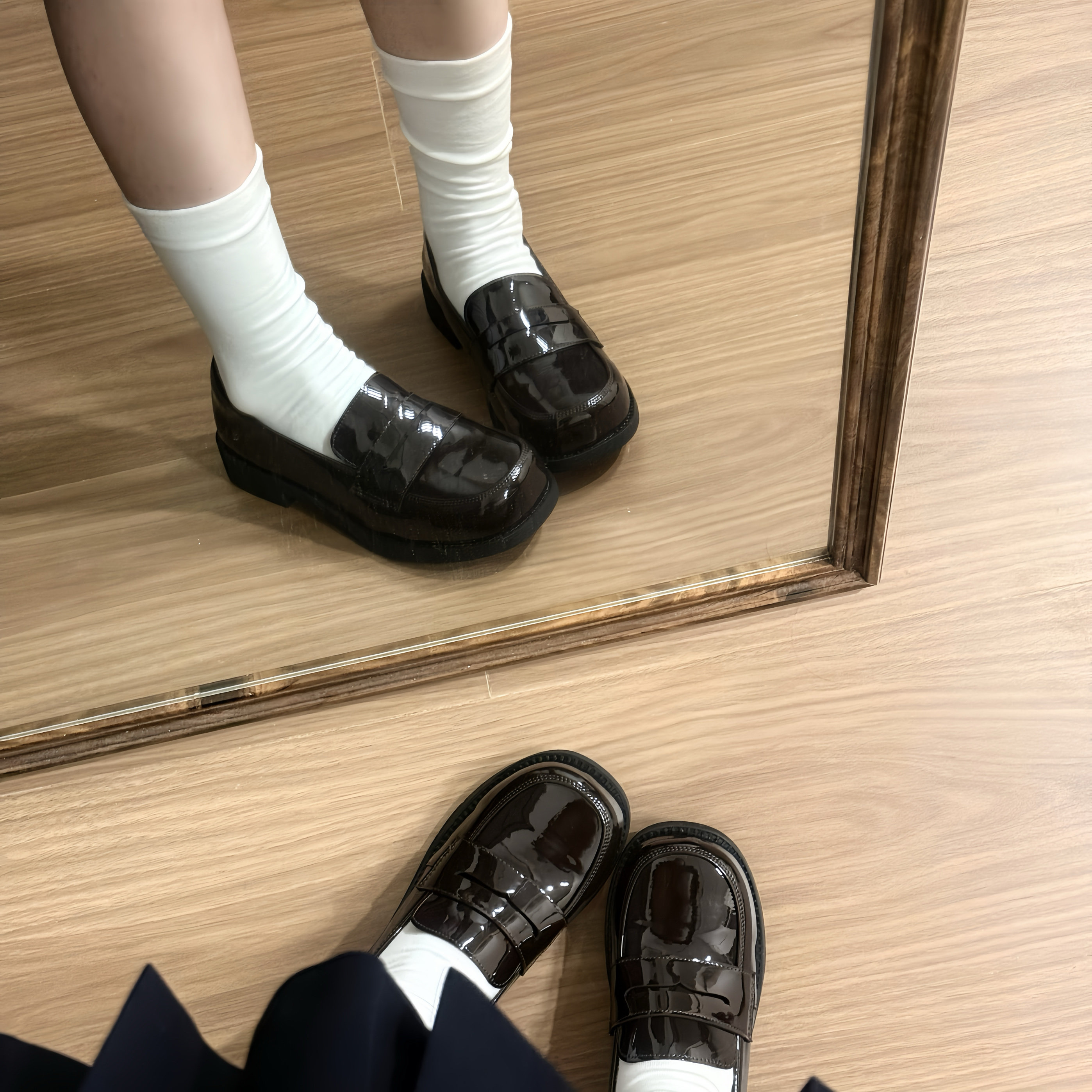 (Stokda) Şirin Dovşan Orijinal JK Forma Ayaqqabıları Əsas Orta Daban Çoxfunksiyalı Dəyirmi Barmaqlı Loferlər Aşağı Dabanlı Tələbə Ayaqqabıları