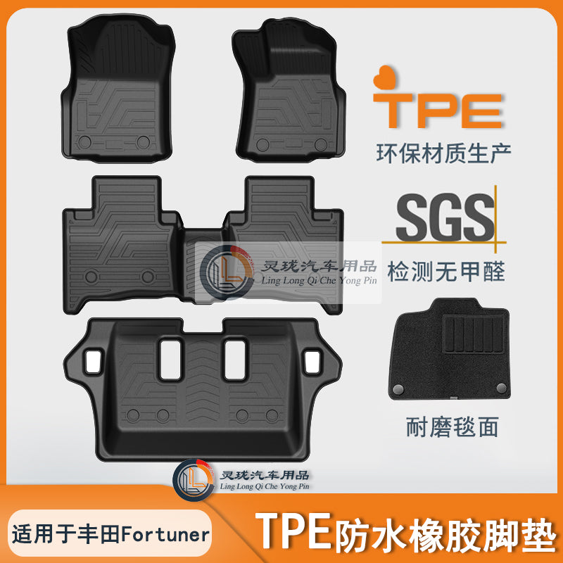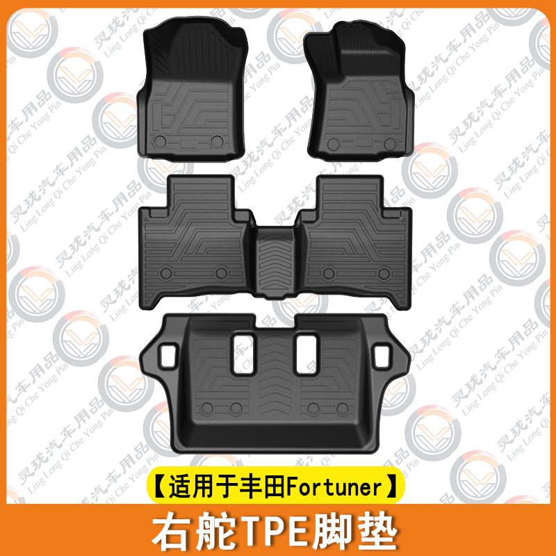 Toyota Fortuner sağ sükanlı avtomobillər üçün döşəmə örtükləri, TPE baqaj örtükləri, suya davamlı rezin xalçalar və avtomobil ayaqaltıları üçün uyğundur.