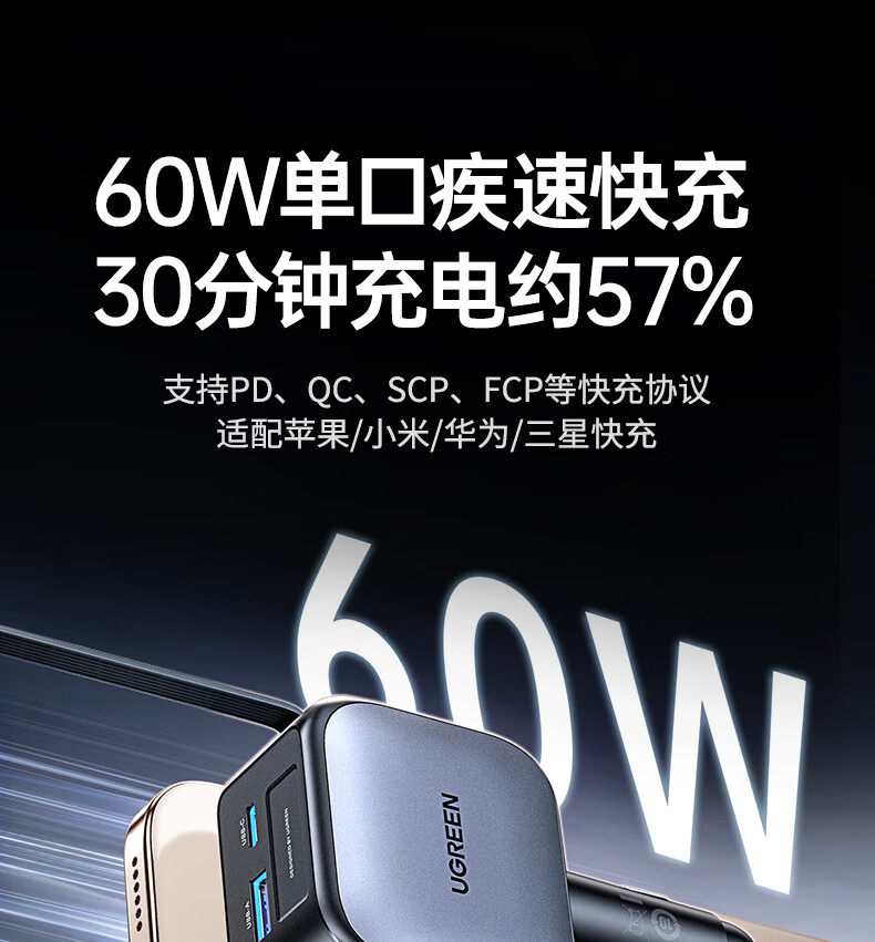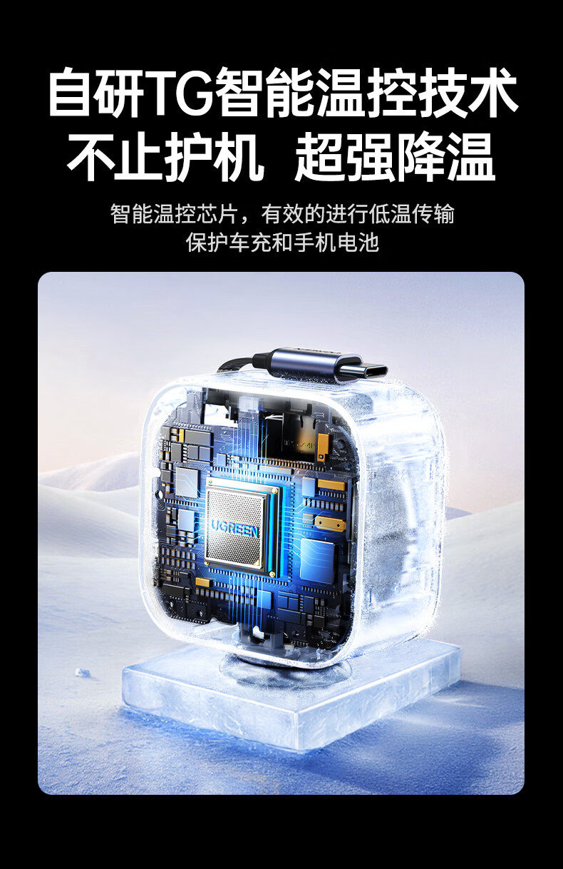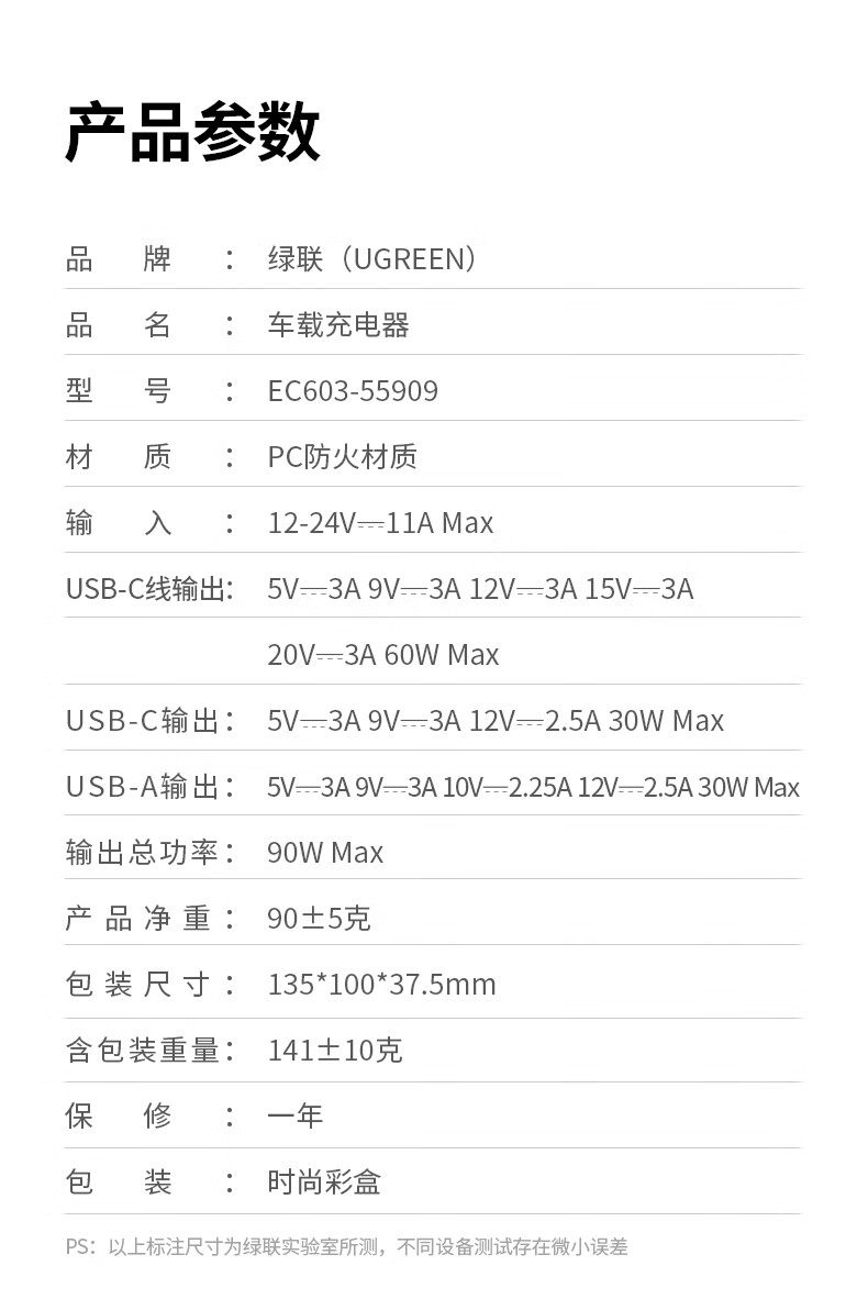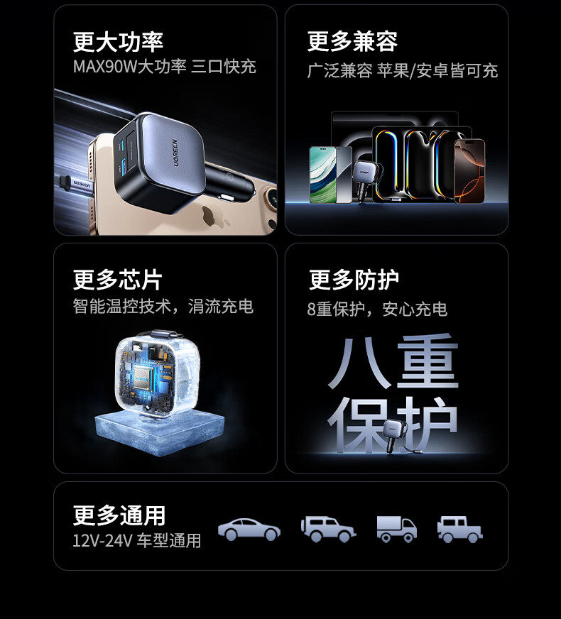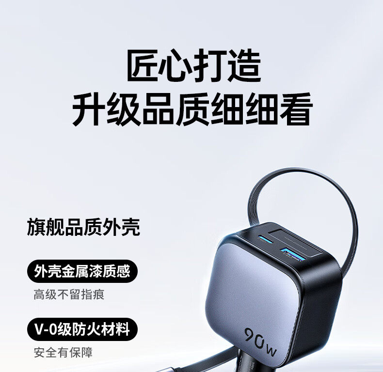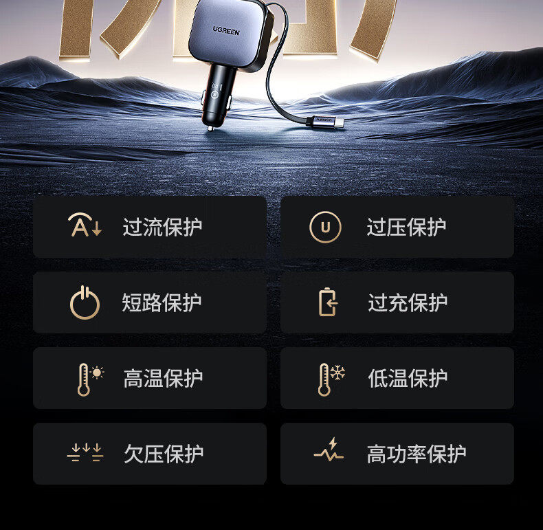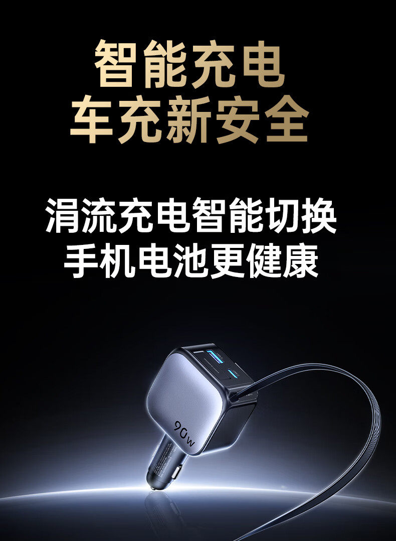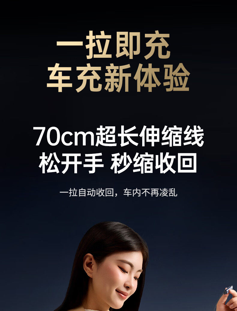 UGREEN 90W Super Sürətli Avtomobil Şarj Cihazı, Çəkilə Bilən Kabel ilə, Apple və Huawei Telefonları ilə Uyğundur