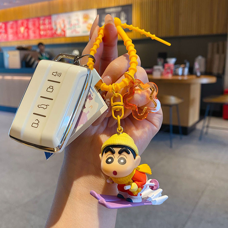 Uşaqlar və tələbələr üçün orijinal Crayon Shin-chan anime stilində cizgi filmi avtomobil açar zənciri/çantası - yaradıcı bir hədiyyə.