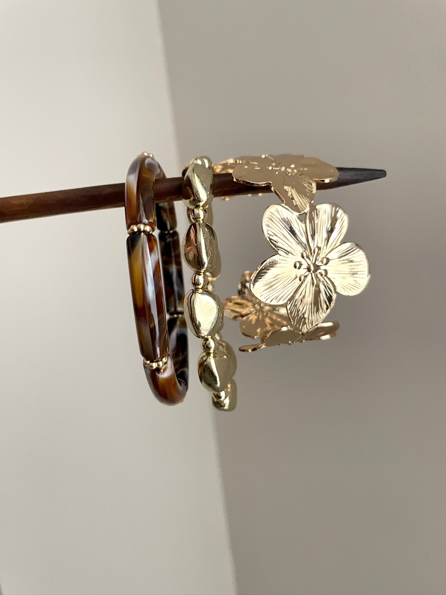 Vintage qızılı örtüklü kəhrəba çiçəkli bilərzik