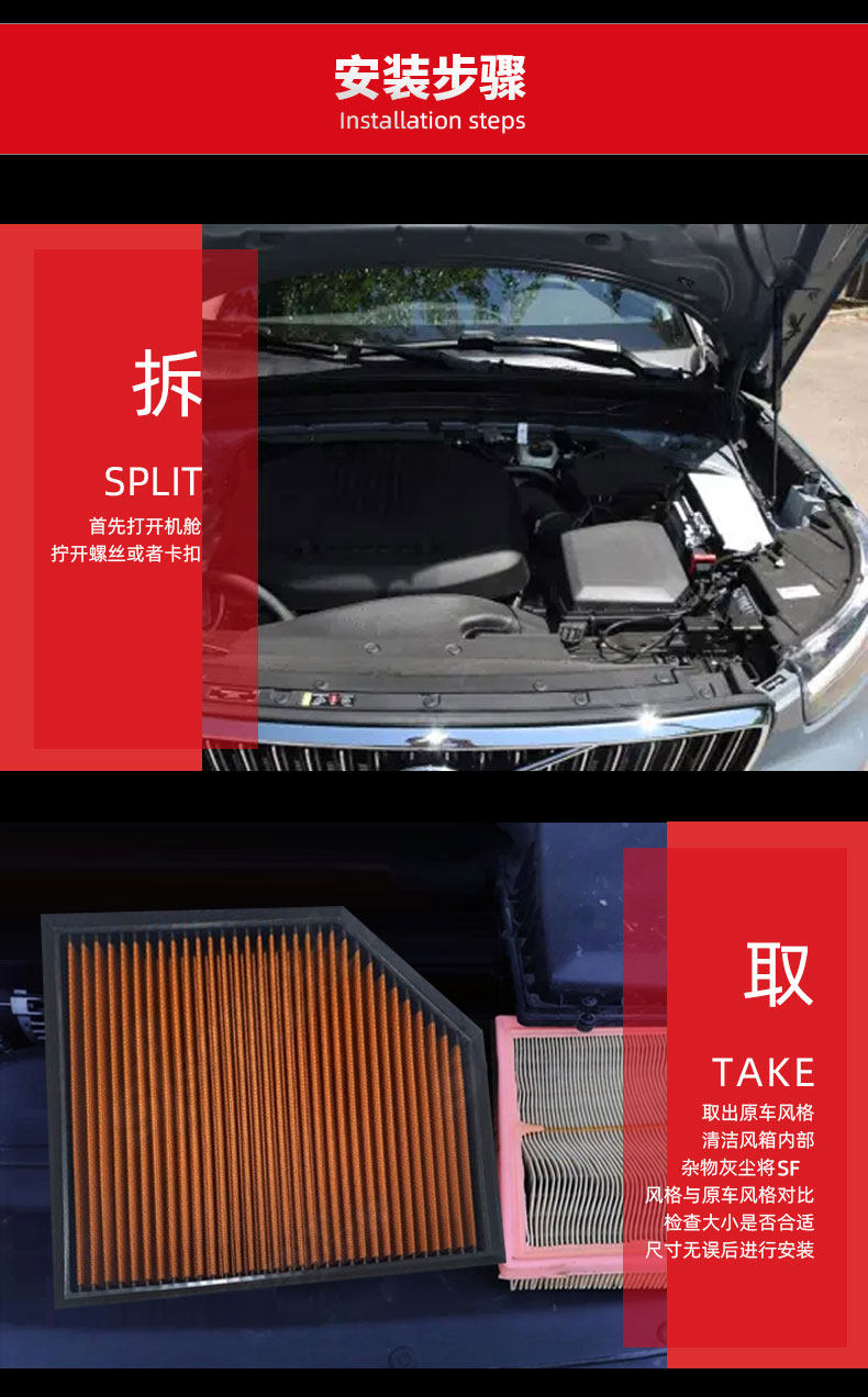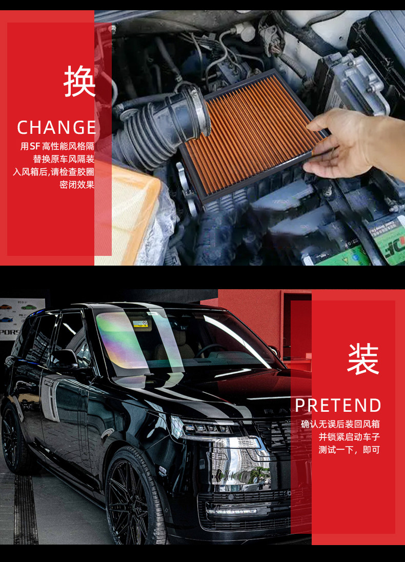 SF high flow air filter for racing, Audi, VW, Lamborghini and Bentley.